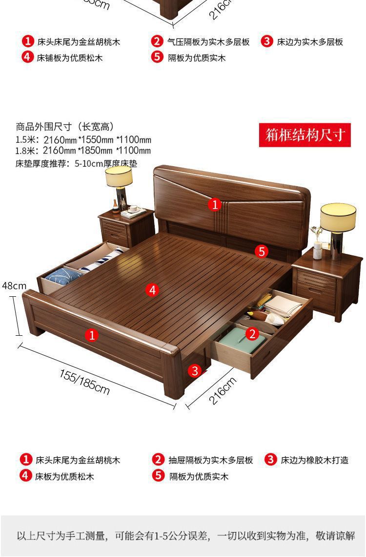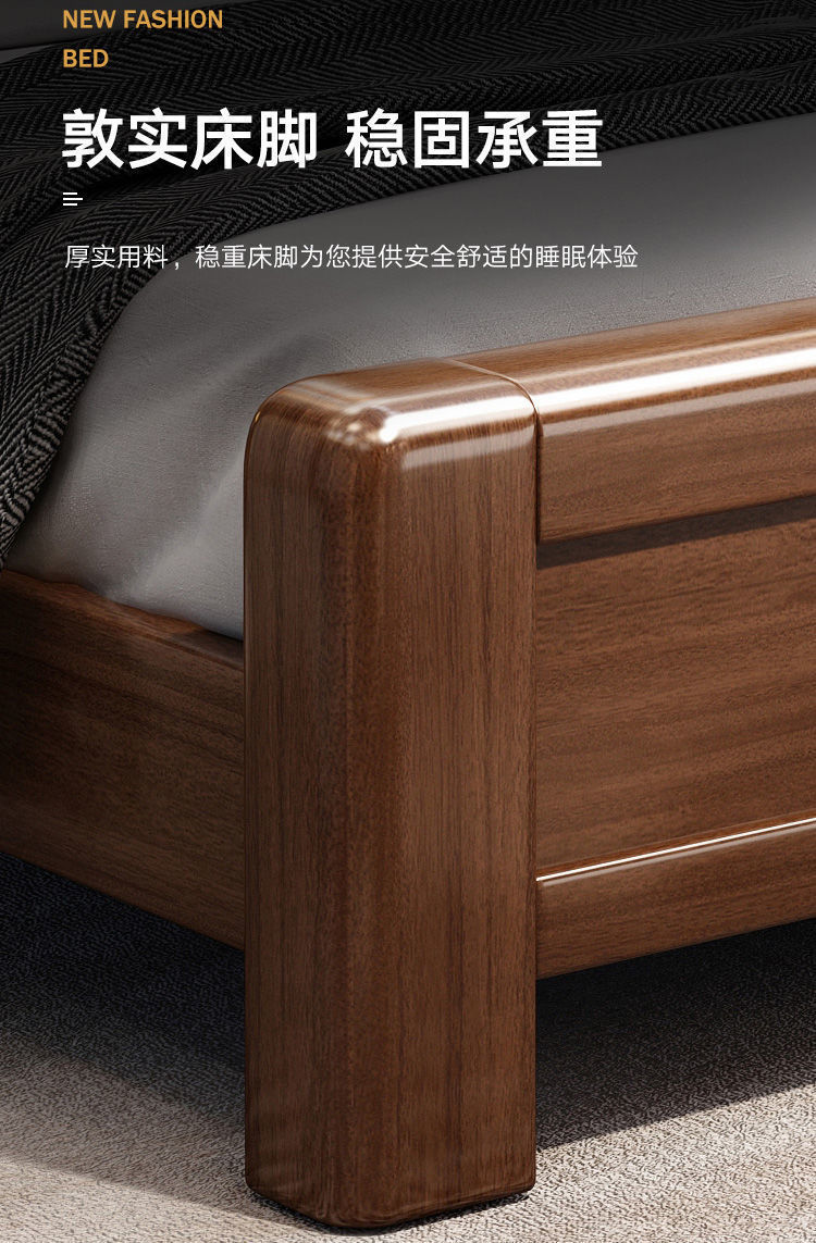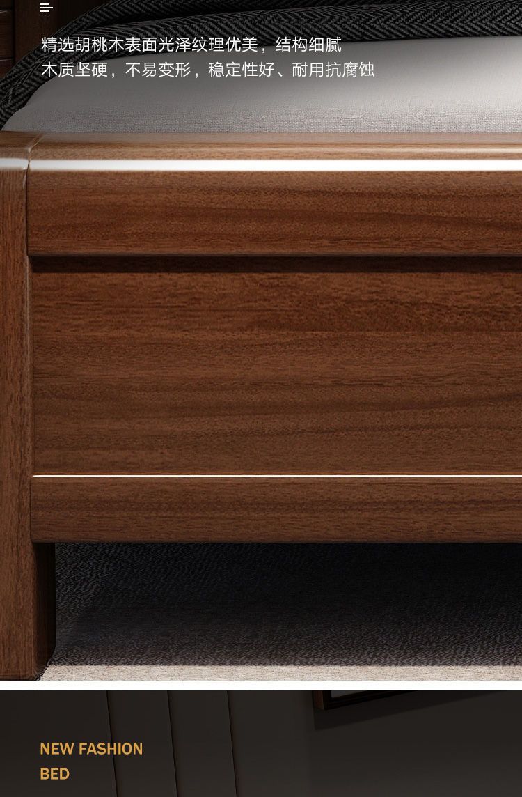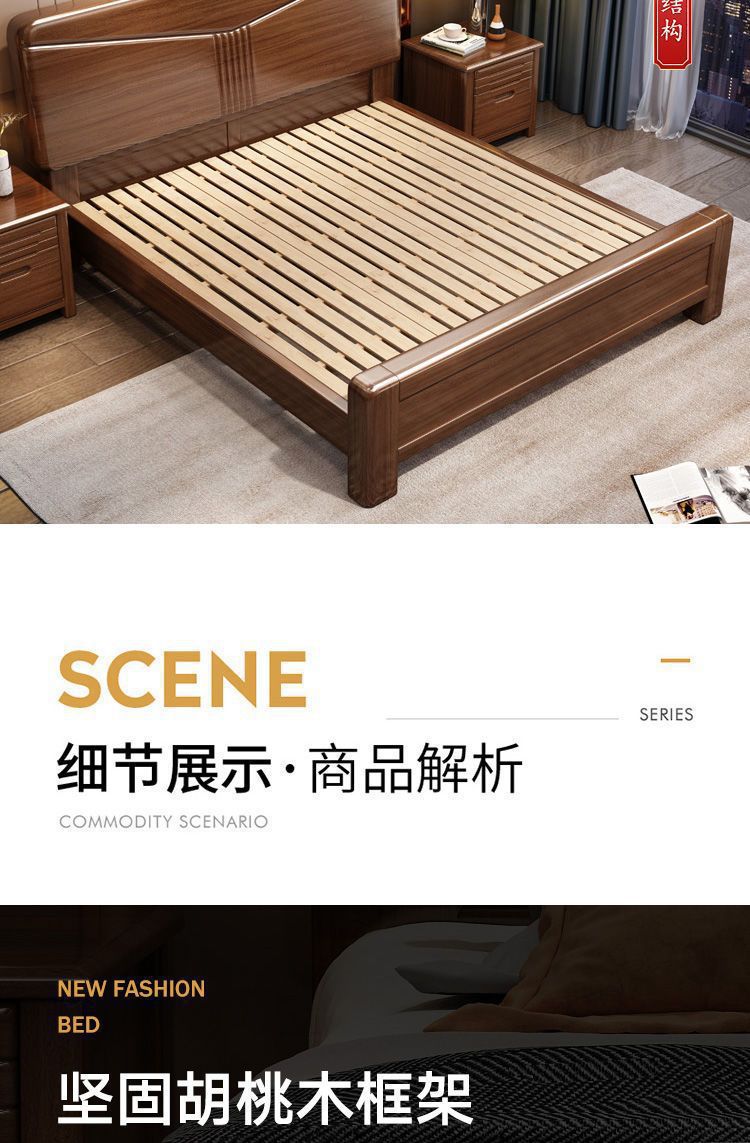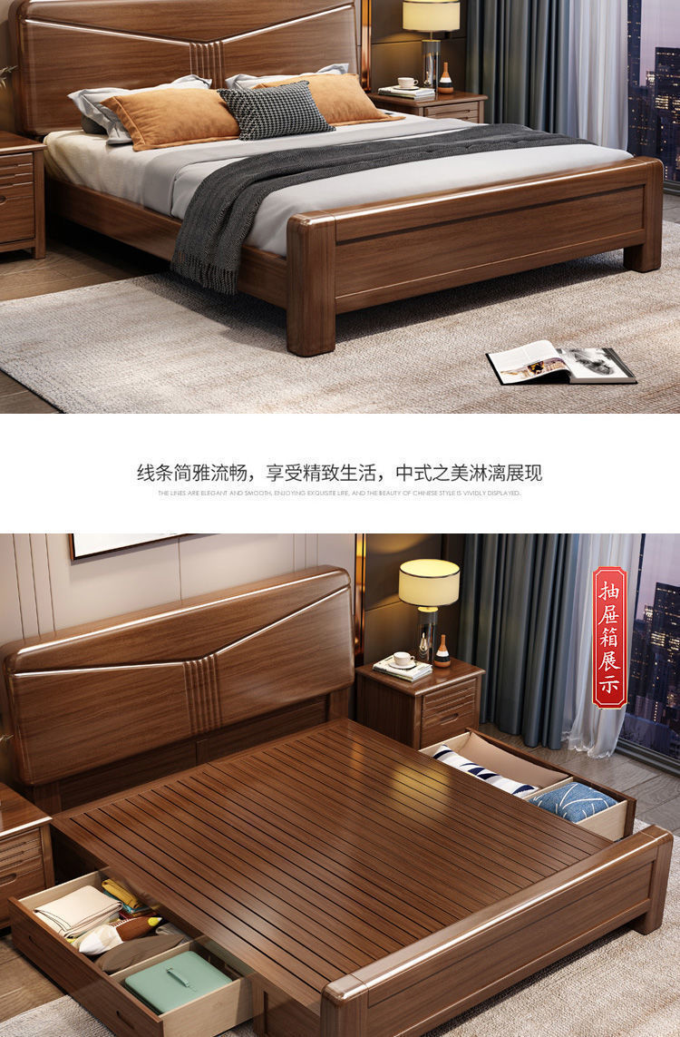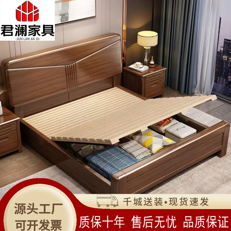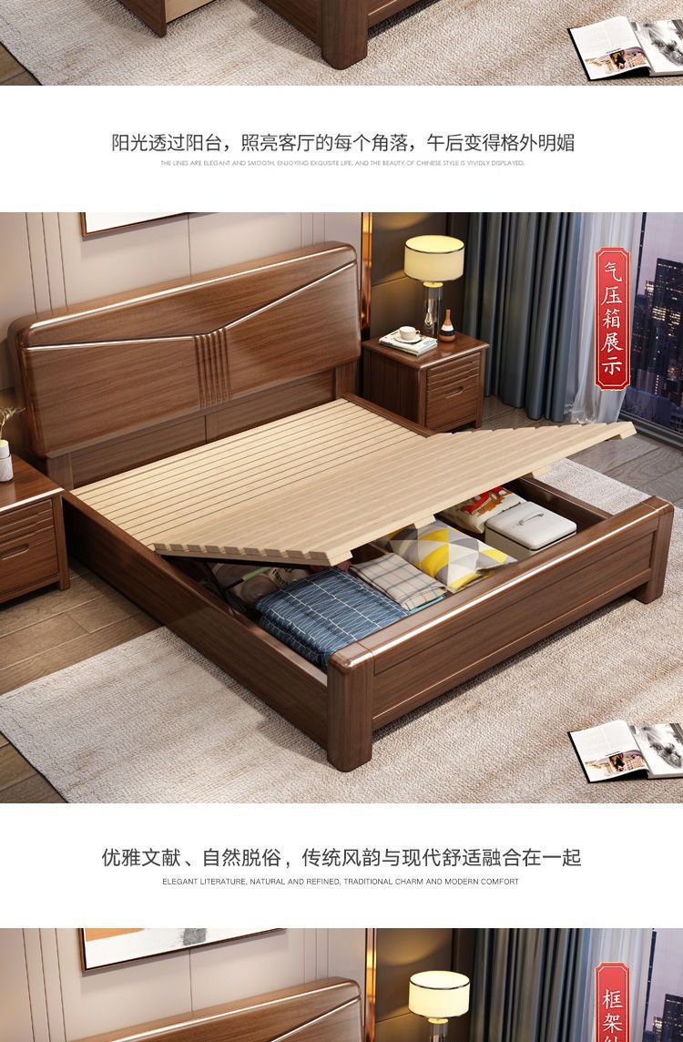 호두나무 새로운 중국 스타일의 단단한 나무 침대 현대적인 단순 1.5m 더블 침대 1.8m 마스터 침실 저장 공기압 높은 박스 침대스토어 가기