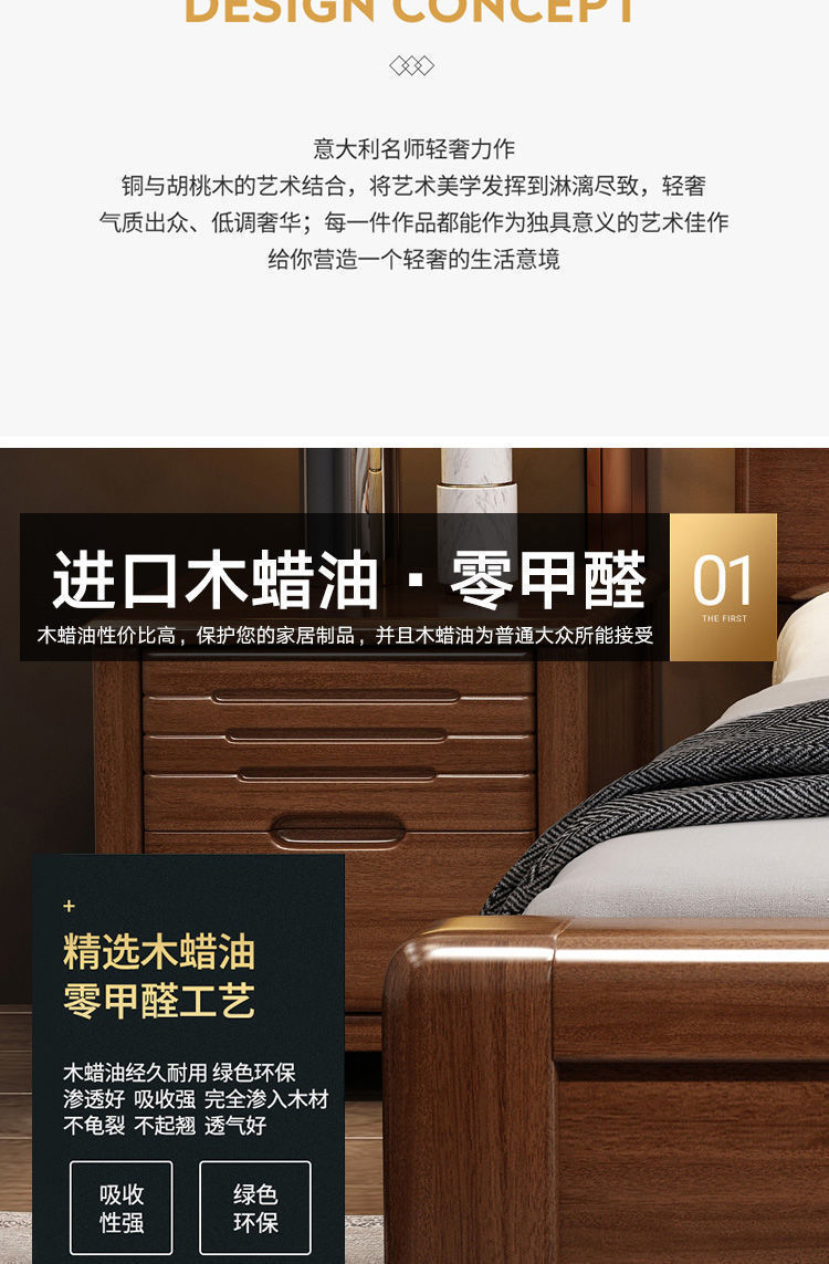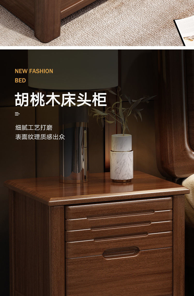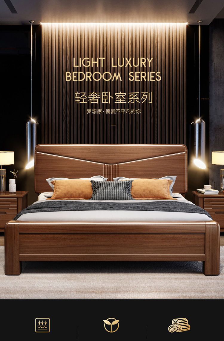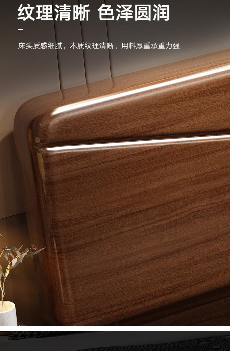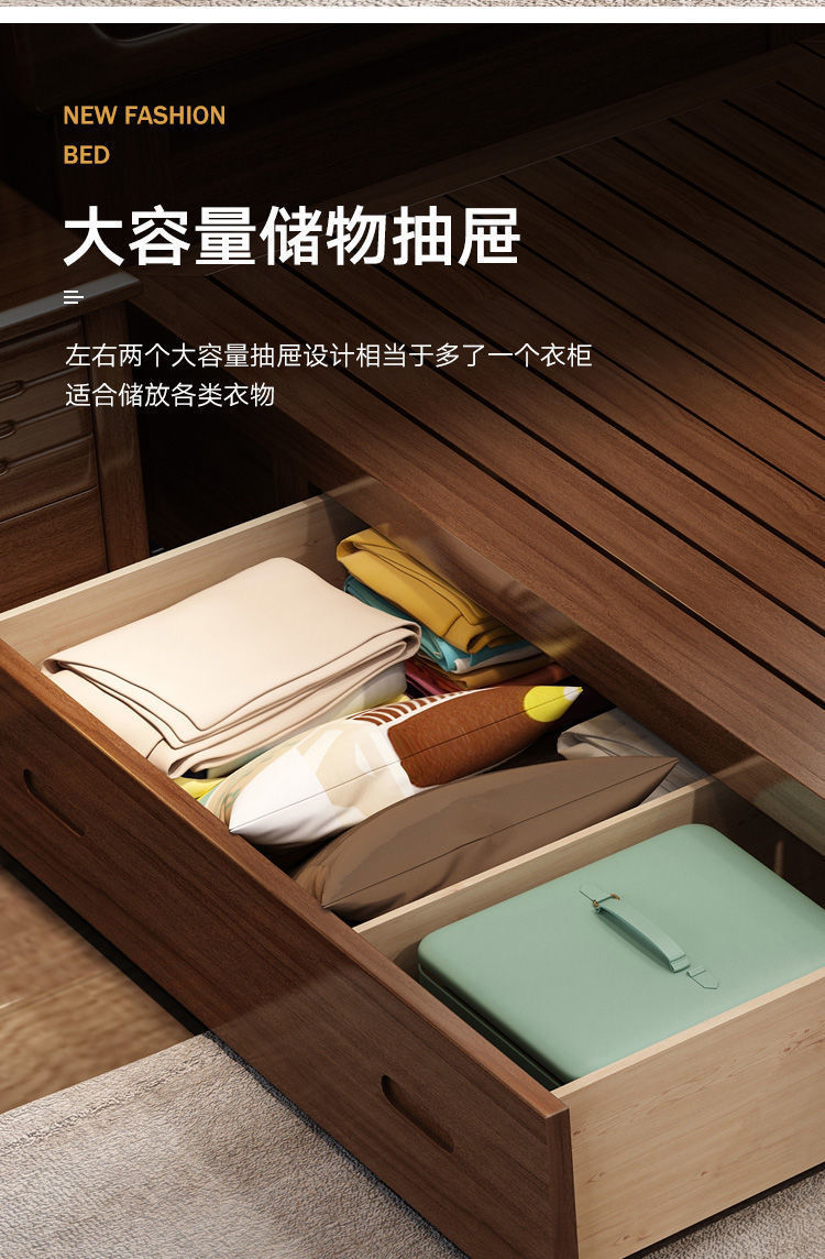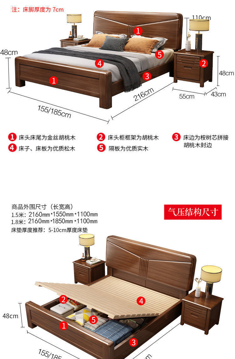 호두나무 새로운 중국 스타일의 단단한 나무 침대 현대적인 단순 1.5m 더블 침대 1.8m 마스터 침실 저장 공기압 높은 박스 침대스토어 가기