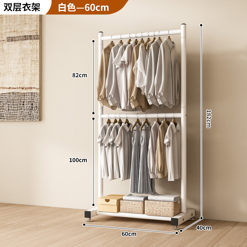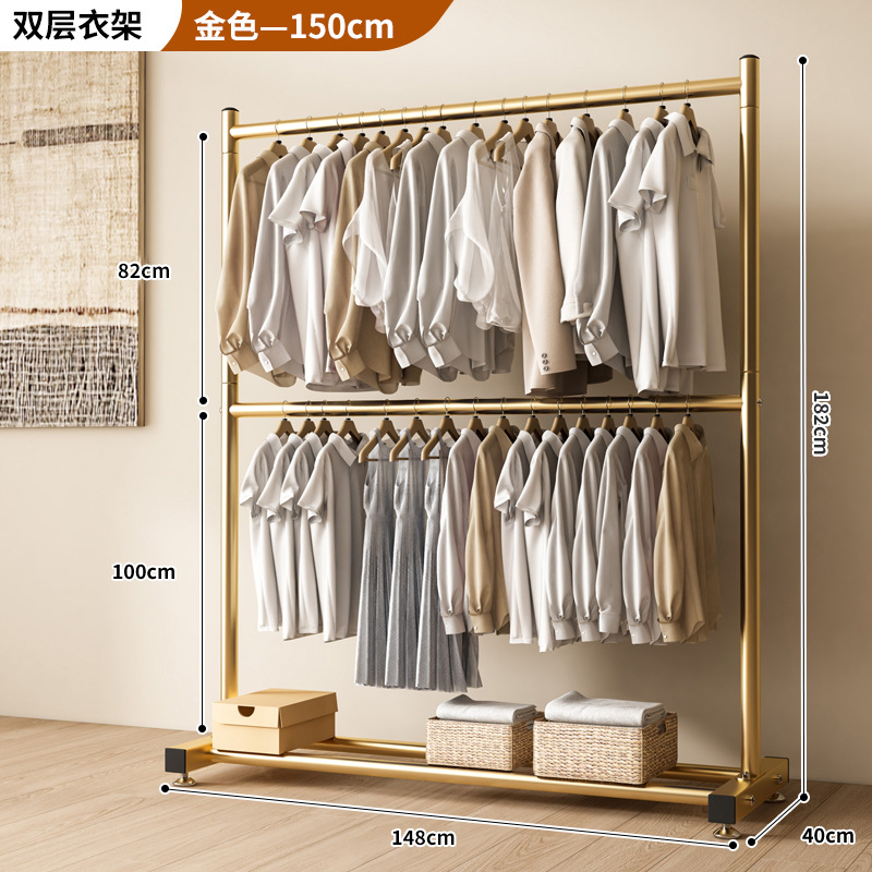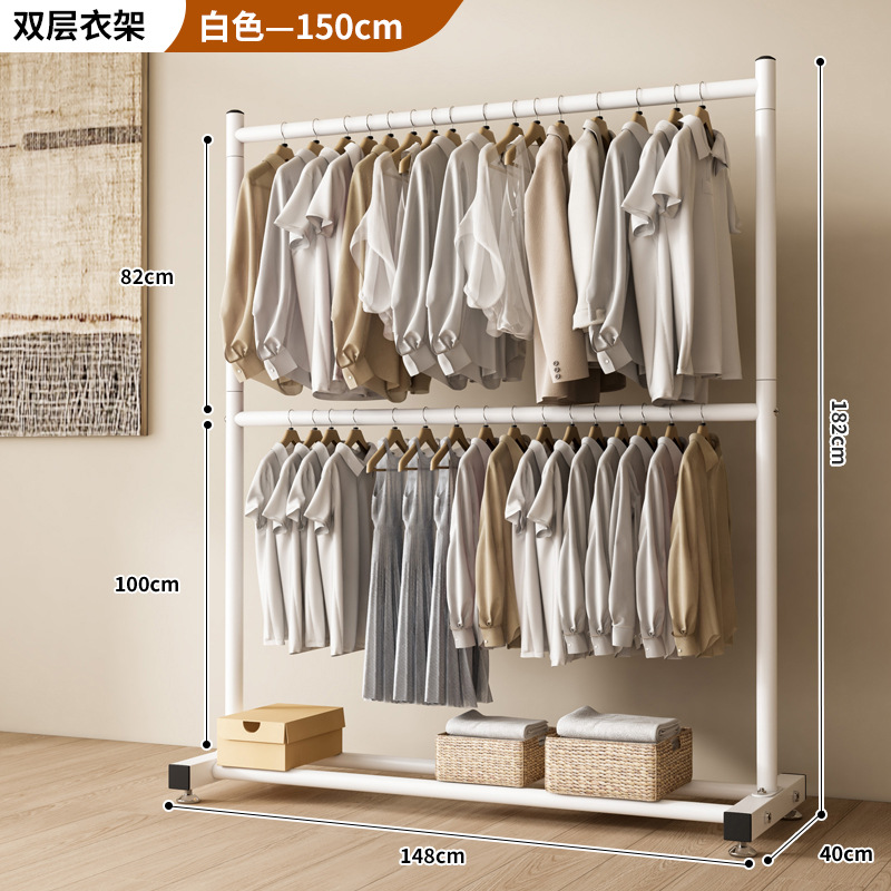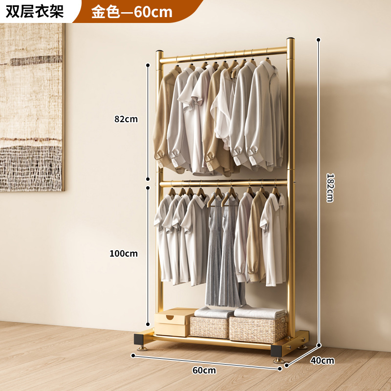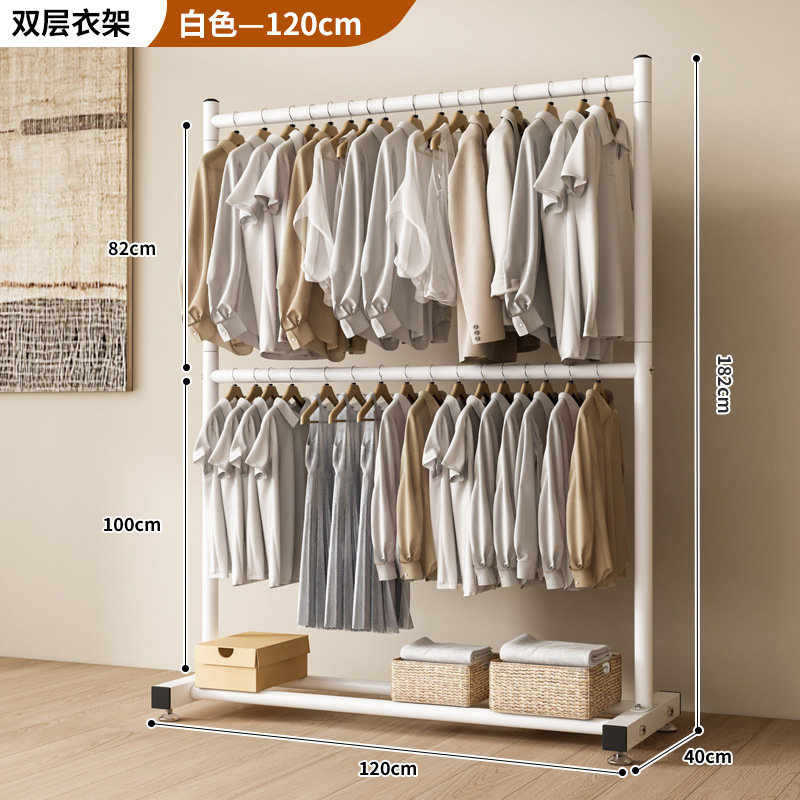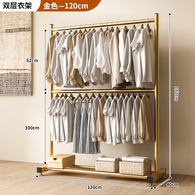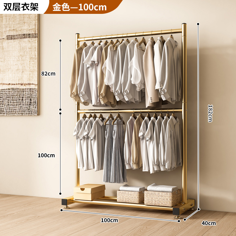 옷 건조 랙 바닥 접이식 가정용 옷 건조 랙 발코니 침실 옷 걸이 실내 이중 막대 간단한 옷 걸이