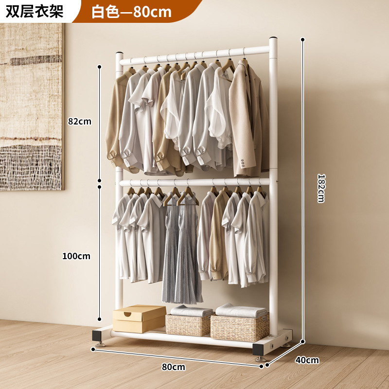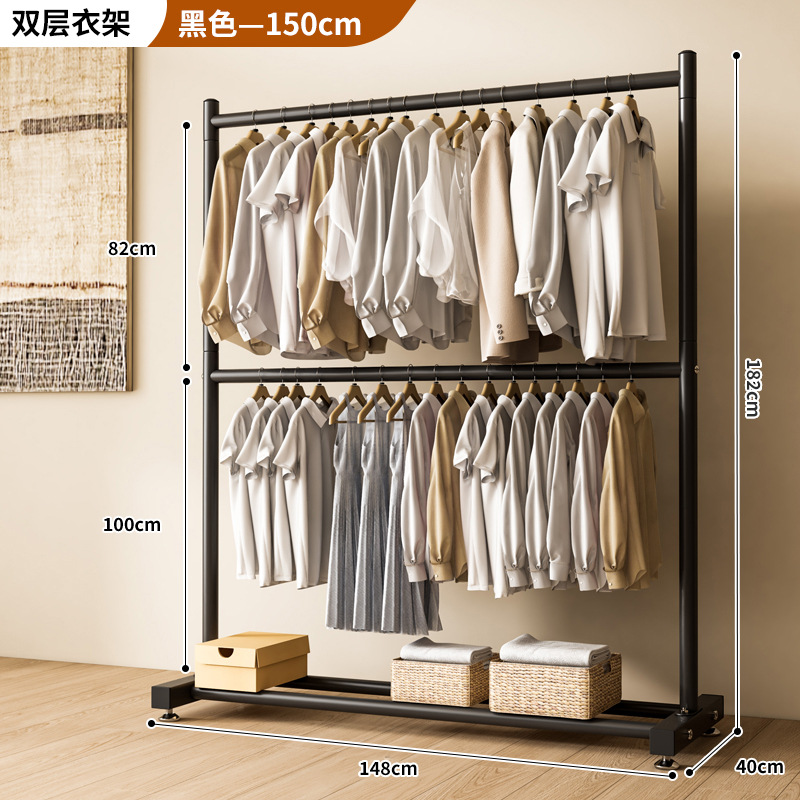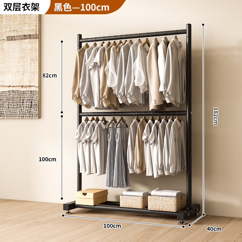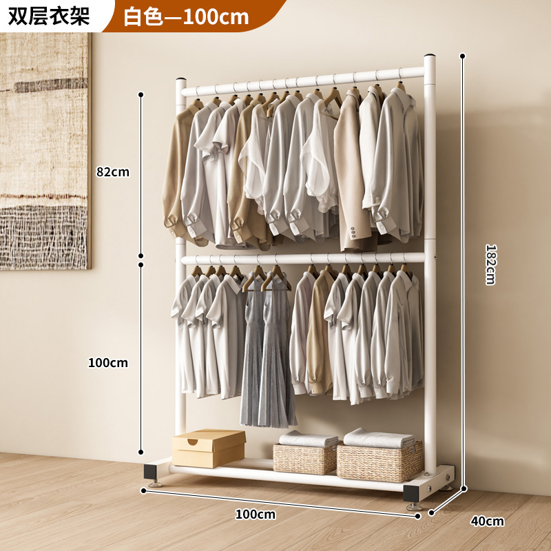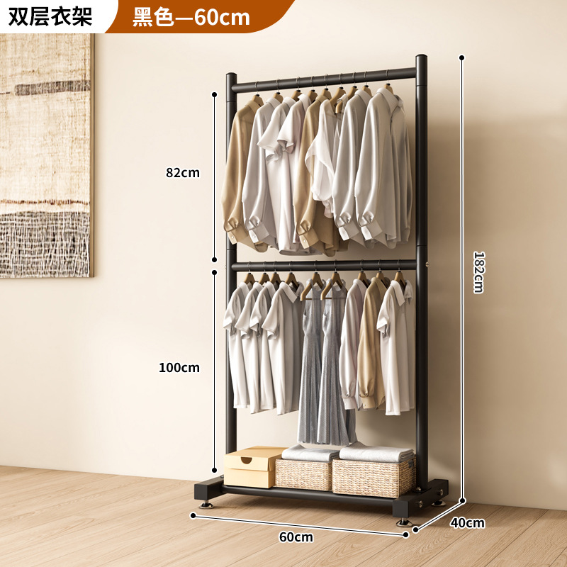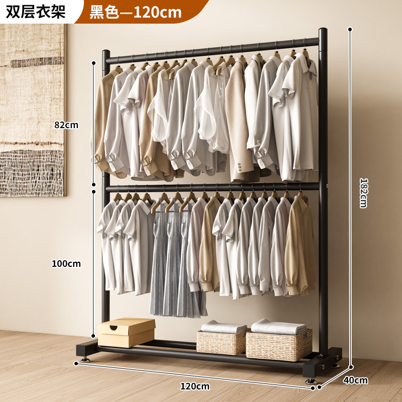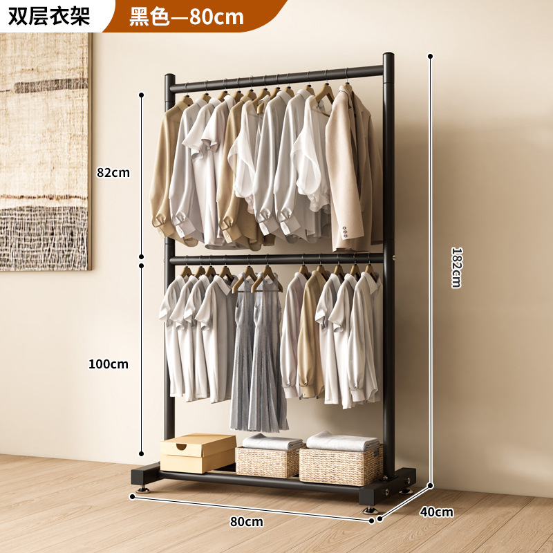 옷 건조 랙 바닥 접이식 가정용 옷 건조 랙 발코니 침실 옷 걸이 실내 이중 막대 간단한 옷 걸이