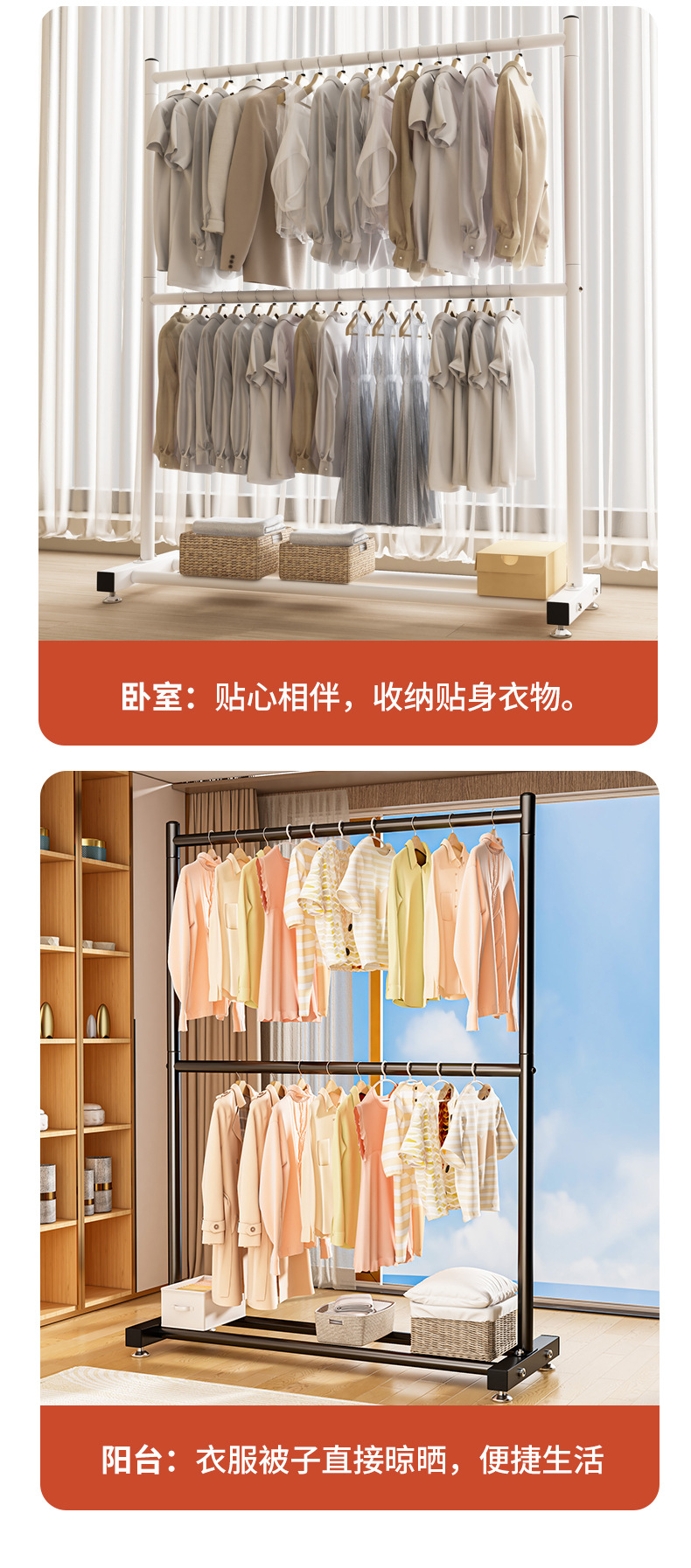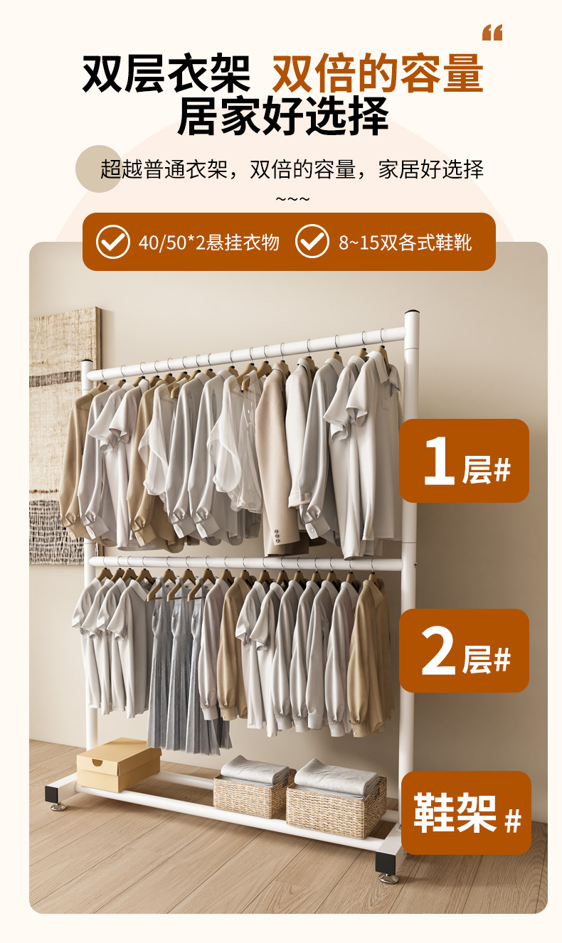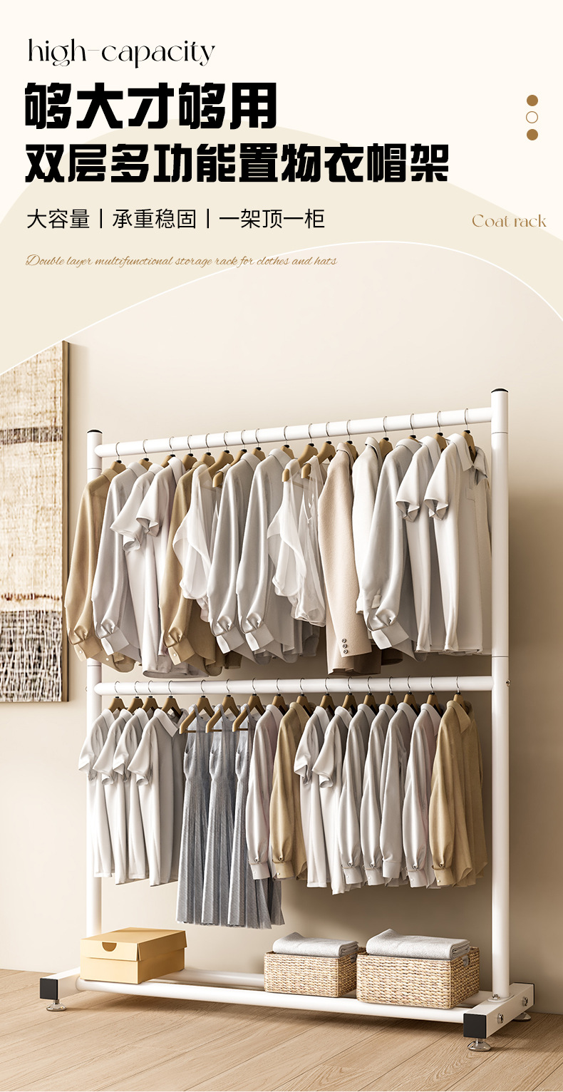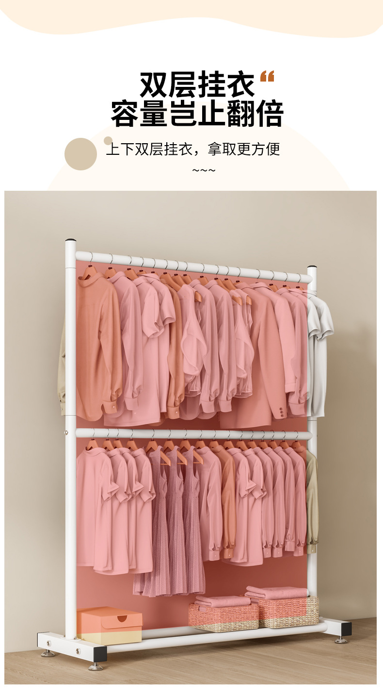 옷 건조 랙 바닥 접이식 가정용 옷 건조 랙 발코니 침실 옷 걸이 실내 이중 막대 간단한 옷 걸이