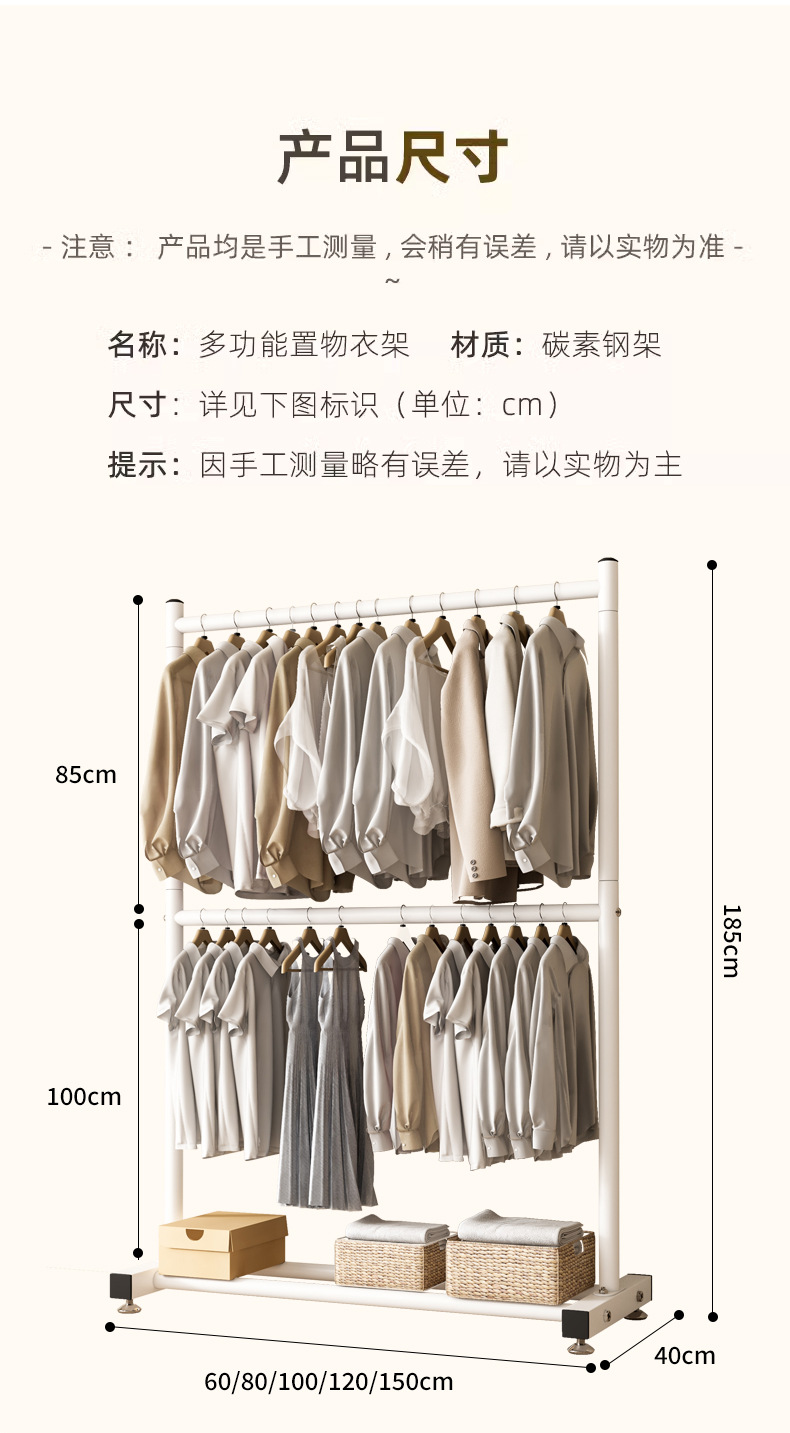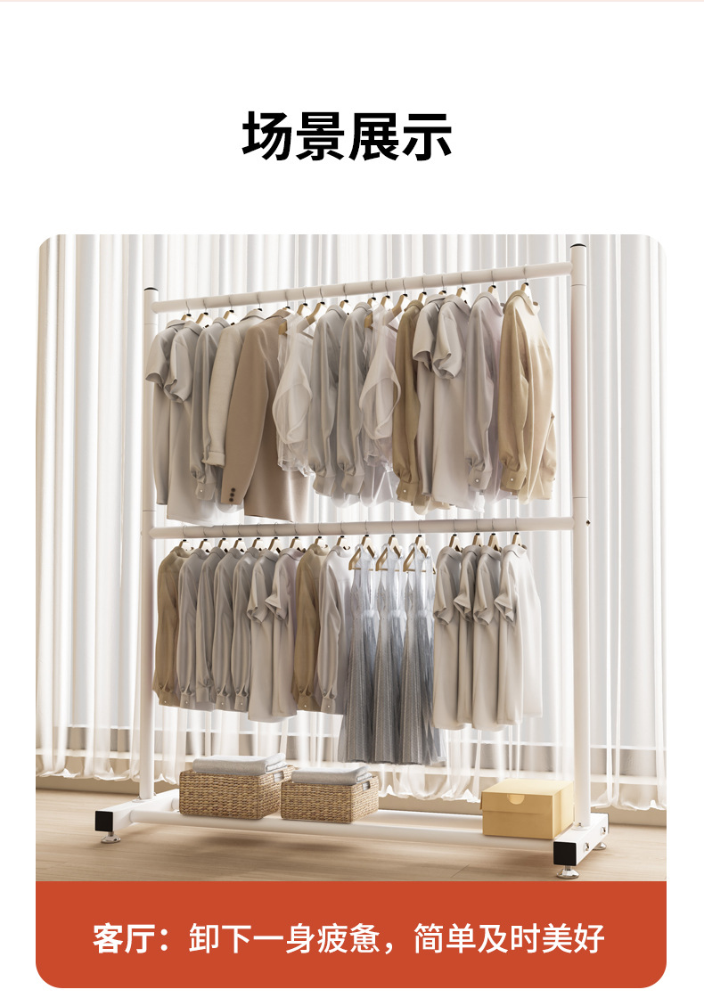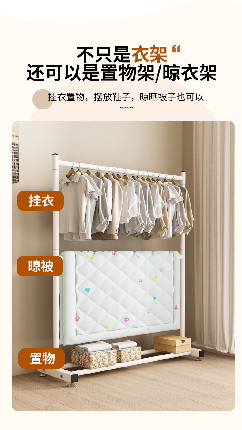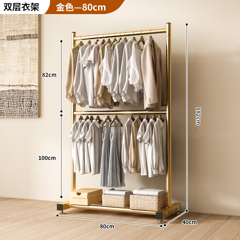 옷 건조 랙 바닥 접이식 가정용 옷 건조 랙 발코니 침실 옷 걸이 실내 이중 막대 간단한 옷 걸이스토어 가기