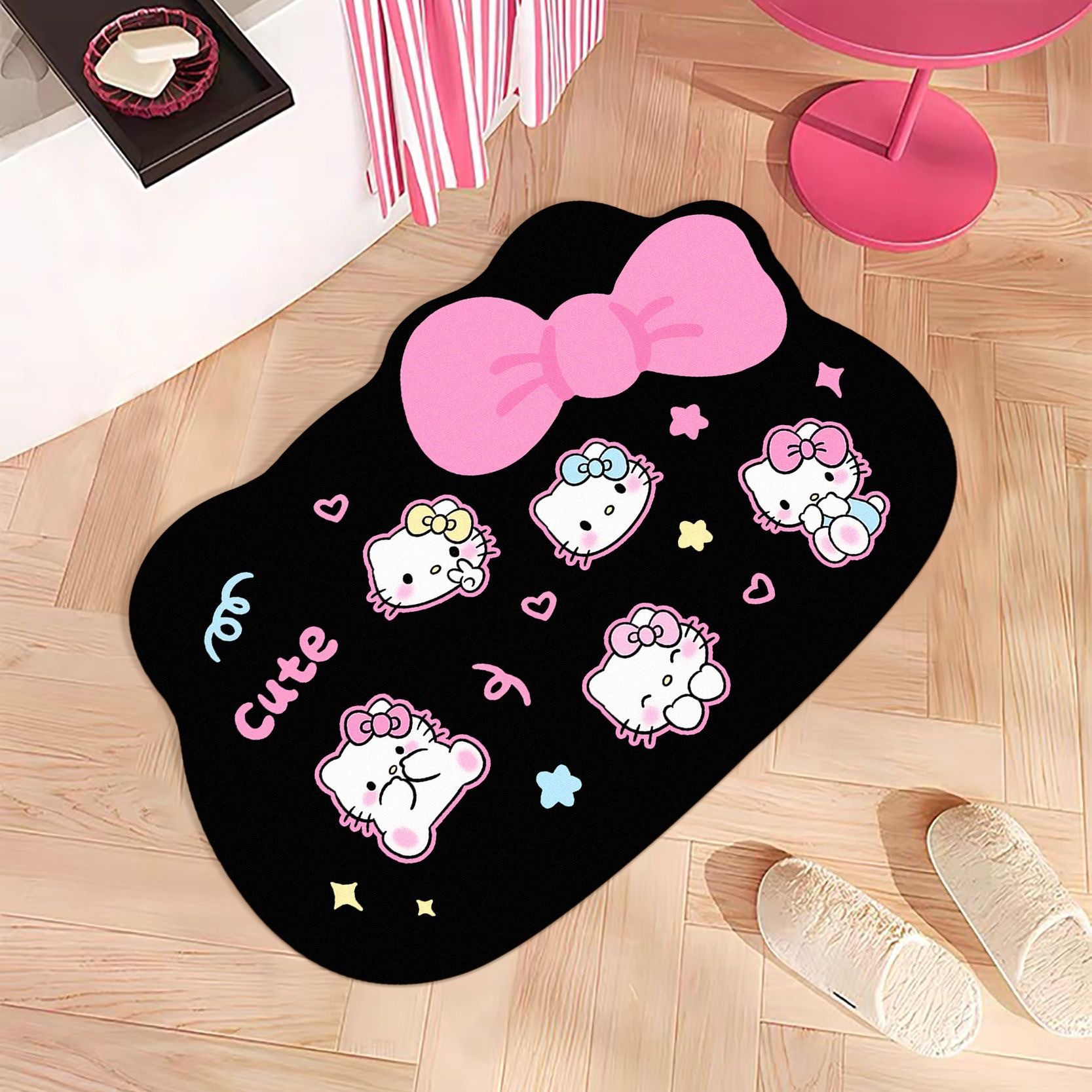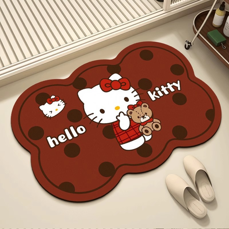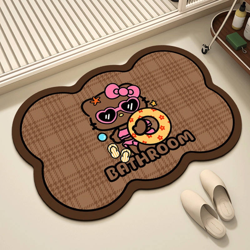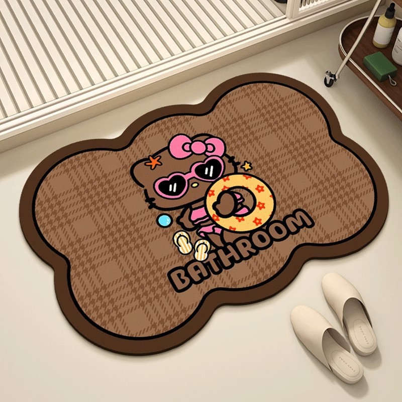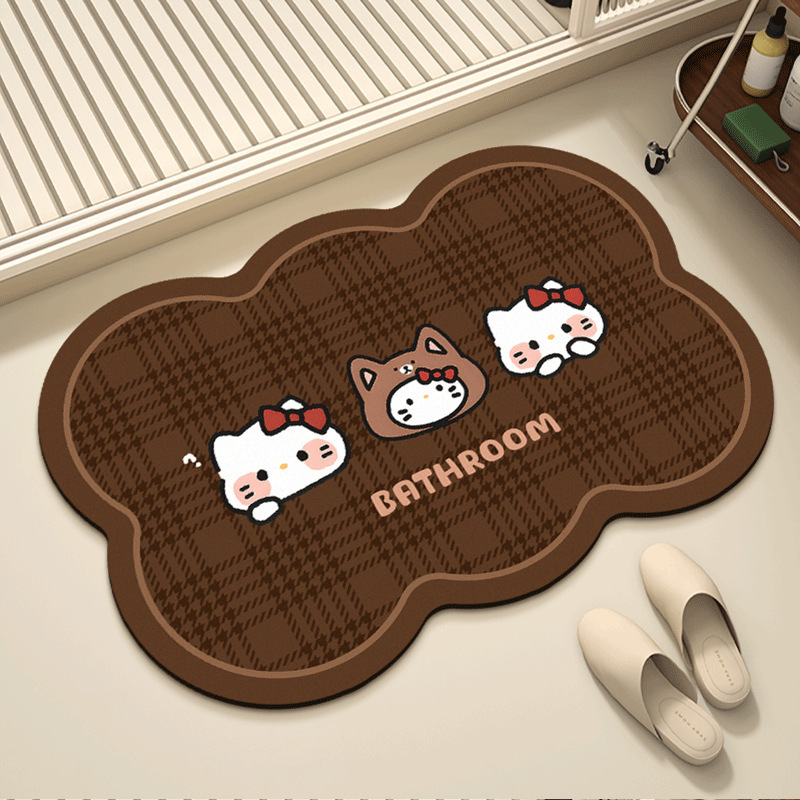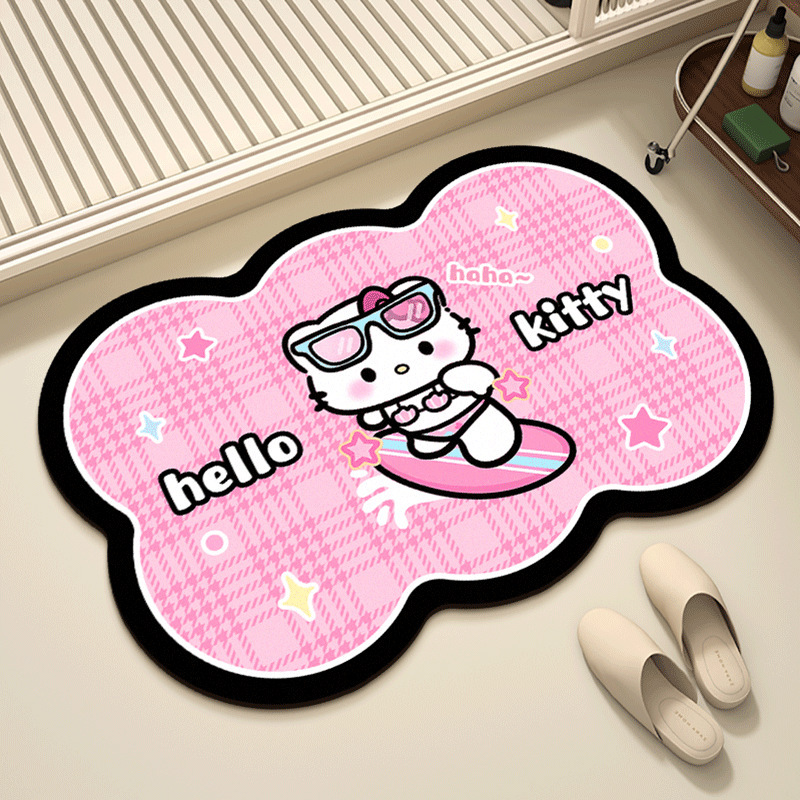 헬로키티 블랙핑크 샤워실 규조토 진흙 흡수성 미끄럼 방지 바닥 매트 얼룩 방지 내마모성 관리가 쉬운 화장실 발 매트