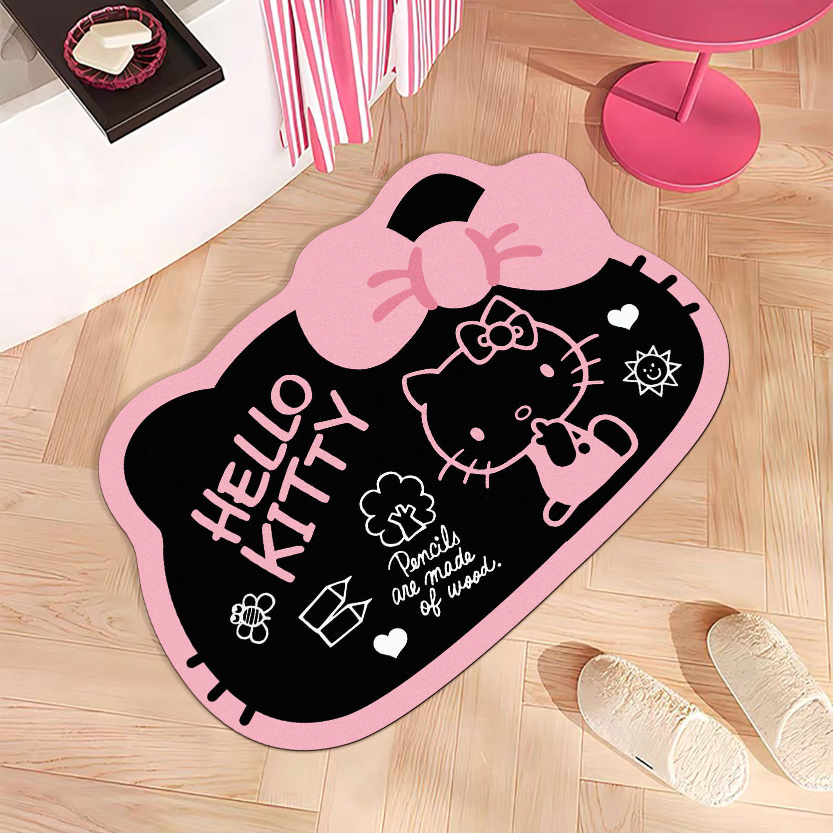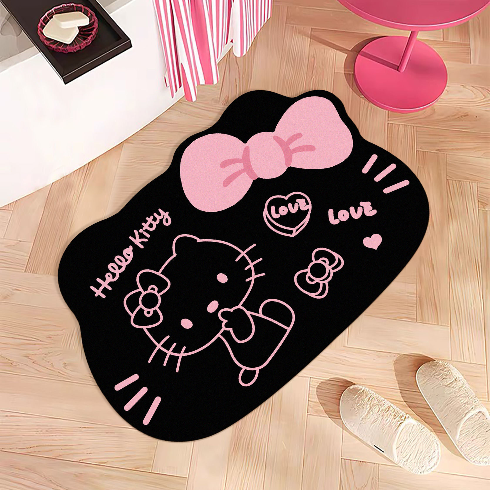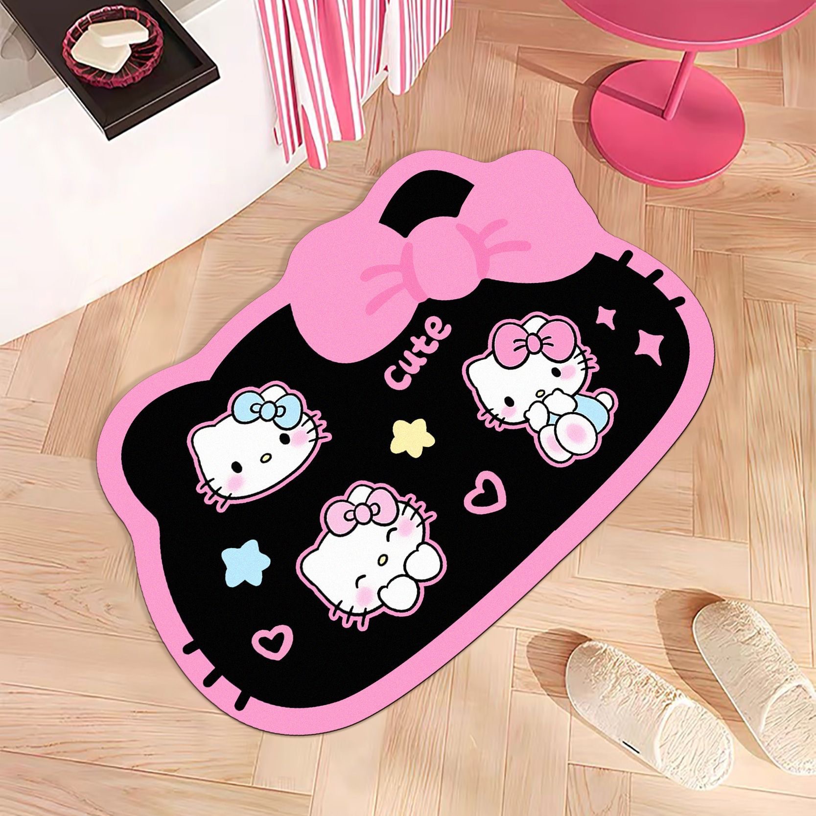 헬로키티 블랙핑크 샤워실 규조토 진흙 흡수성 미끄럼 방지 바닥 매트 얼룩 방지 내마모성 관리가 쉬운 화장실 발 매트