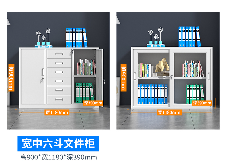 • 6개의 슬라이딩 도어가 있는 와이드 미디엄 캐비닛(실제 두께)