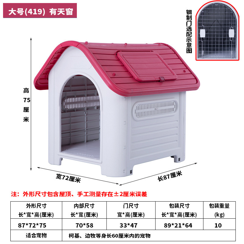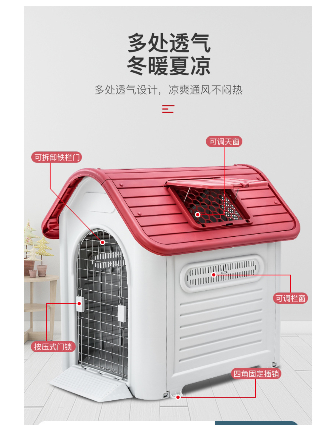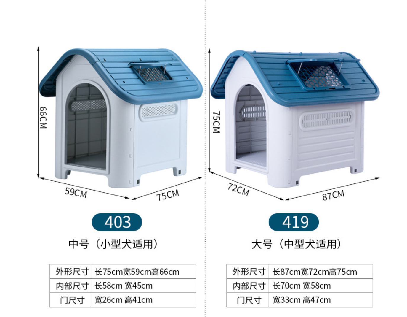 소형, 중형 및 대형견을 위한 야외 개집, 사계절 모두 사용할 수 있는 작은 집, 방수 플라스틱 개집 케이지, 야외 방수 개집