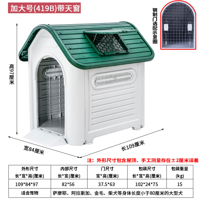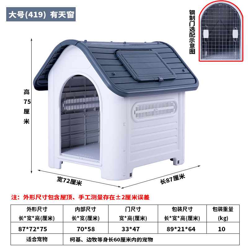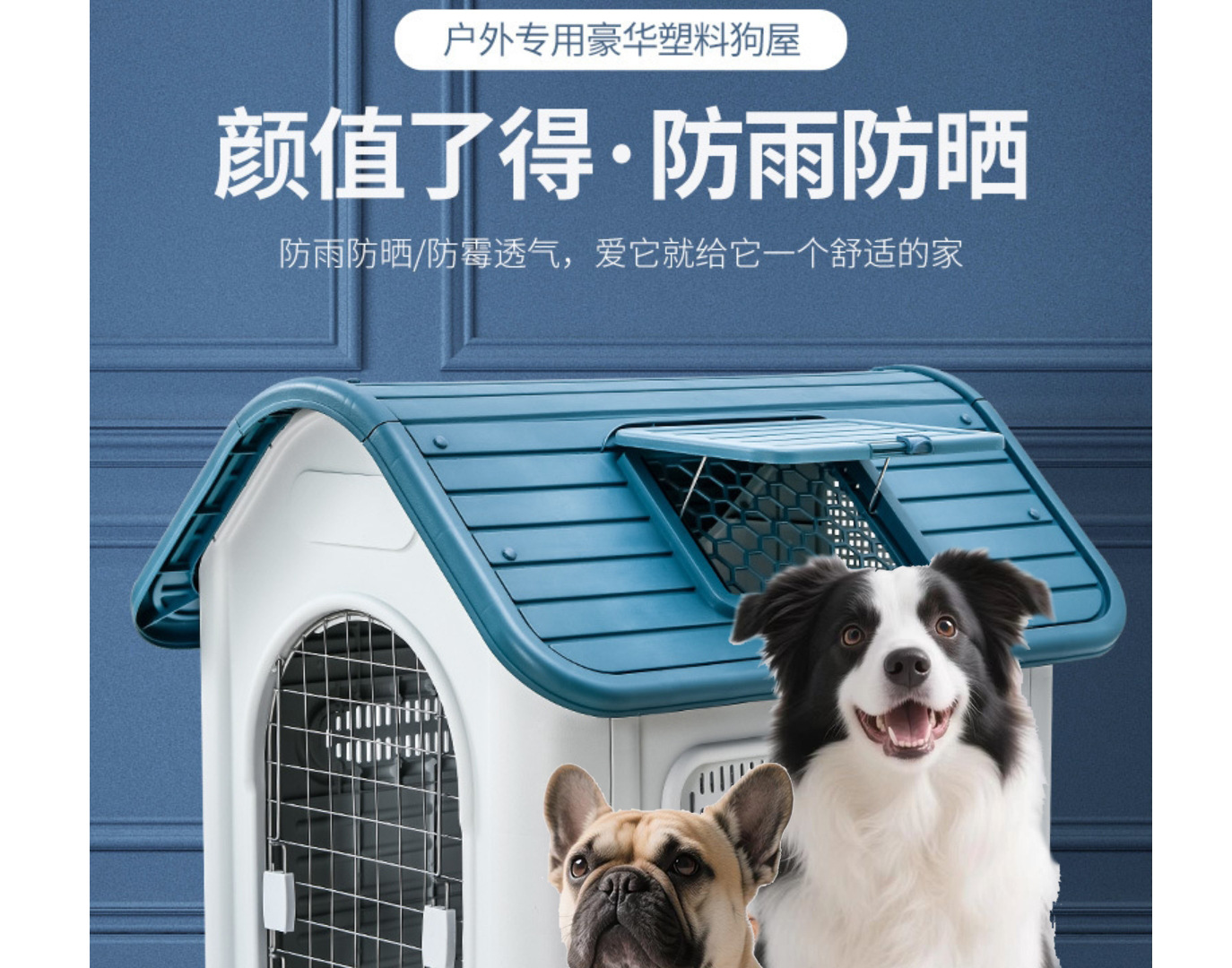 소형, 중형 및 대형견을 위한 야외 개집, 사계절 모두 사용할 수 있는 작은 집, 방수 플라스틱 개집 케이지, 야외 방수 개집스토어 가기