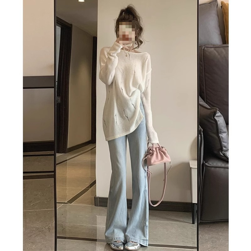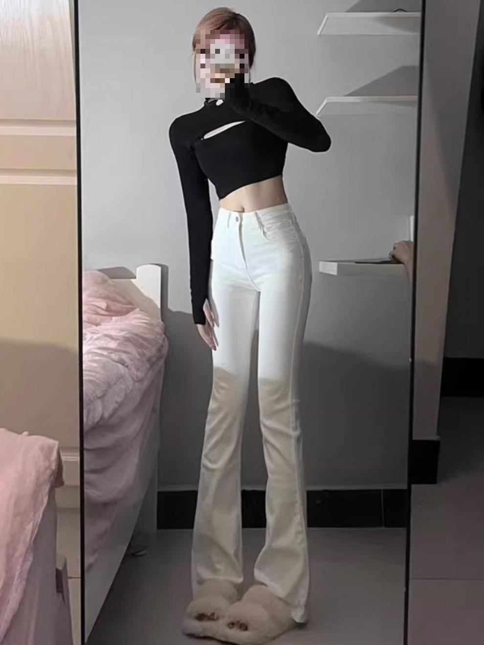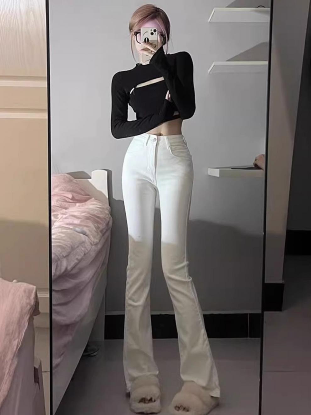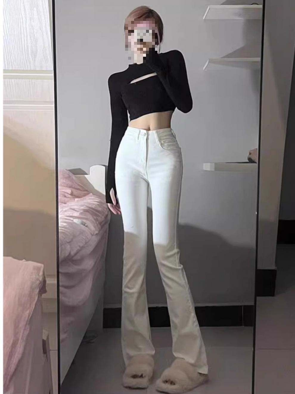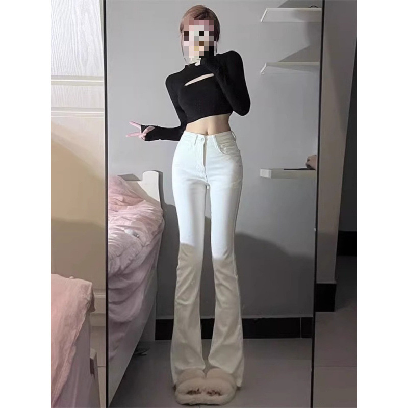 2024년 봄 가을 여성용 한국식 마이크로 플레어 청바지 새로운 스타일 하이웨이스트 슬림핏 다용도 말굽 플레어 팬츠스토어 가기