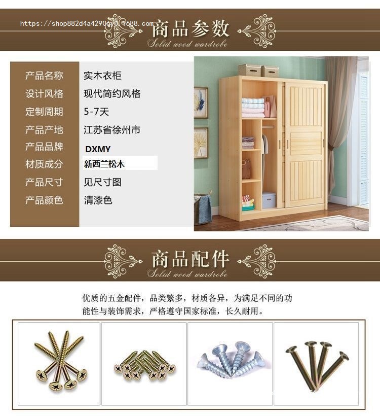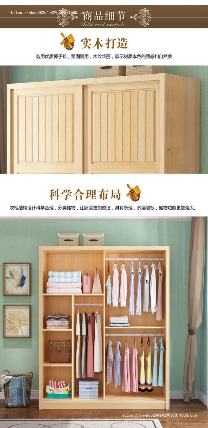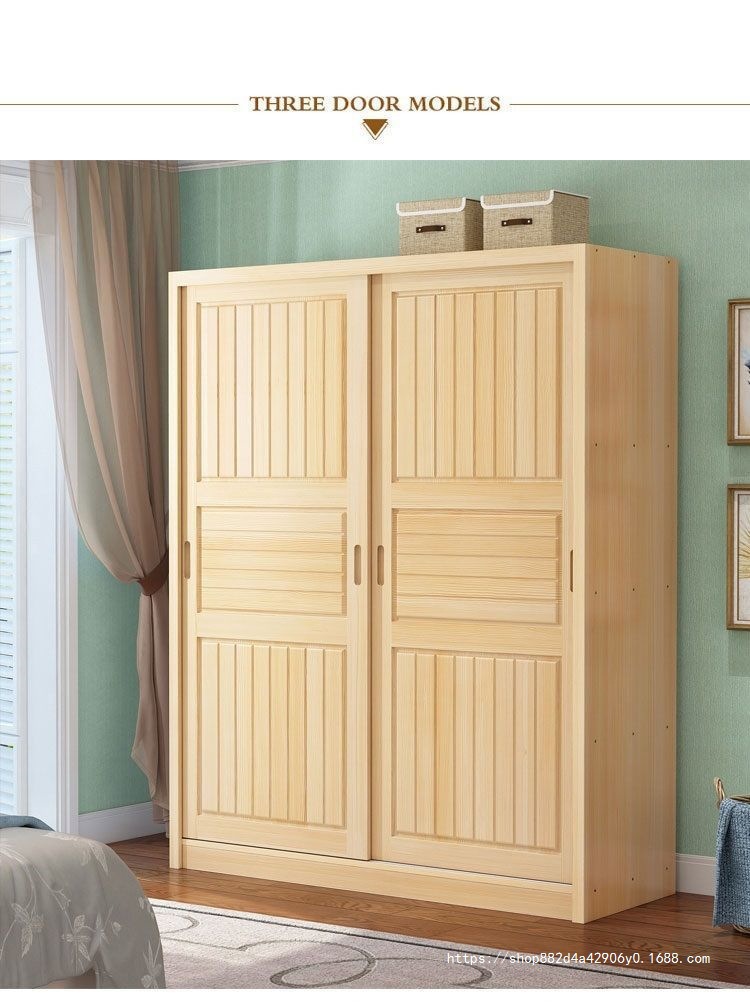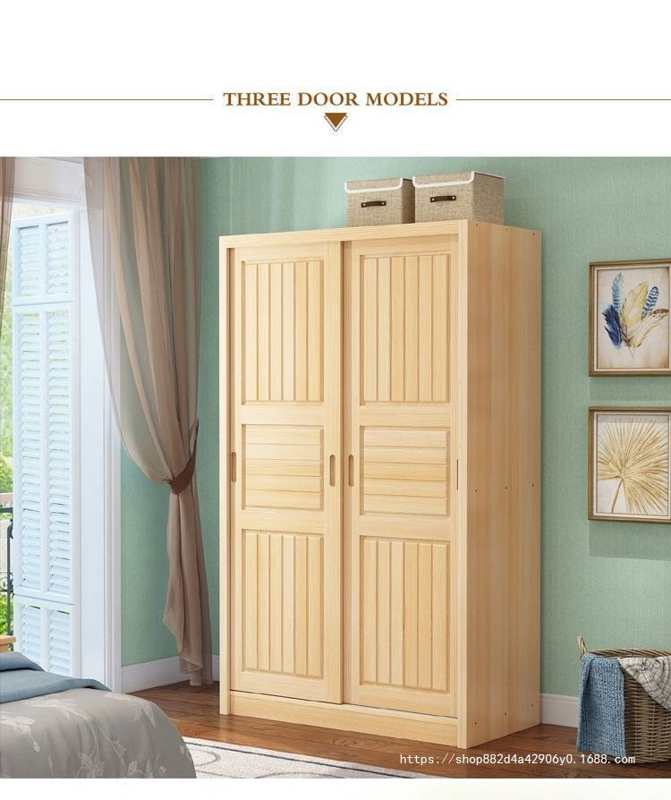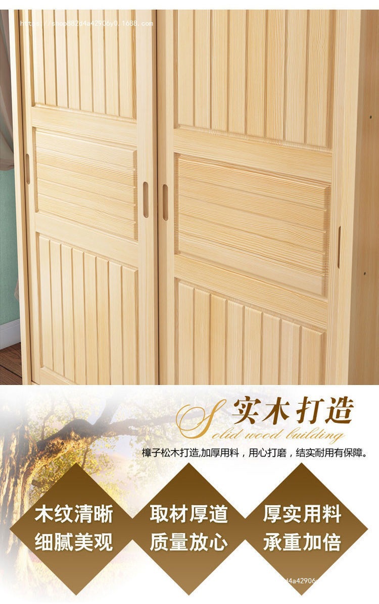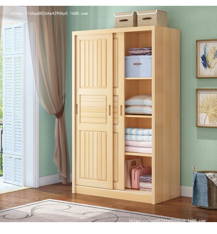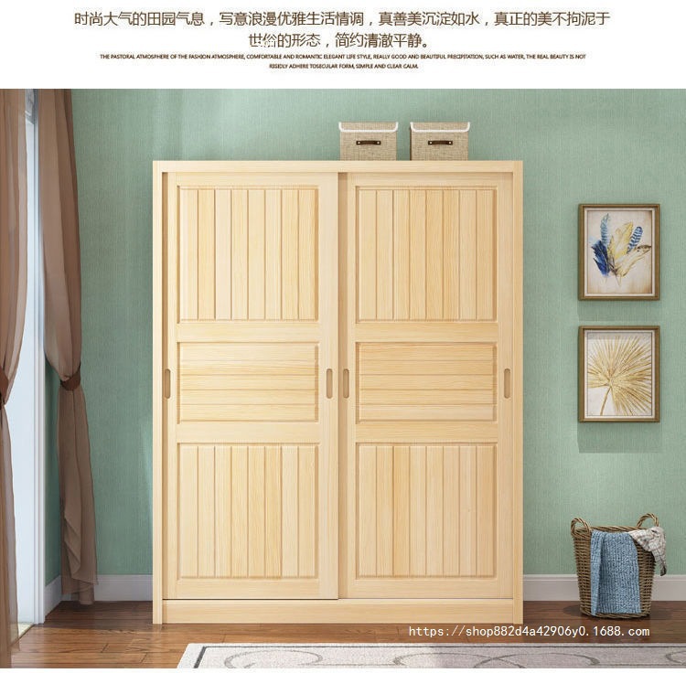 슬라이딩 도어 옷장 소나무 경제적 인 전체 단단한 나무 옷장 현대 간단한 가정용 슬라이딩 어린이 옷장 기타스토어 가기