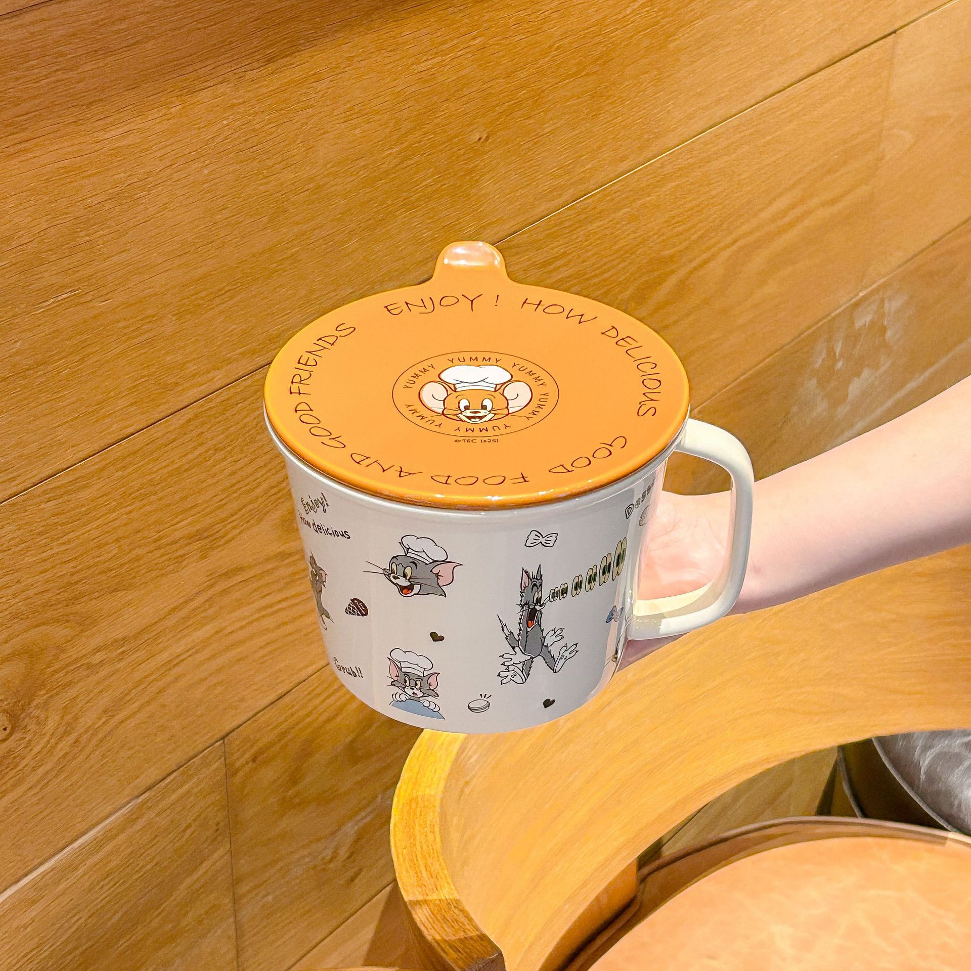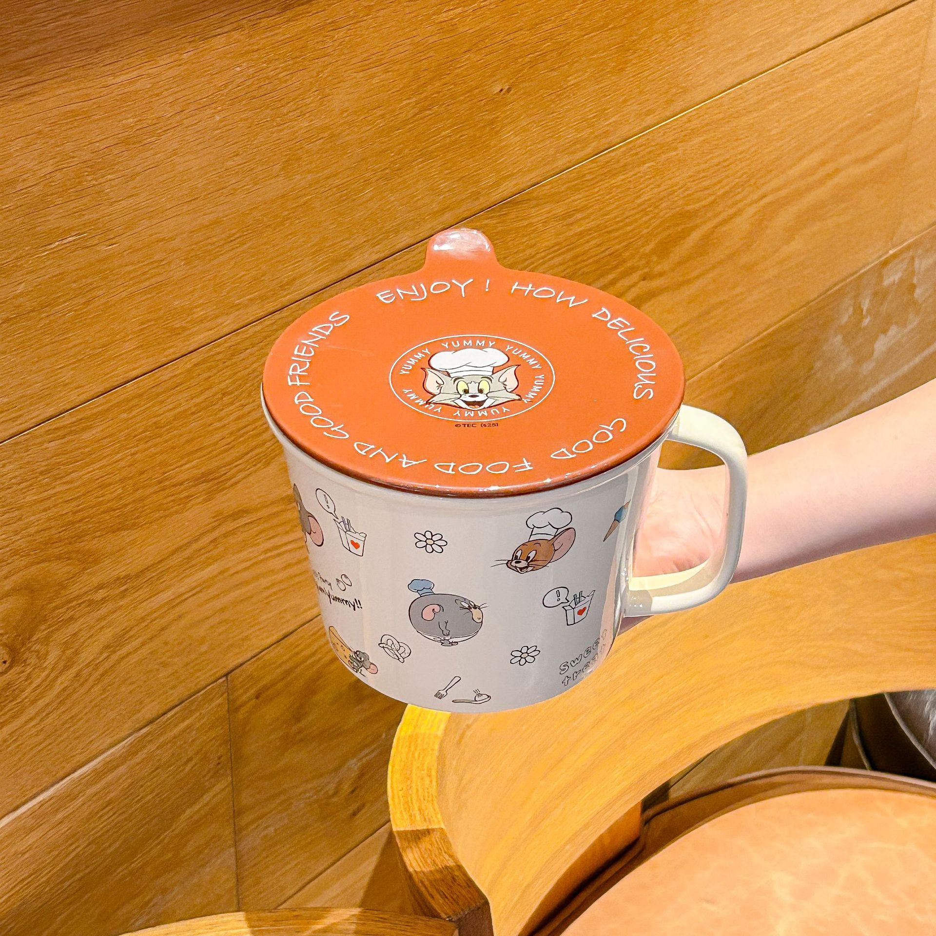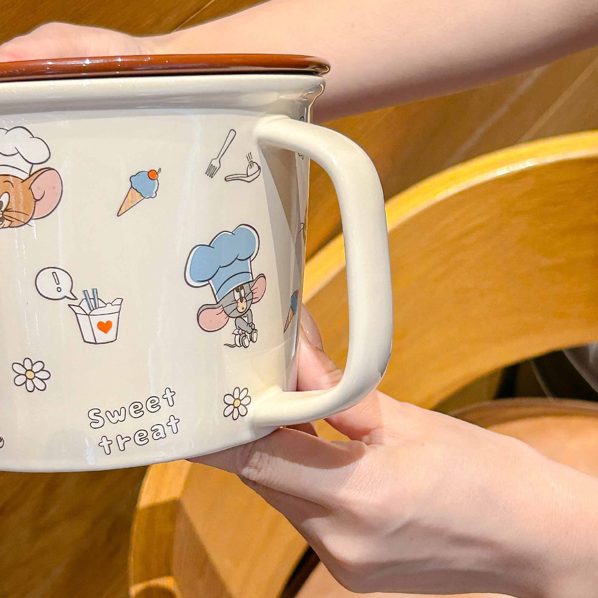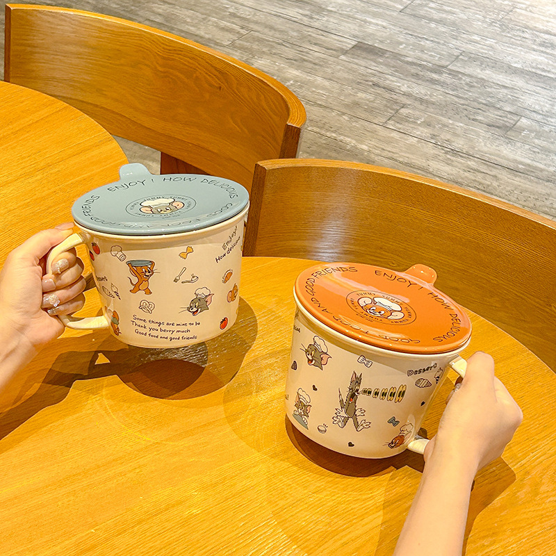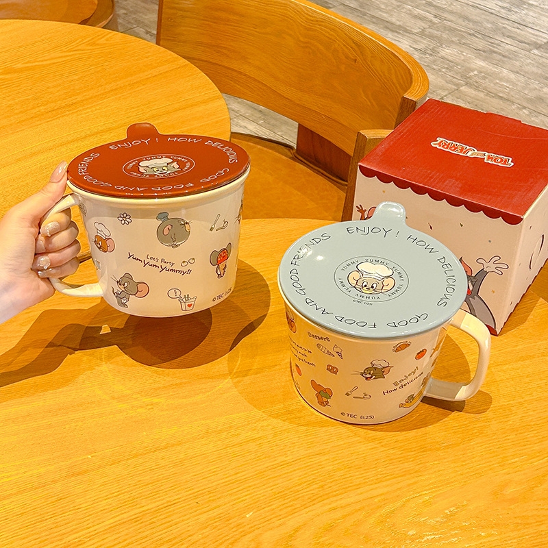 톰과 제리 정품 공동 브랜드 세라믹 뚜껑 달린 인스턴트 국수 그릇 기숙사 어린이 생일 선물