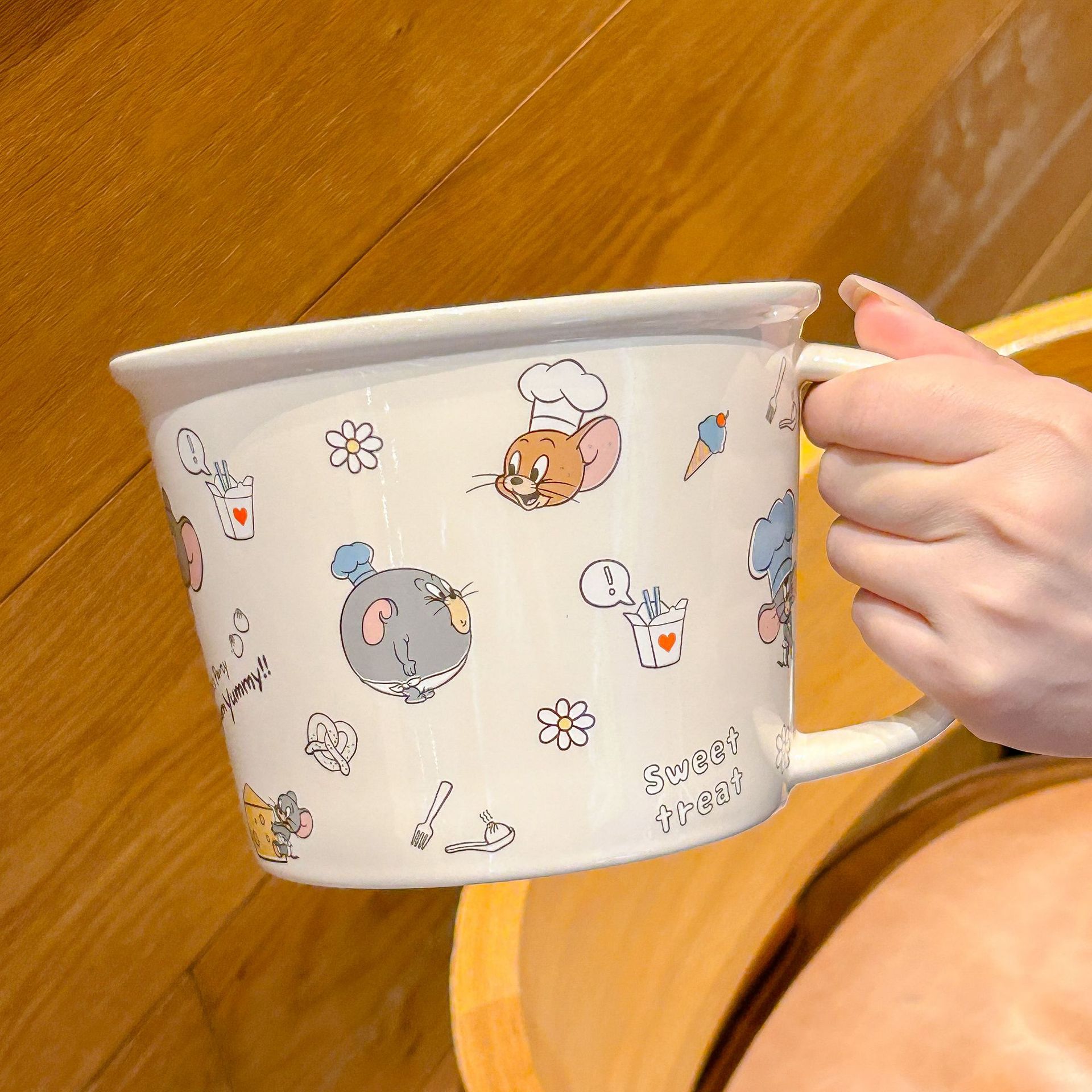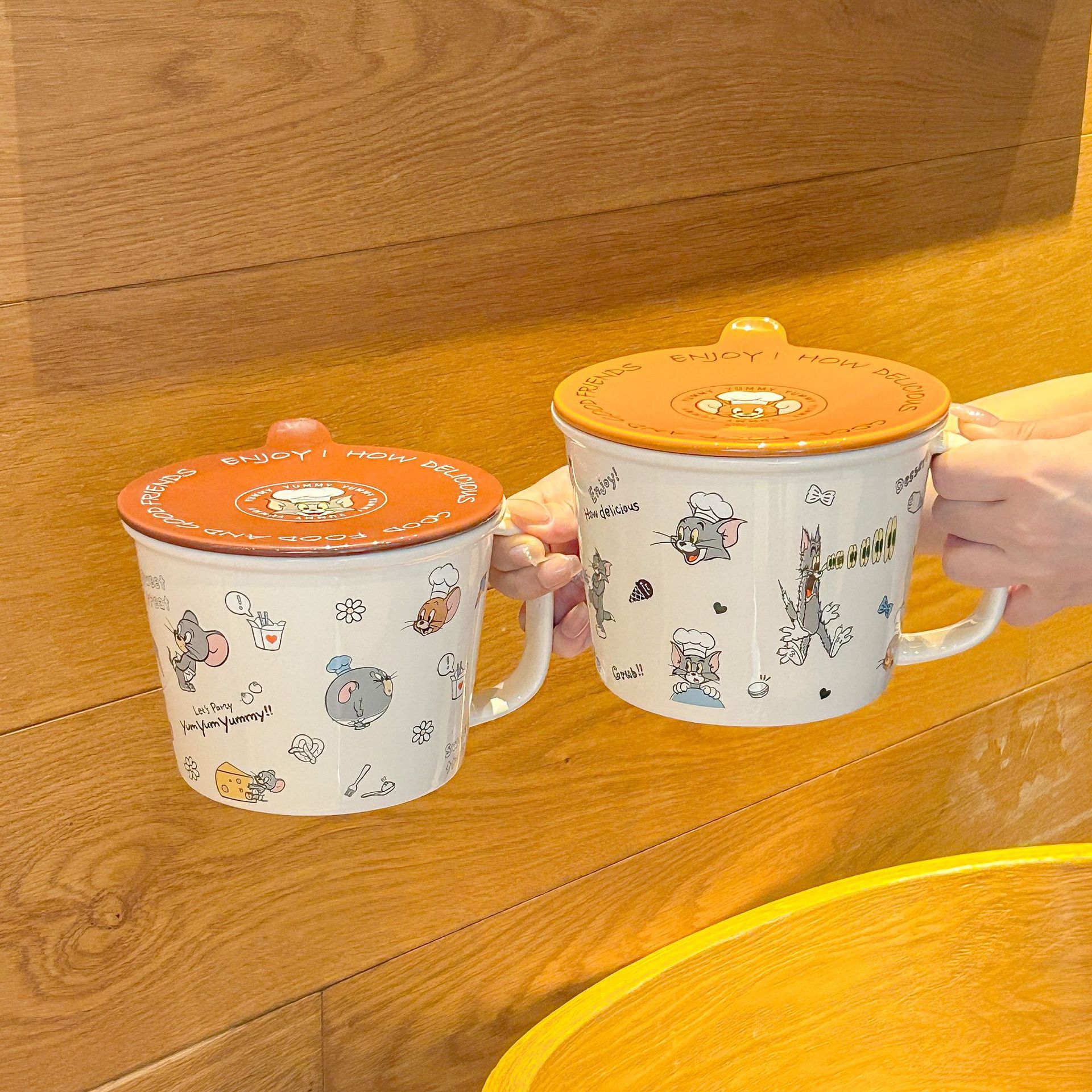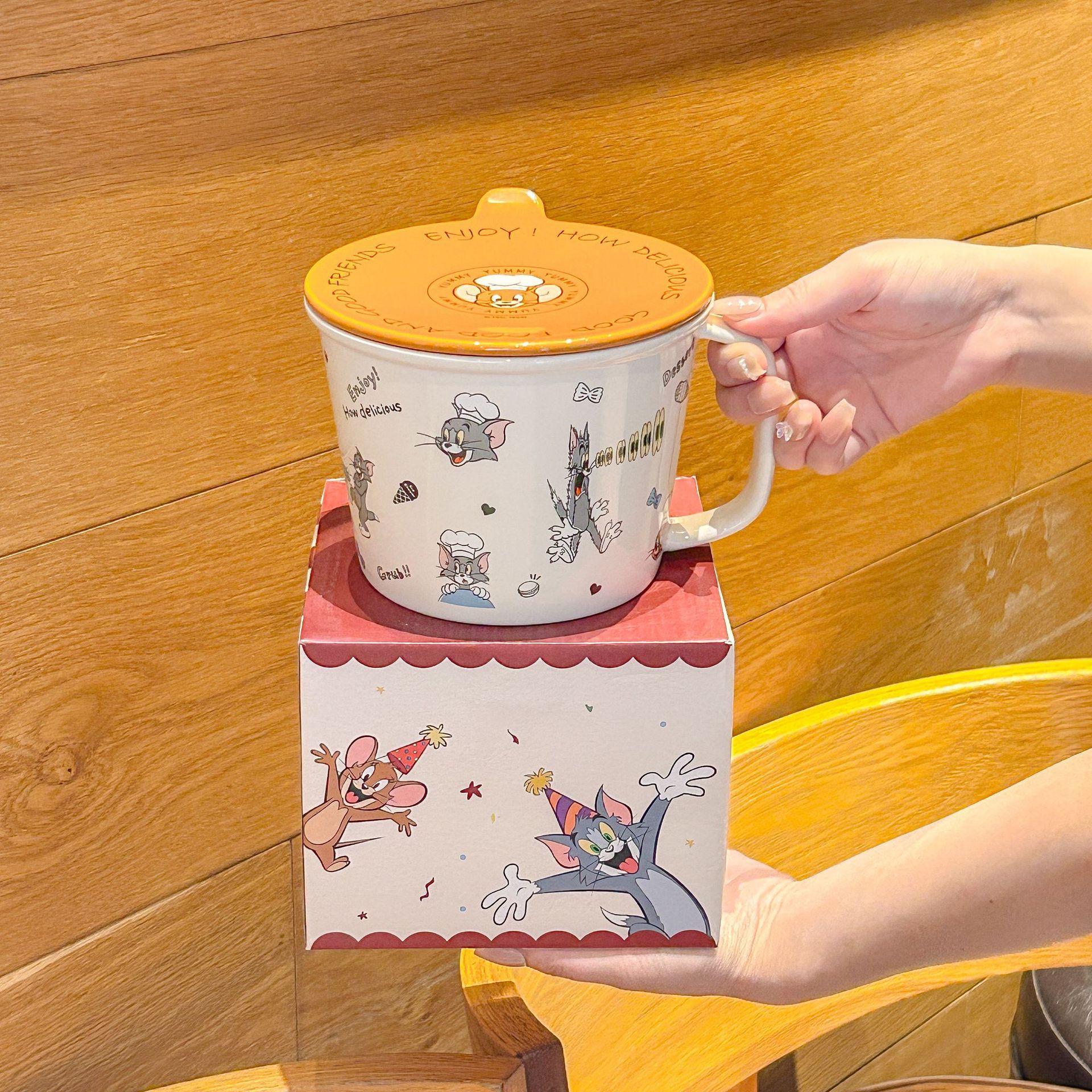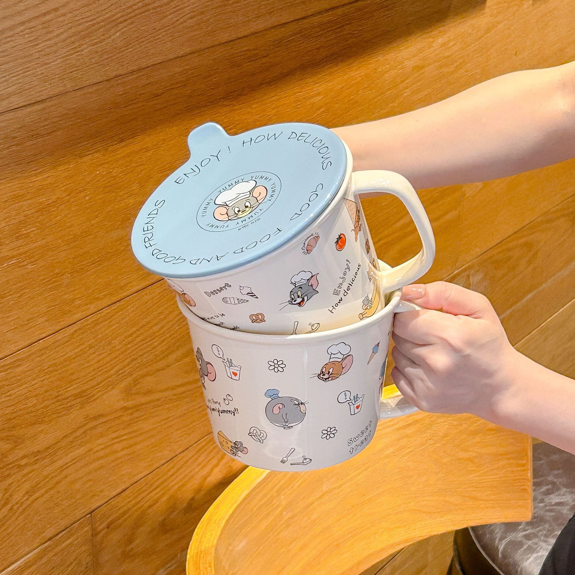 톰과 제리 정품 공동 브랜드 세라믹 뚜껑 달린 인스턴트 국수 그릇 기숙사 어린이 생일 선물