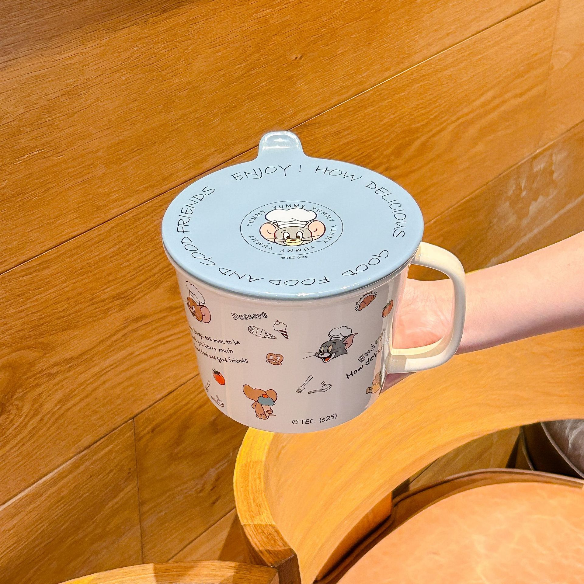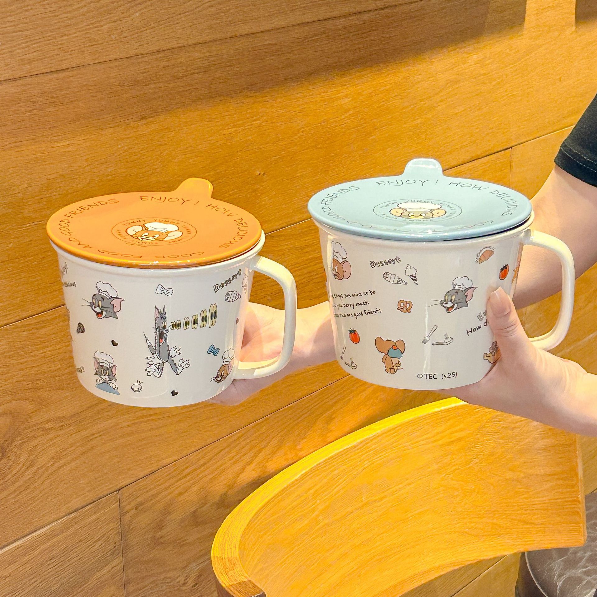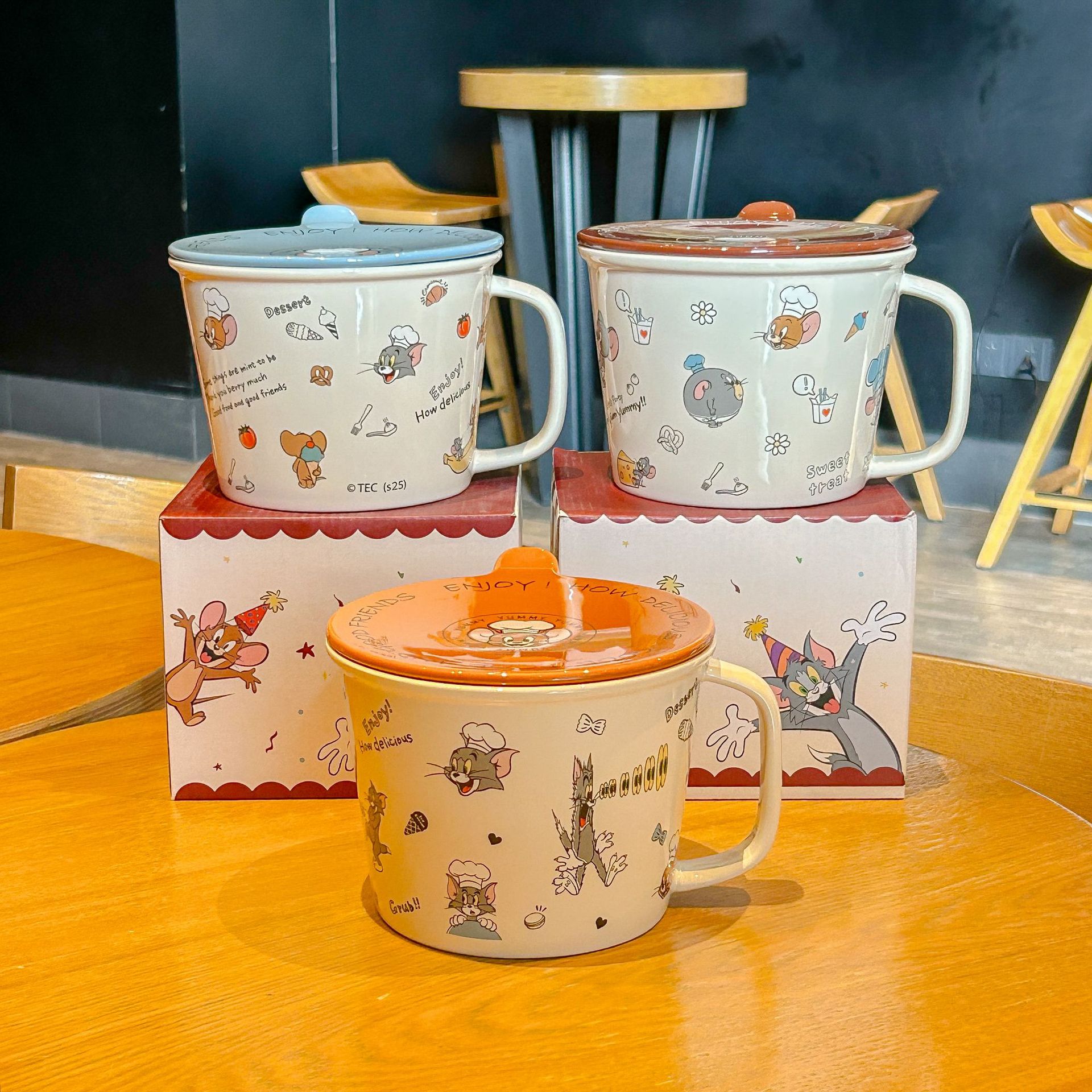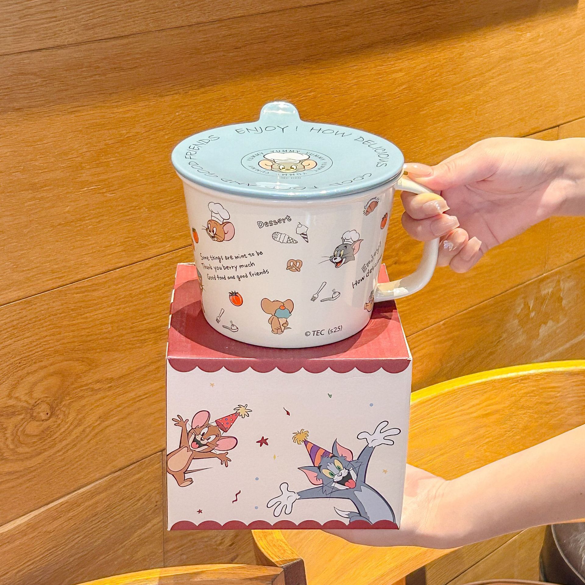 톰과 제리 정품 공동 브랜드 세라믹 뚜껑 달린 인스턴트 국수 그릇 기숙사 어린이 생일 선물