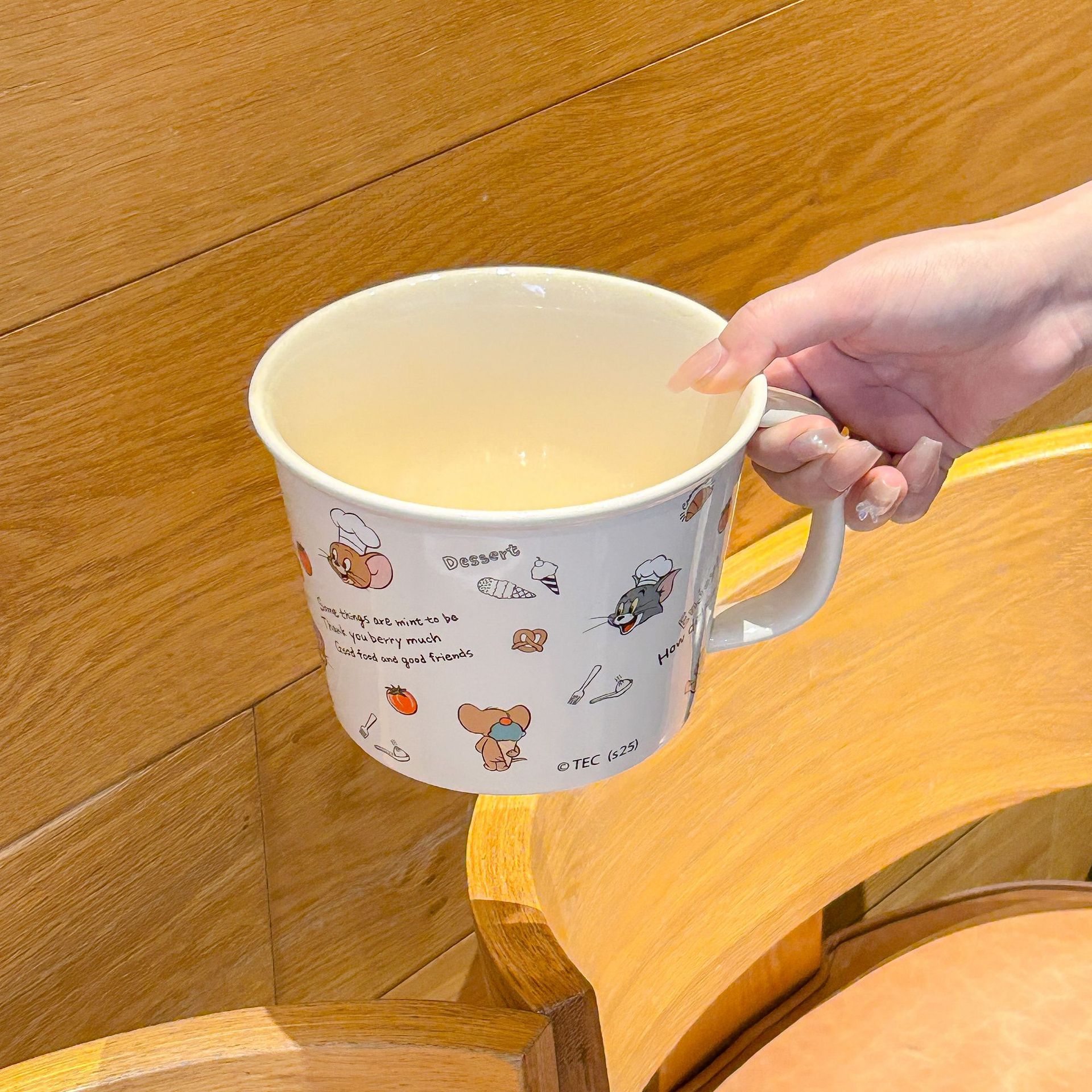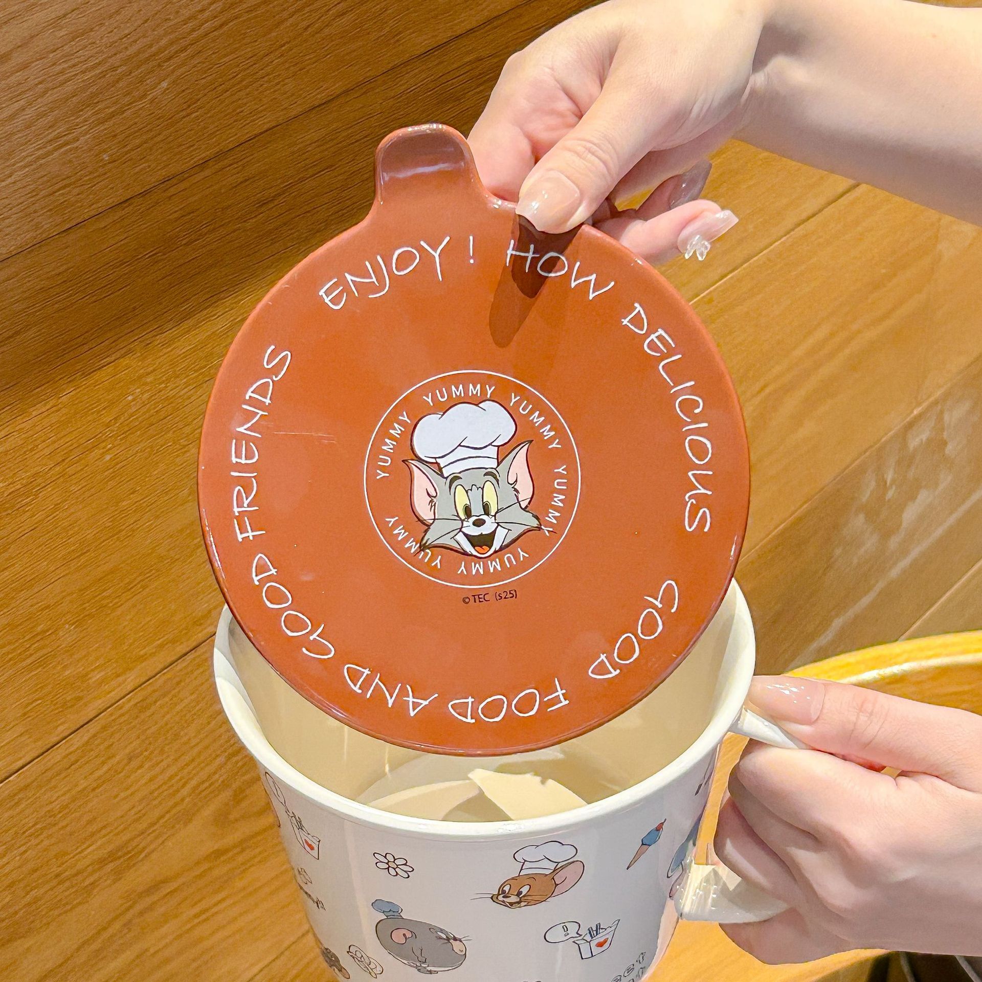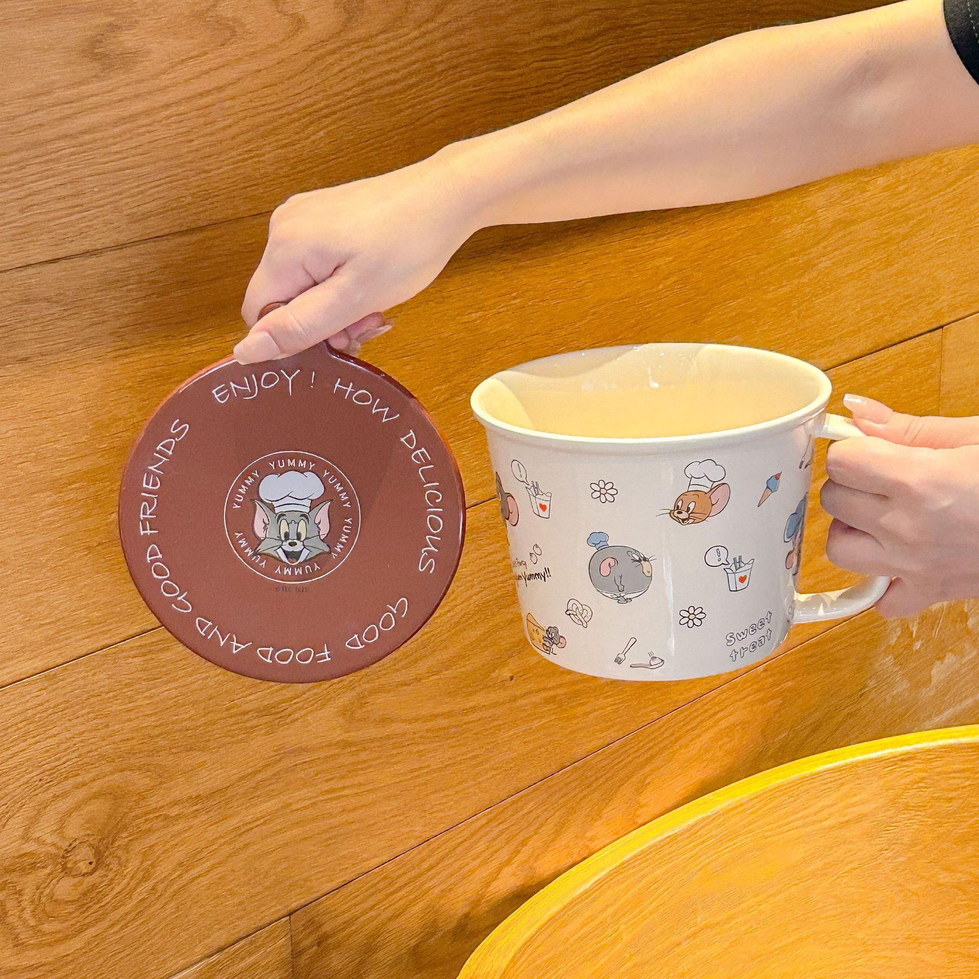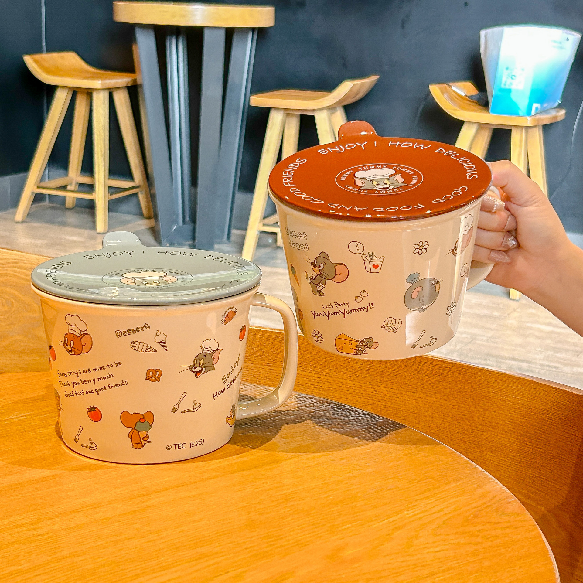톰과 제리 정품 공동 브랜드 세라믹 뚜껑 달린 인스턴트 국수 그릇 기숙사 어린이 생일 선물