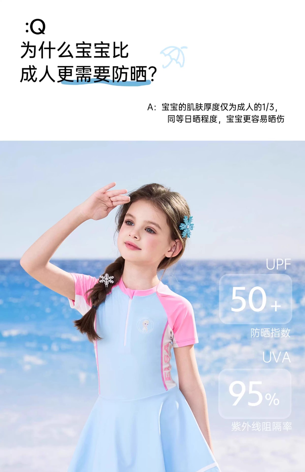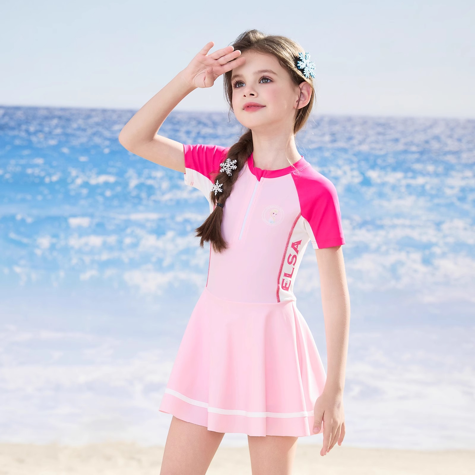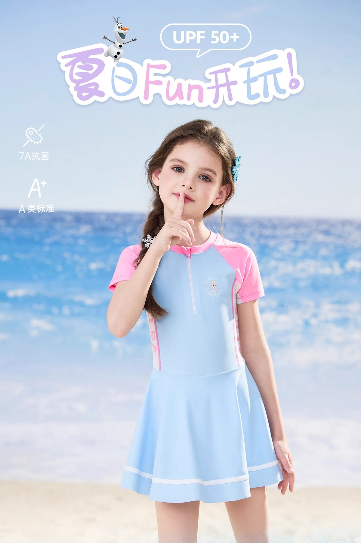 디즈니 아동 수영복 여아 원피스 2025 신형 여아 수영복 중대형 아동 중학생 자외선 차단 수영복