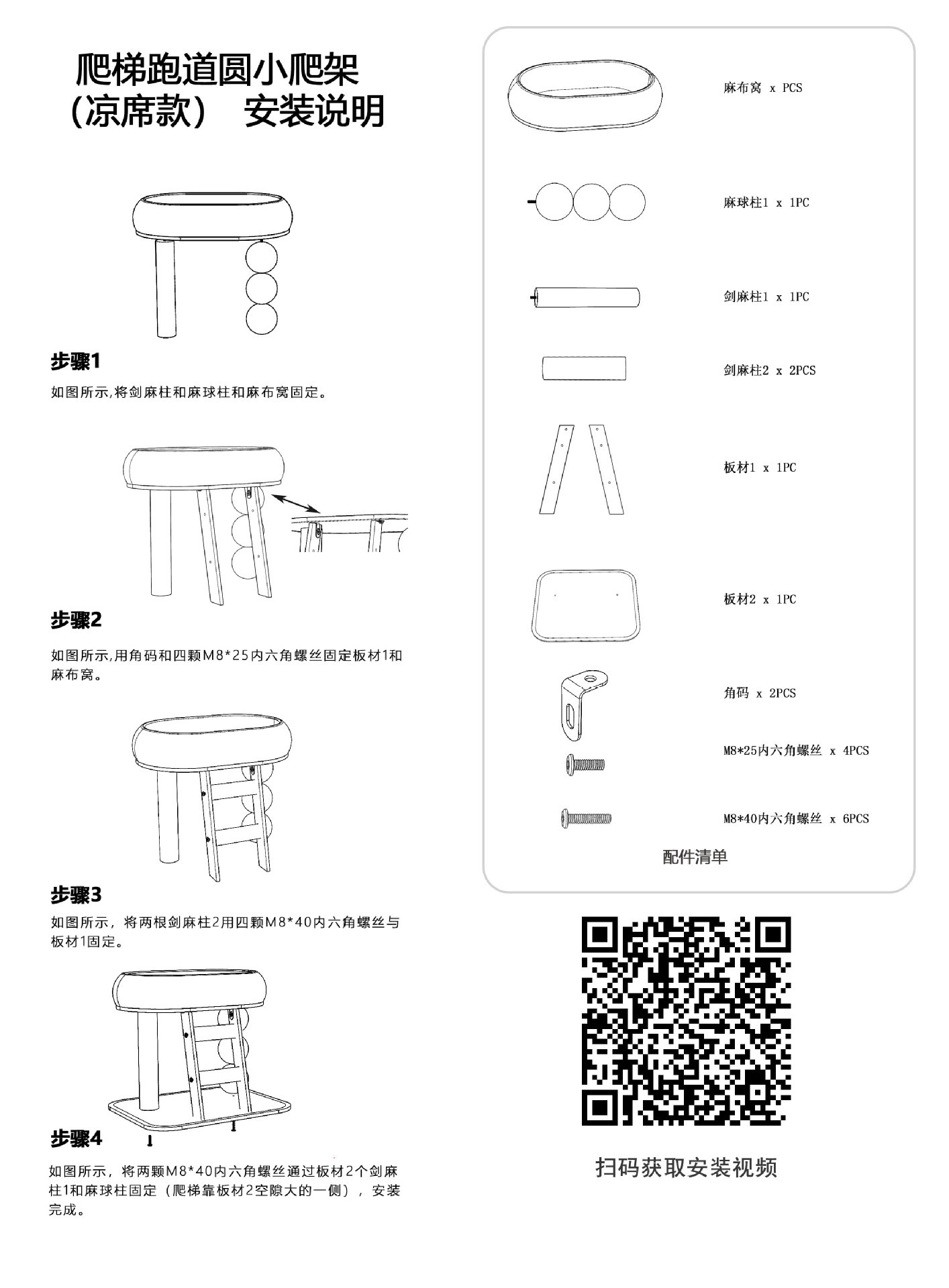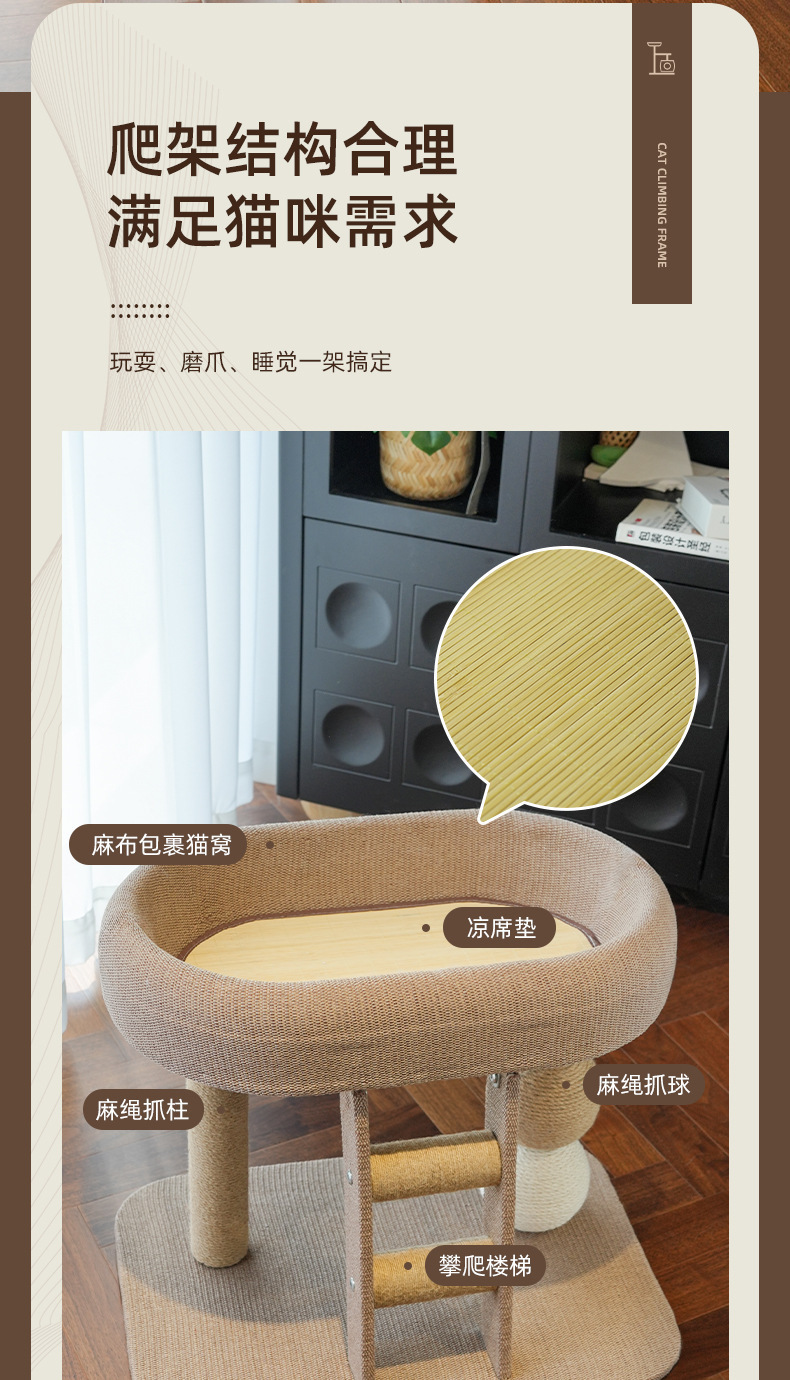 • 사다리 활주로 원형 소형 등반 프레임(대마 매트 버전)