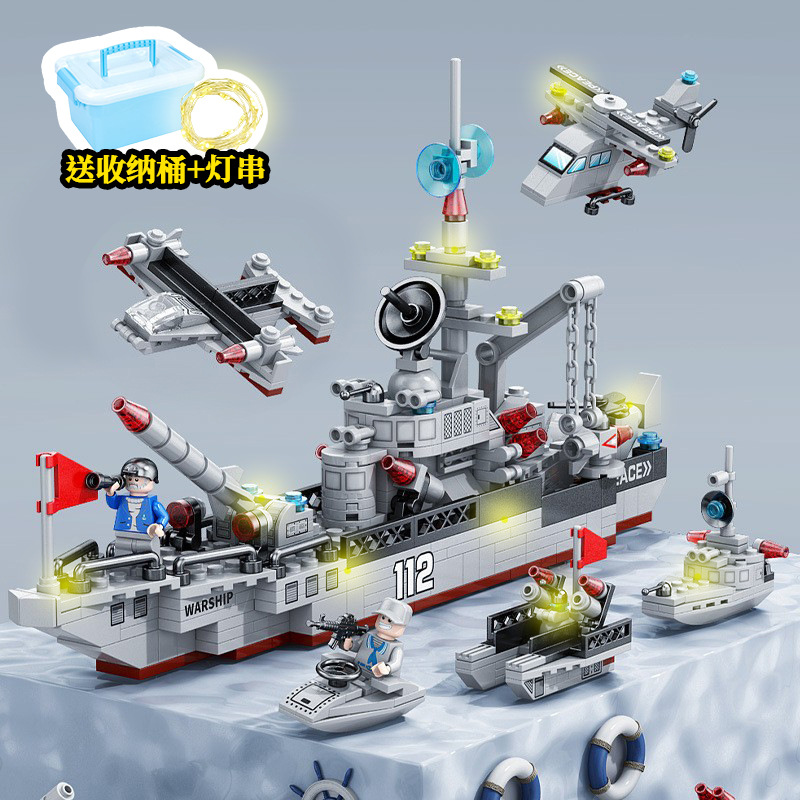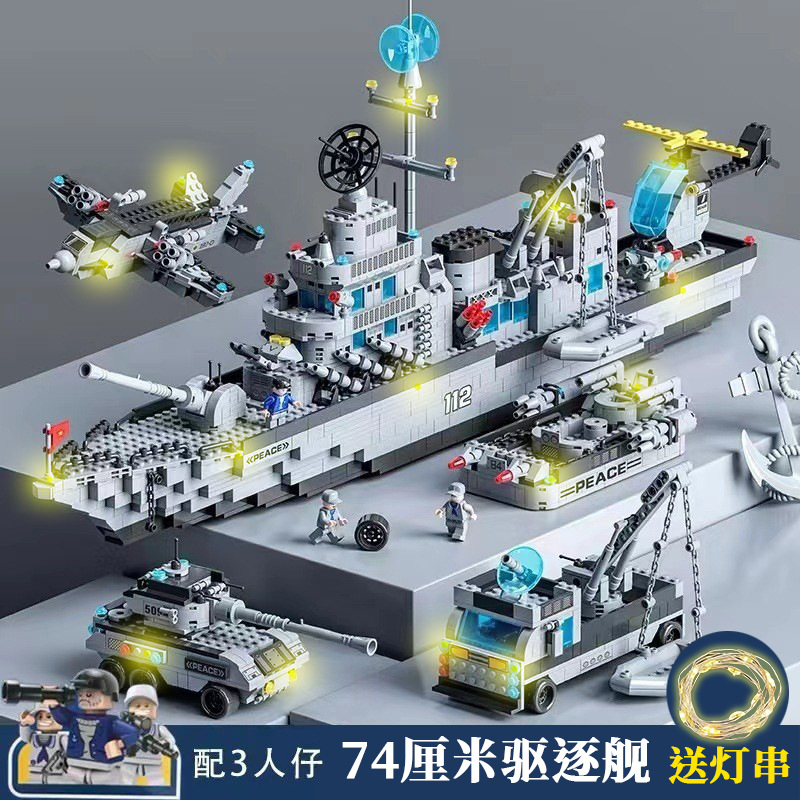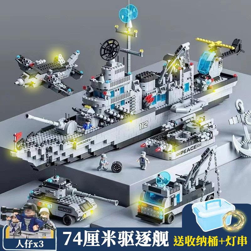 • 74CM 미사일 구축함/미니피겨 3개 + 조명 포함 [가성비 선물 상자]