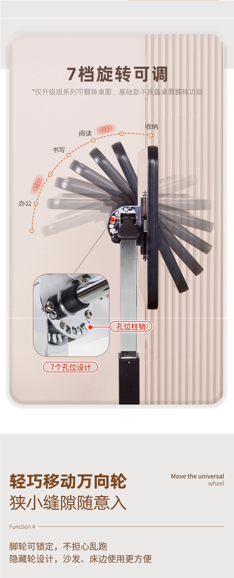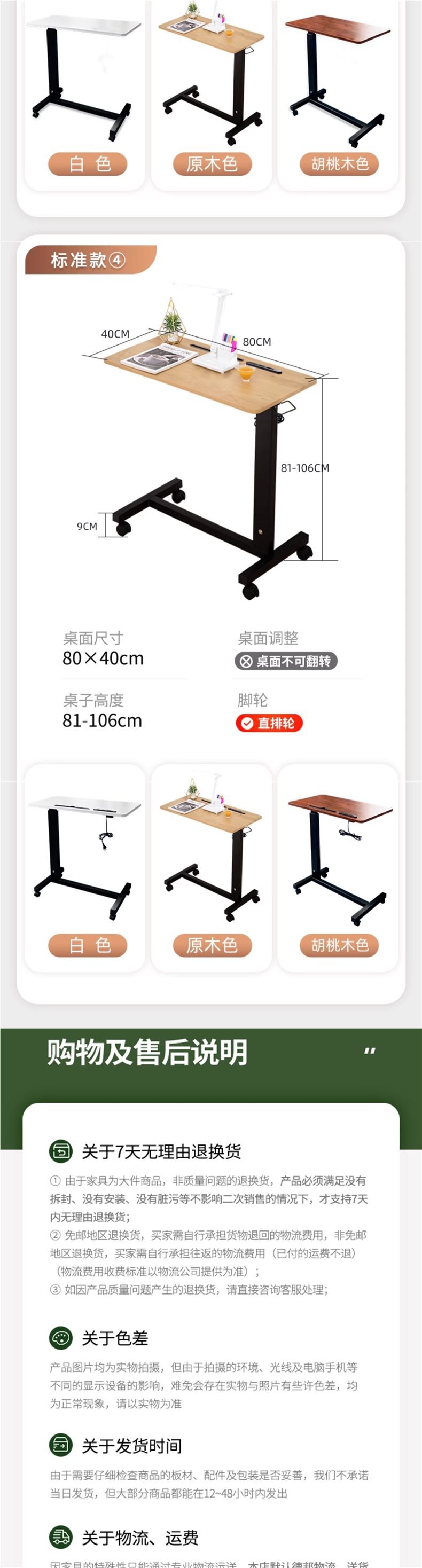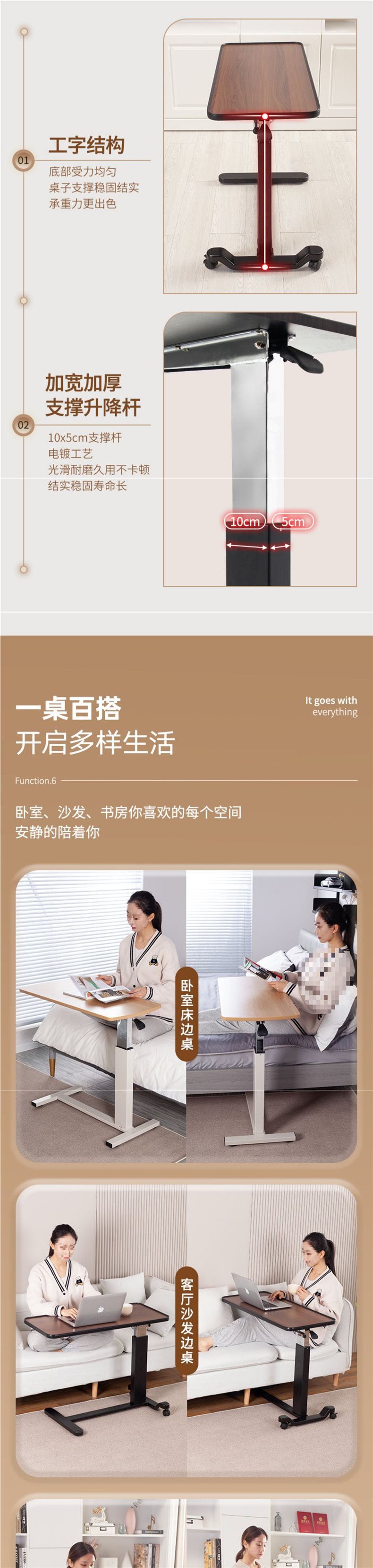 바퀴가 달린 모바일 식탁 침대 옆 테이블 가정용 침대 접이식 공압 리프팅 테이블 컴퓨터 책상 사무실스토어 가기