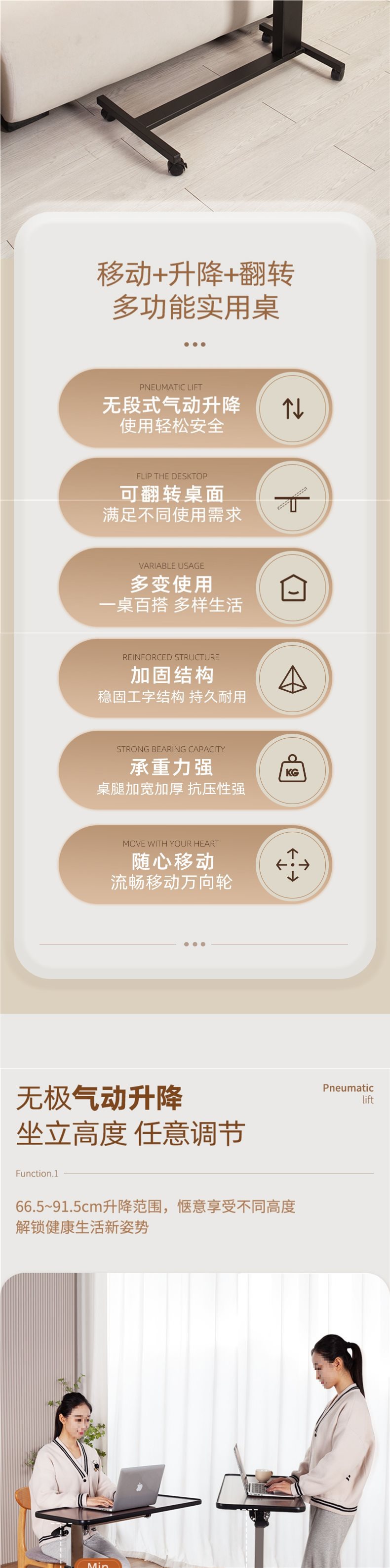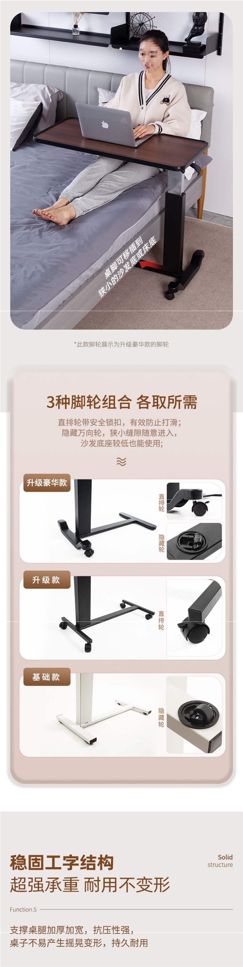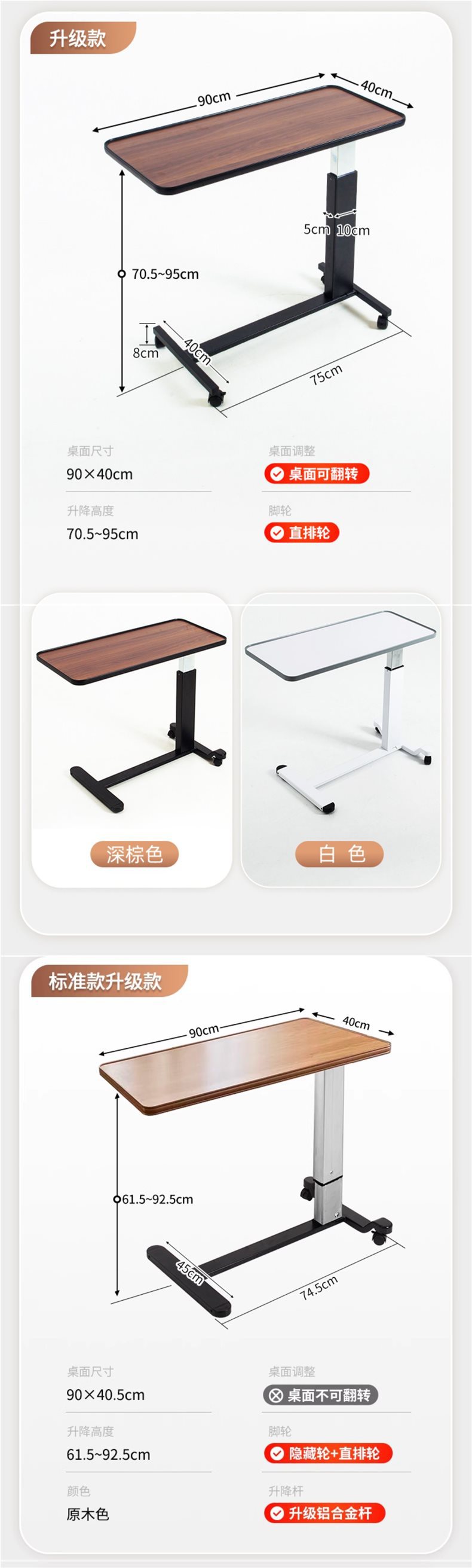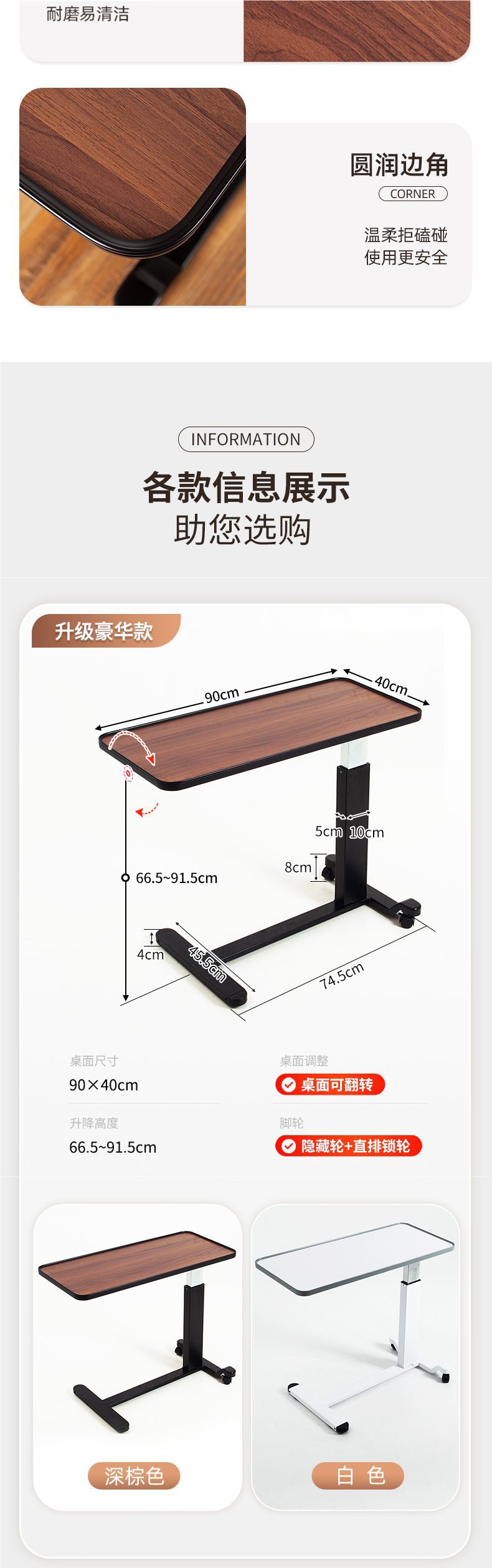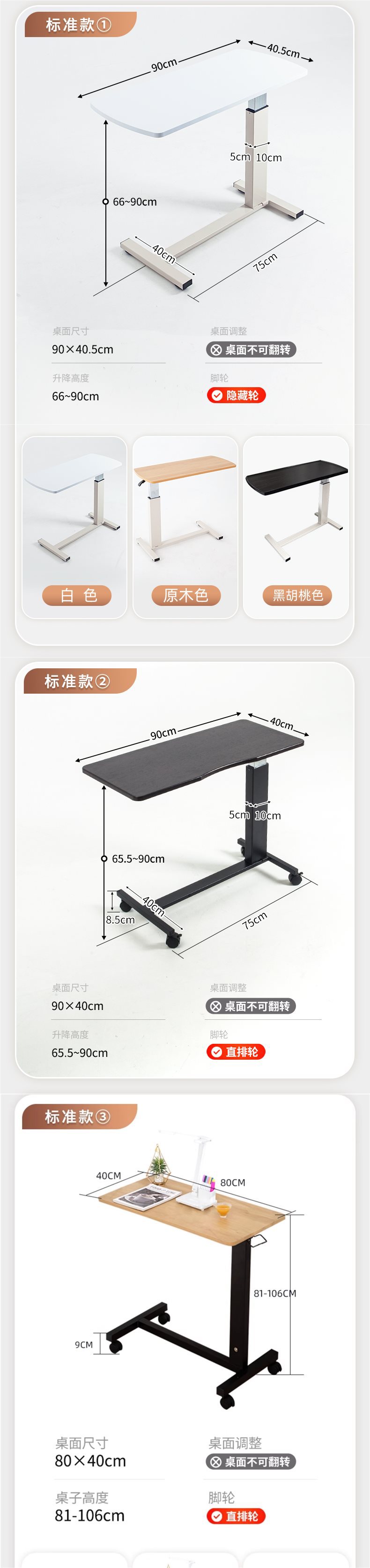 바퀴가 달린 모바일 식탁 침대 옆 테이블 가정용 침대 접이식 공압 리프팅 테이블 컴퓨터 책상 사무실