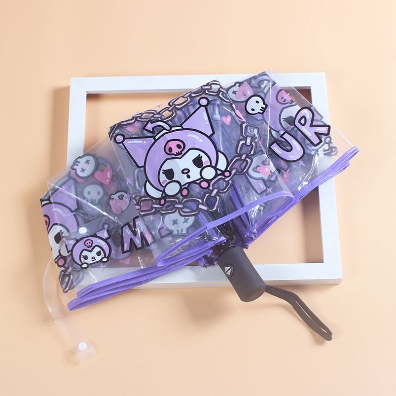 어린이와 여학생을 위한 쿠로미 우산, 자동 접이식, 비가 오나 눈이 오나, 산리오 자외선 차단 및 자외선 차단스토어 가기