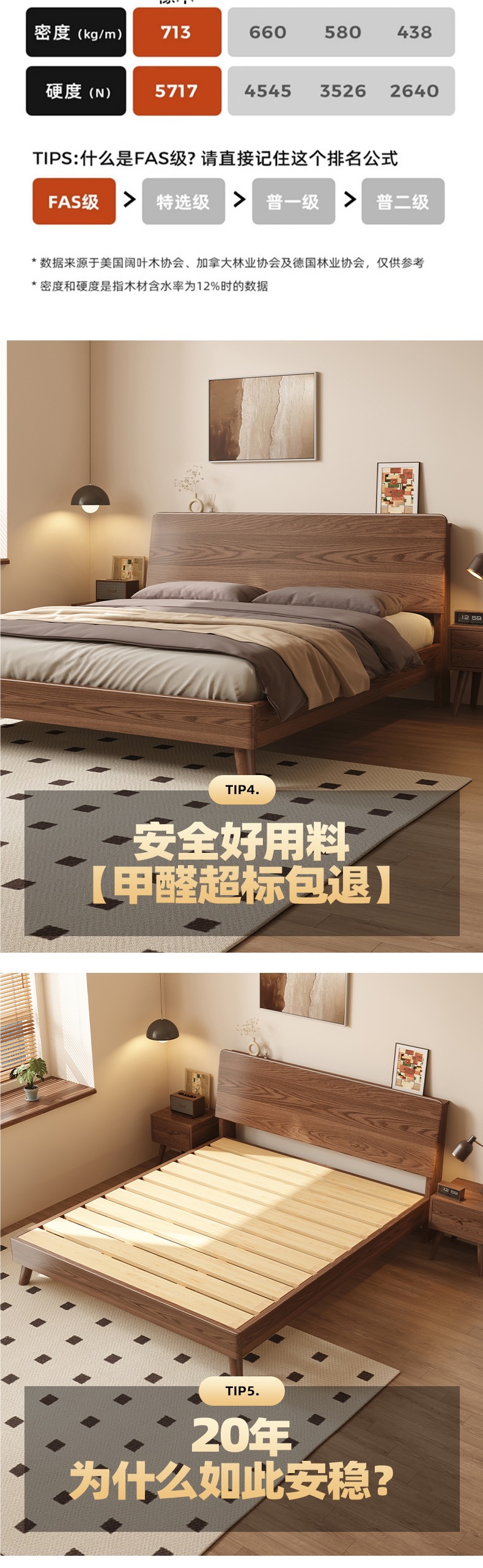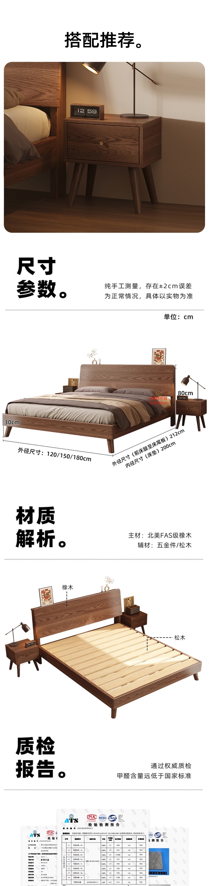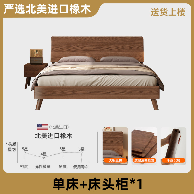 침대 원목 침대 모던 심플 1.5m 가정용 호두색 싱글 침대 1.8m 마스터 침실 레드 오크 침대 더블 도매스토어 가기