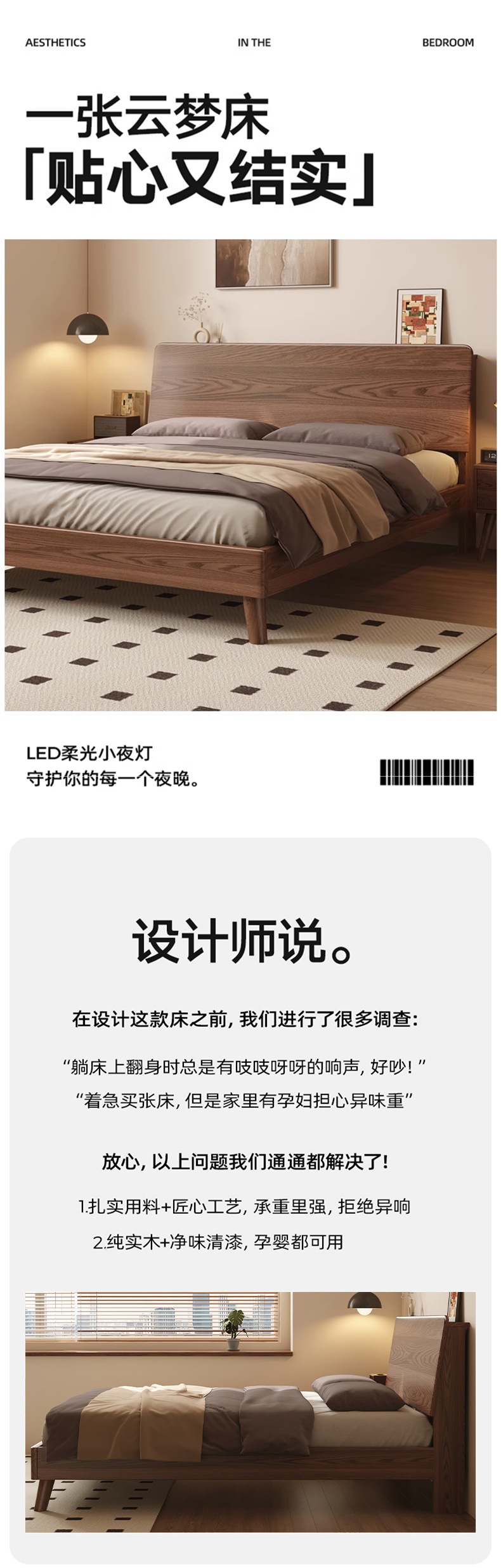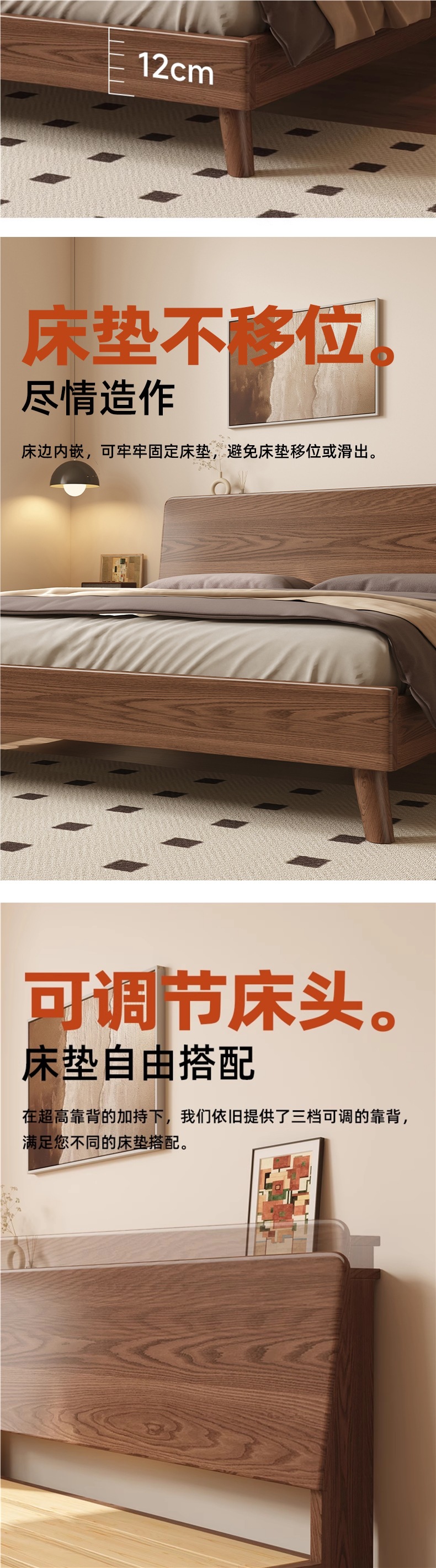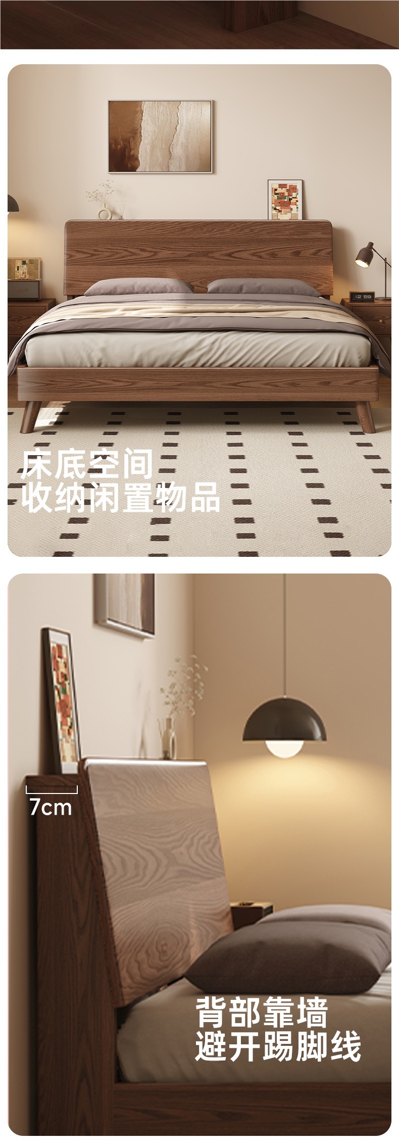 침대 원목 침대 모던 심플 1.5m 가정용 호두색 싱글 침대 1.8m 마스터 침실 레드 오크 침대 더블 도매
