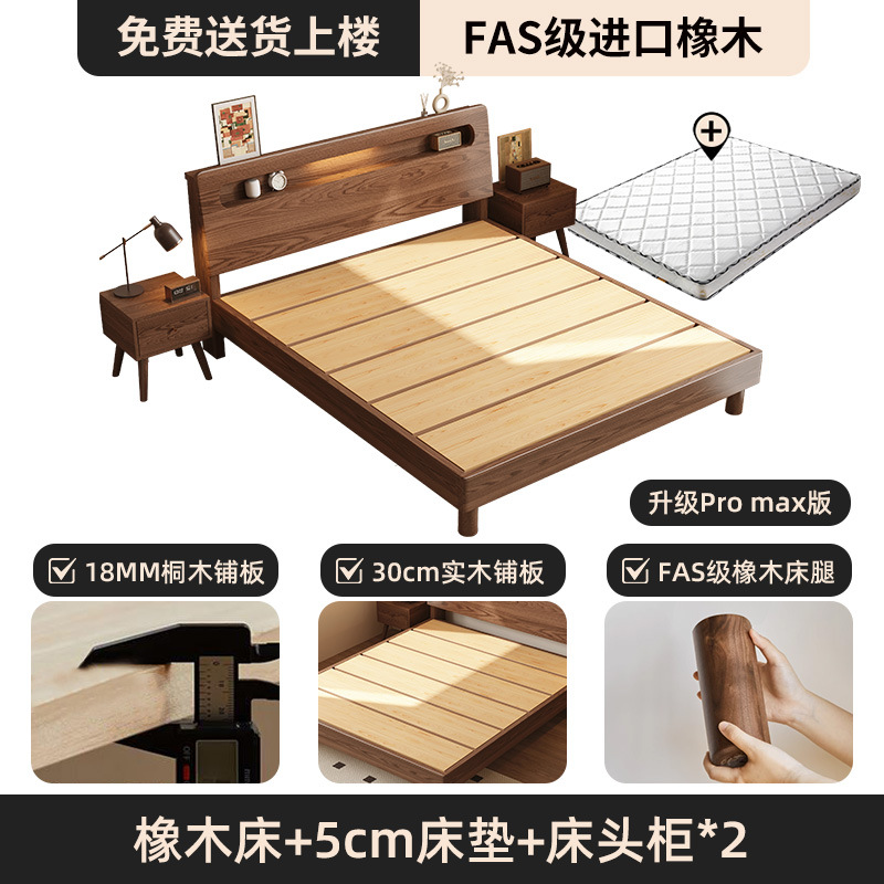 • [두꺼운 18MM 데크] 라이트박스 오크 침대 + 5cm 코코넛 야자 매트리스 + 침대 옆 테이블 * 2 [위층 포함]