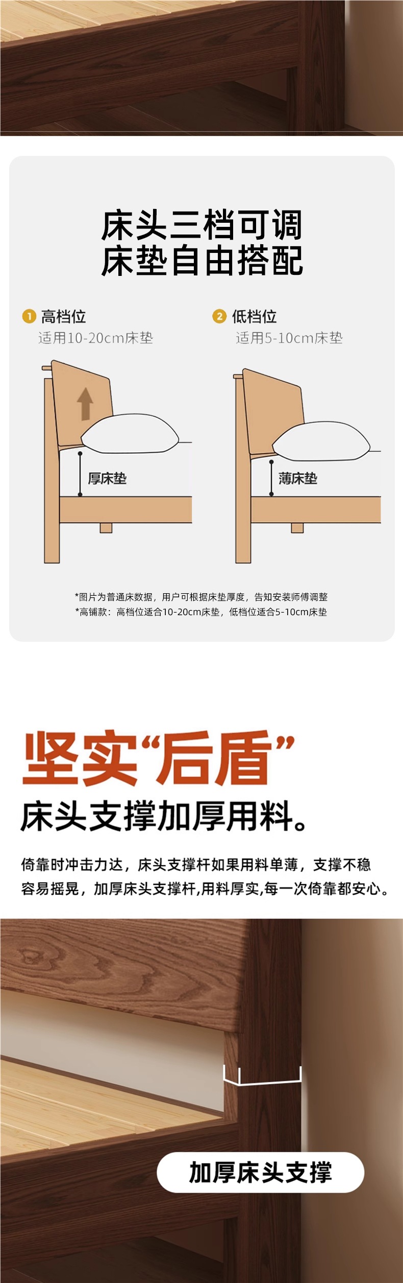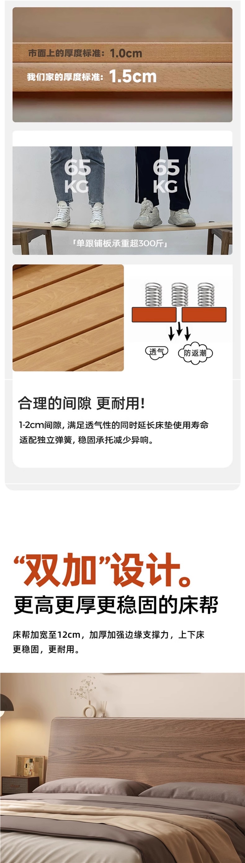 • [두꺼운 18MM 데크] 라이트박스 오크 침대 + 20cm 스프링 매트리스 + 침대 옆 탁자*2 [위층 포함 + 설치]