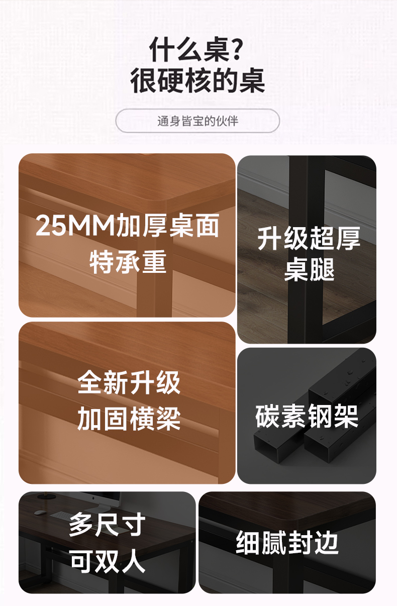 • 길이 160, 너비 80, 높이 74 [두꺼운 25mm 데스크탑] 빔 + 강화 타이로드 포함, 기본 다크 월넛 블랙 다리