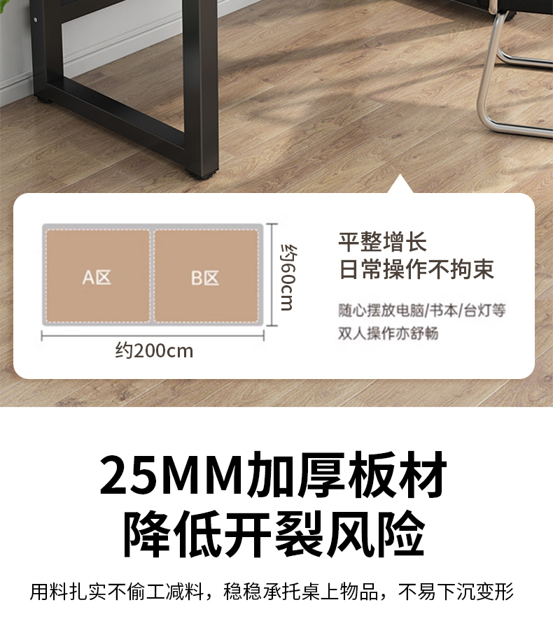 • 길이 200, 너비 80, 높이 74 [두꺼운 25mm 데스크탑] 빔 + 강화 타이로드 포함, 기본 다크 월넛 블랙 다리