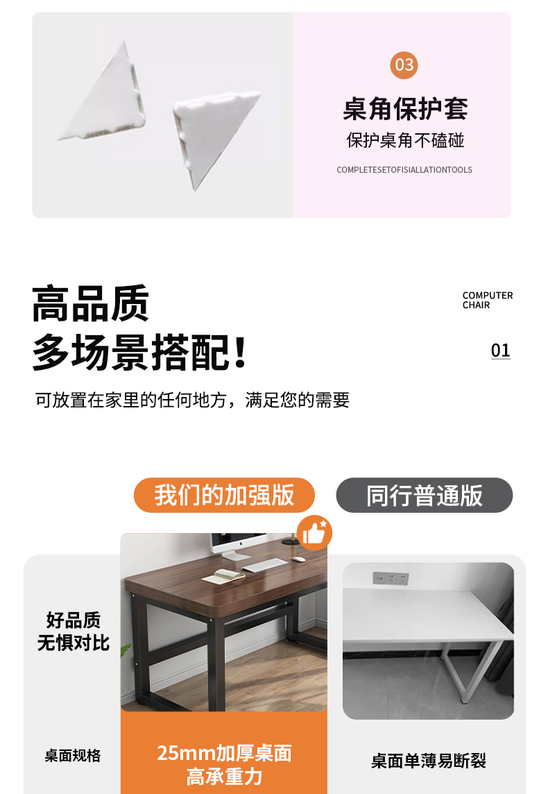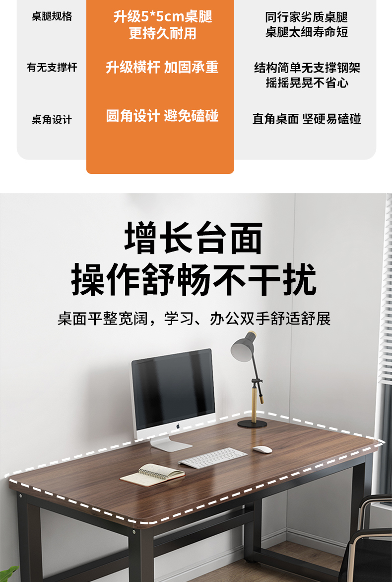 • 길이 80, 너비 60, 높이 74 [두꺼운 25mm 데스크탑] 강화 타이로드와 기본 다크 월넛 블랙 다리가 함께 제공됩니다.
