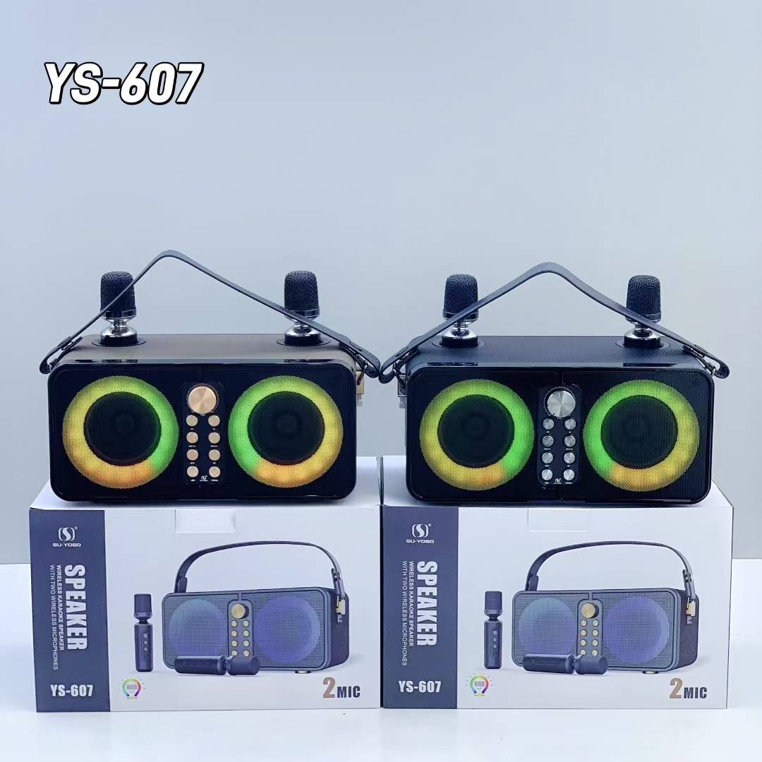 새로운 마이크 YS-607 휴대용 블루투스 스피커 야외 KTV 록 서브 우퍼 홈 듀얼 마이크 오디오
