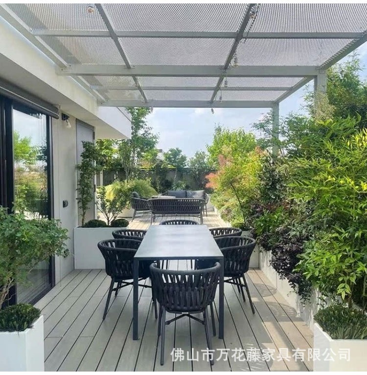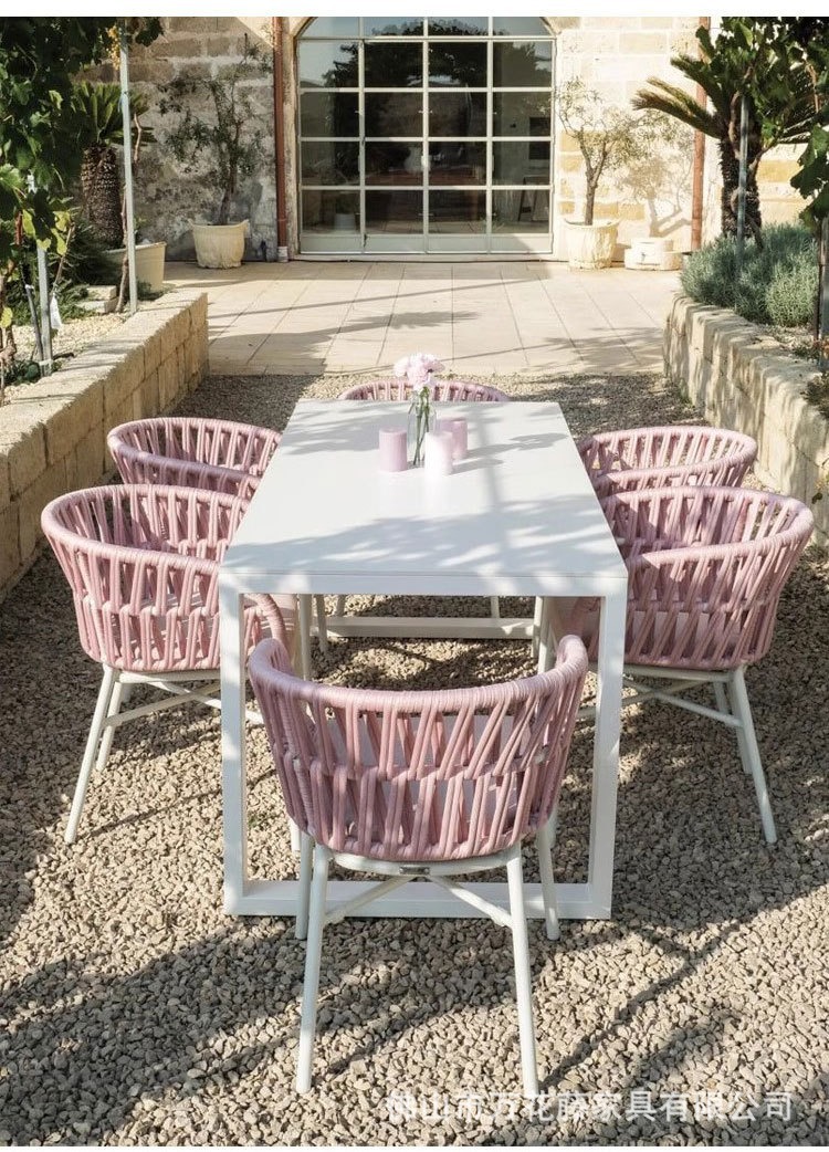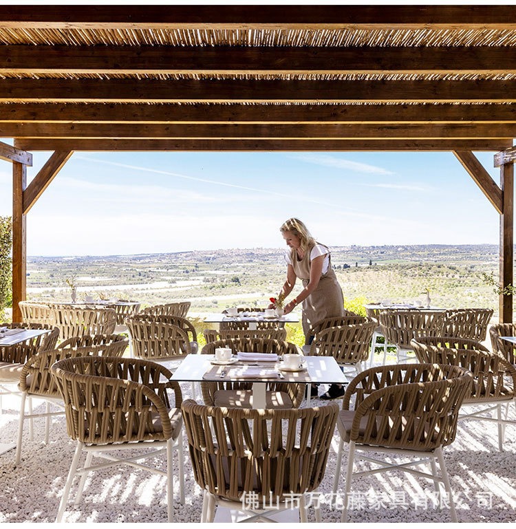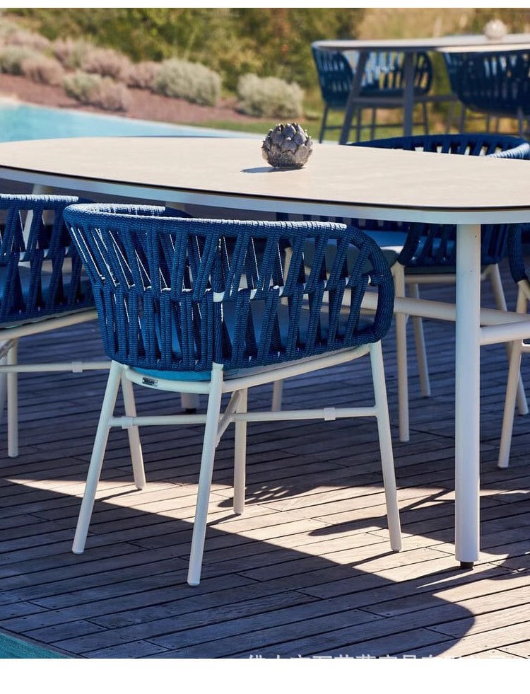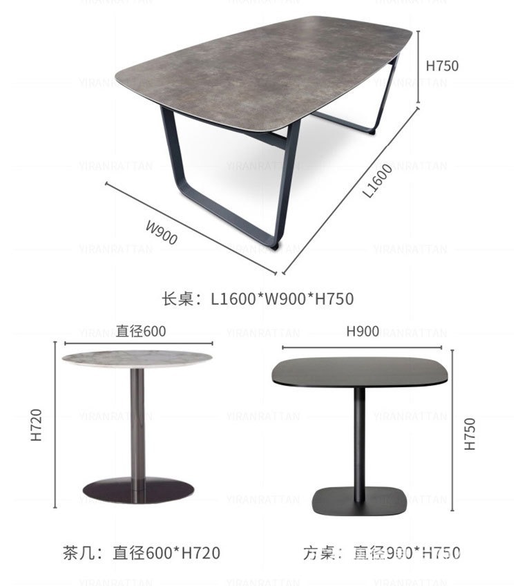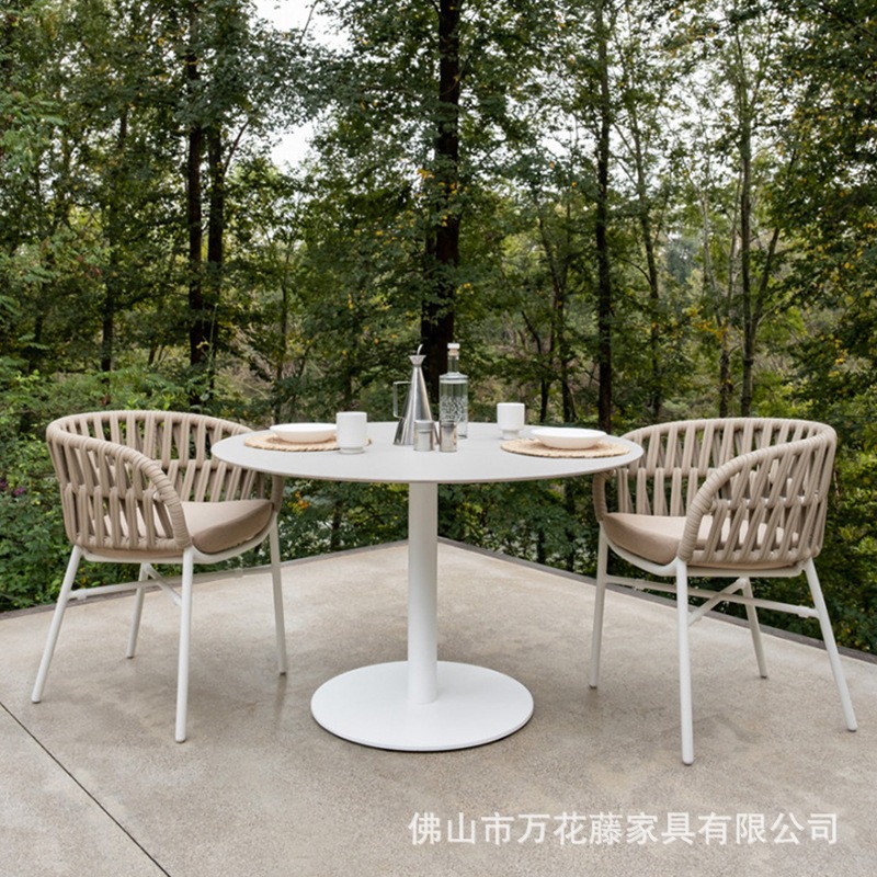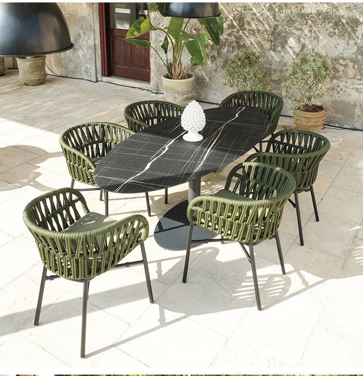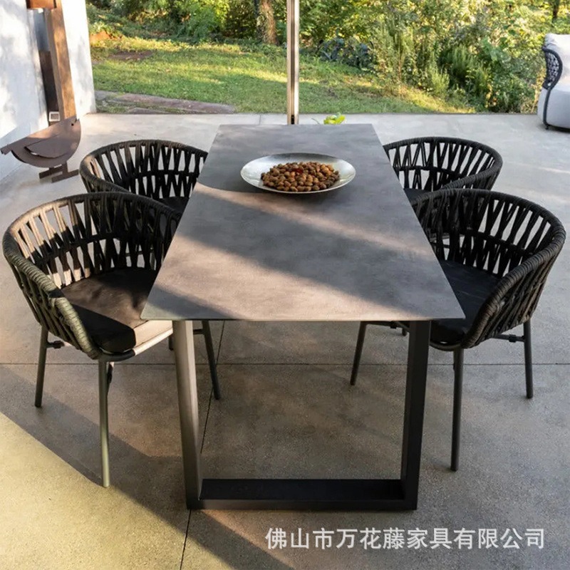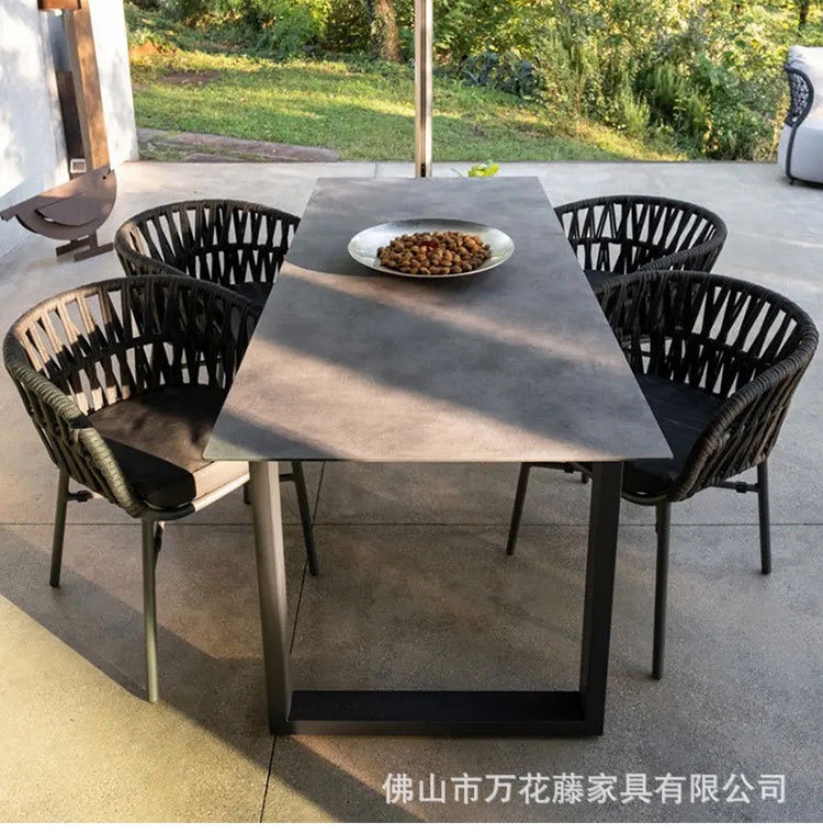 호텔 및 B&B 정원 등나무 의자 및 테이블 조합을 위한 맞춤형 야외 금속 테이블 및 의자 라이트 럭셔리 오픈 스톤 슬레이트 식탁