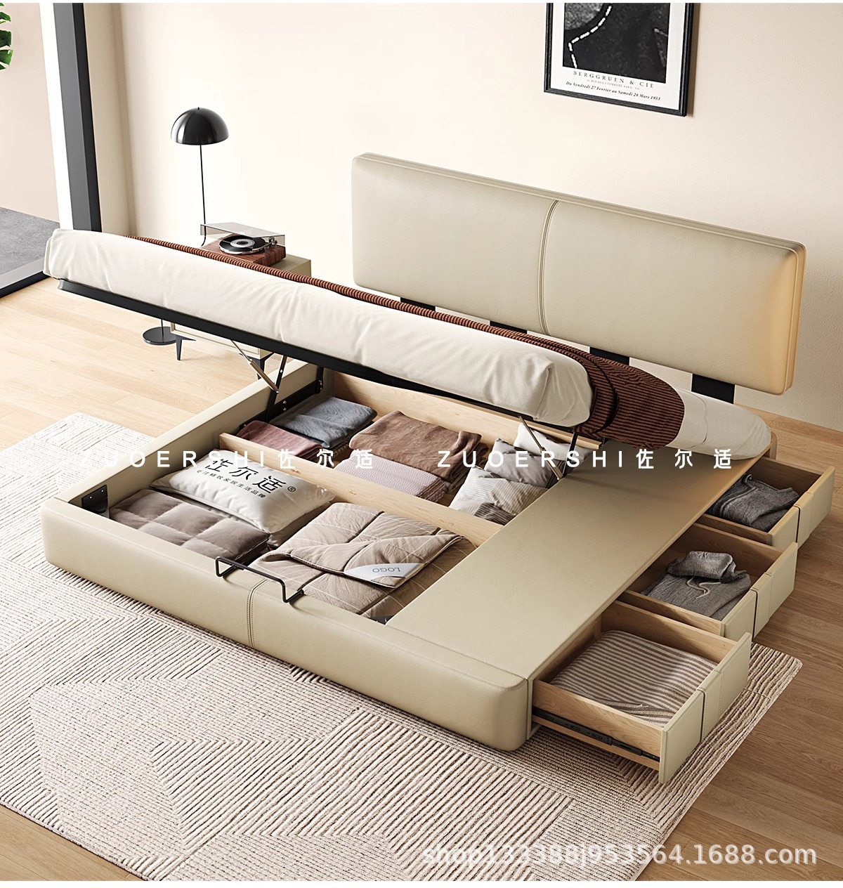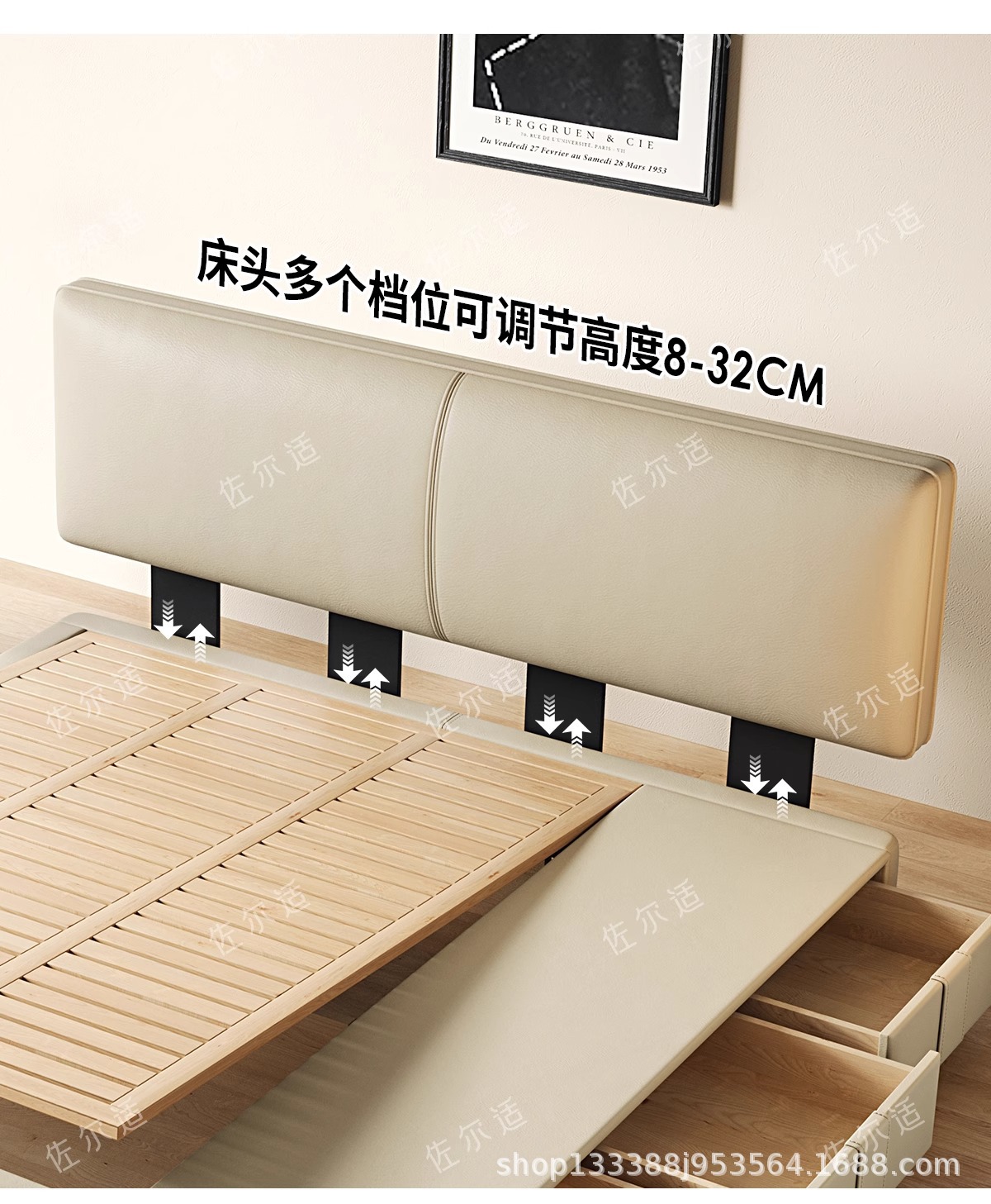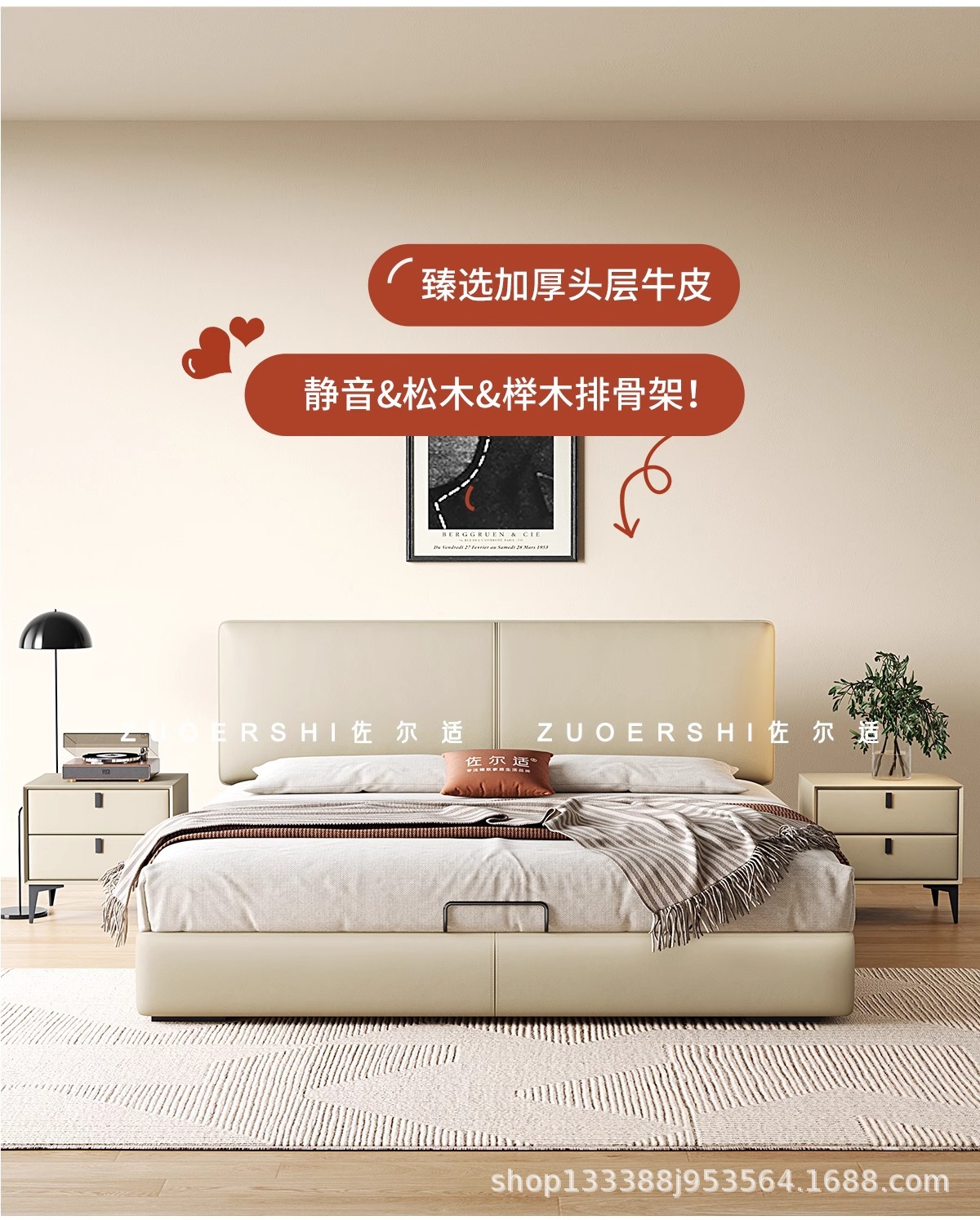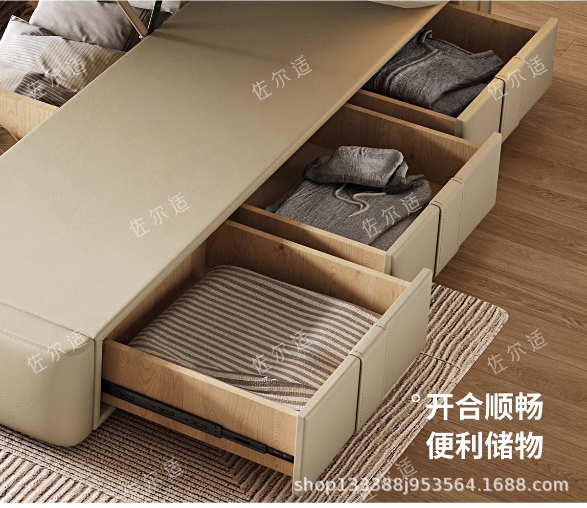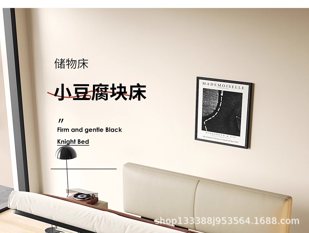 두부 블록 이탈리아 미니멀리스트 소형 가정용 조절식 리프팅 침대 옆 가죽 침대 중세 스타일 소형 가정용 수납 가죽 침대스토어 가기