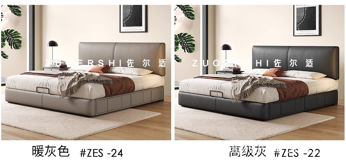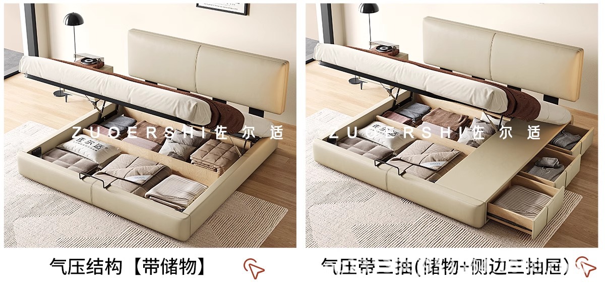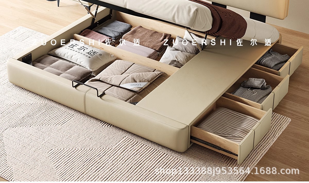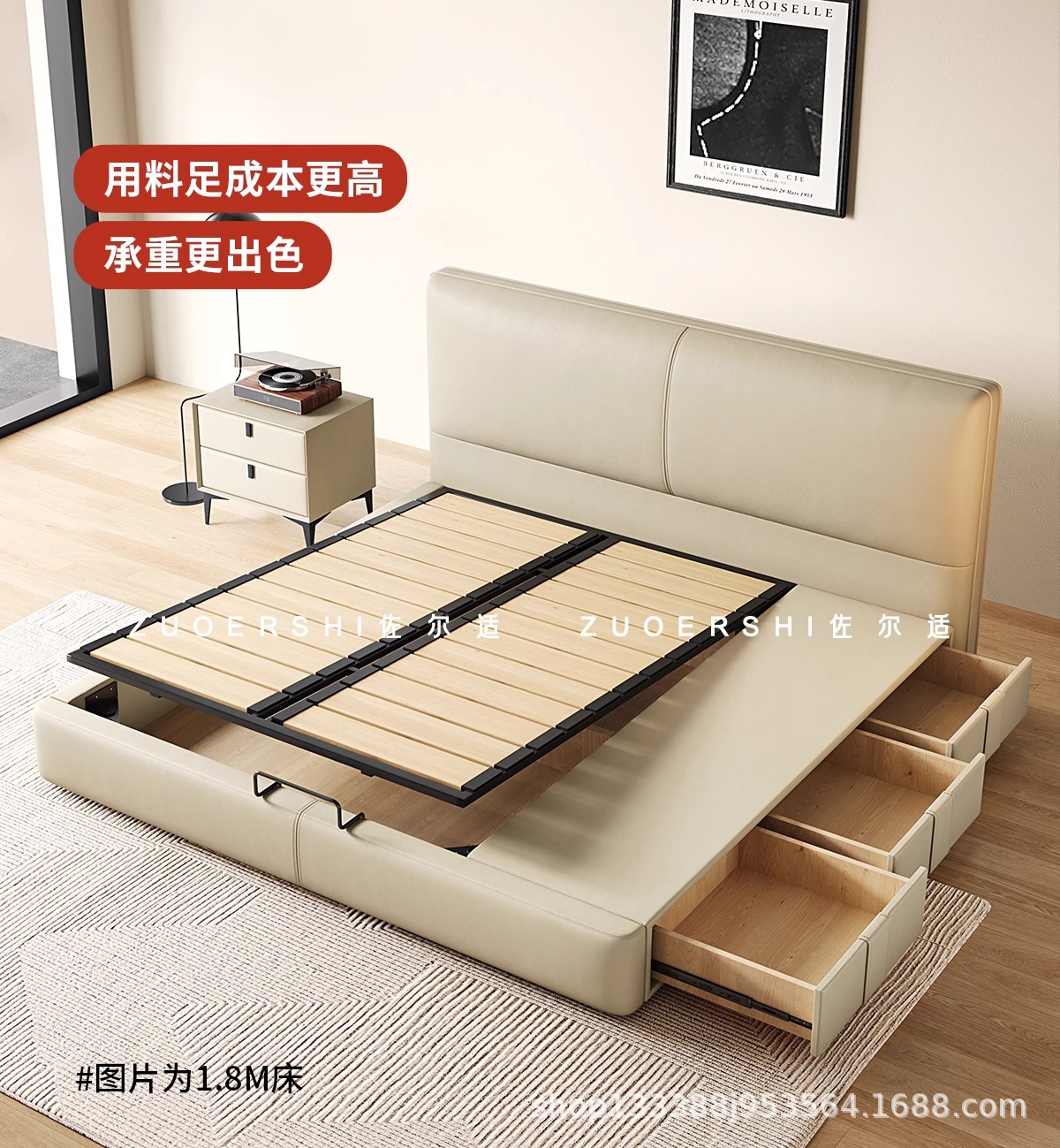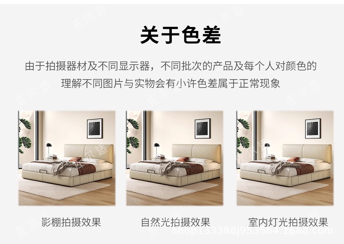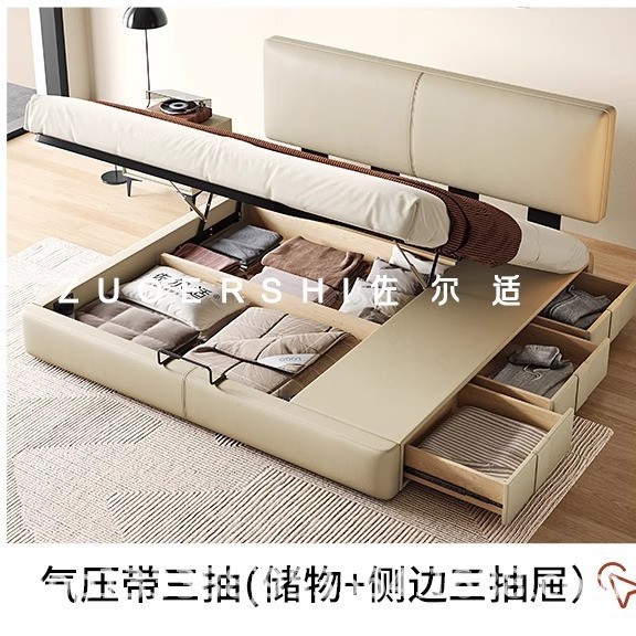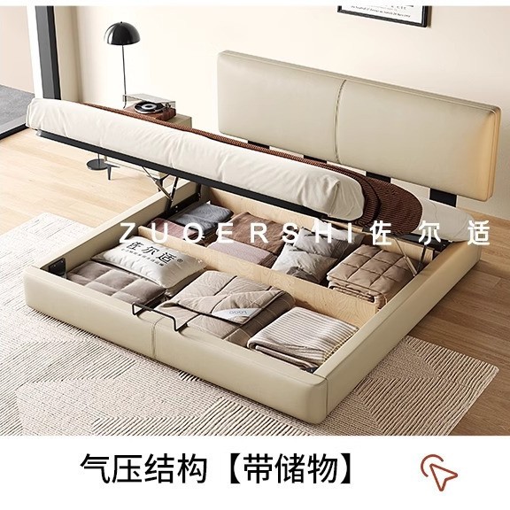 두부 블록 이탈리아 미니멀리스트 소형 가정용 조절식 리프팅 침대 옆 가죽 침대 중세 스타일 소형 가정용 수납 가죽 침대스토어 가기