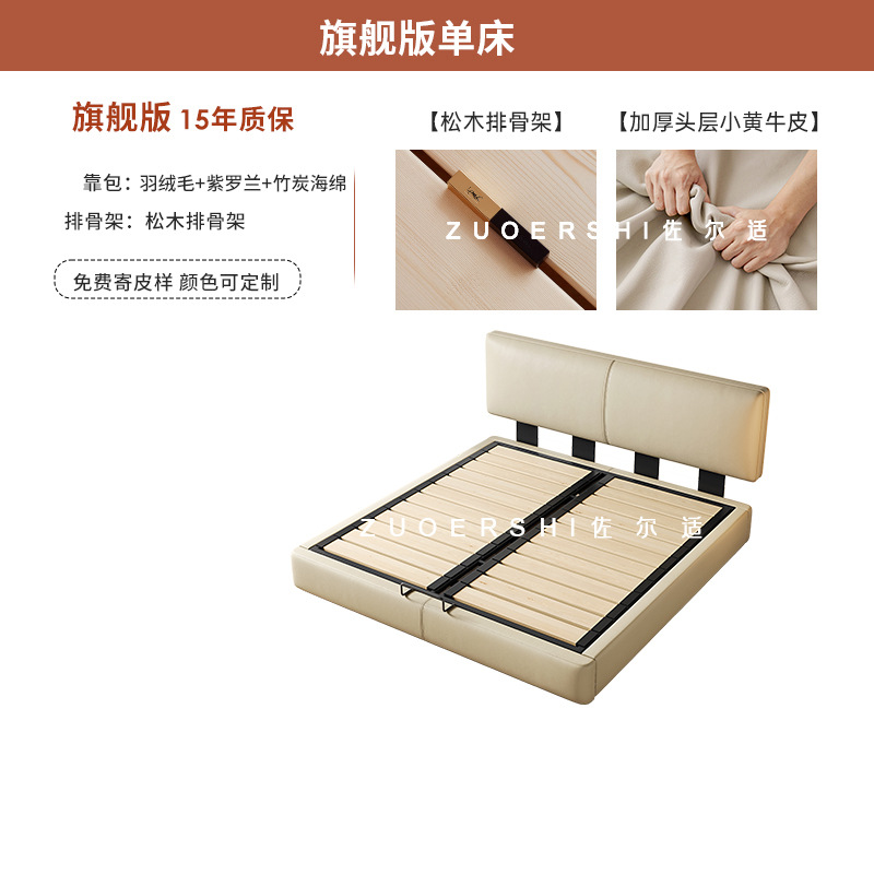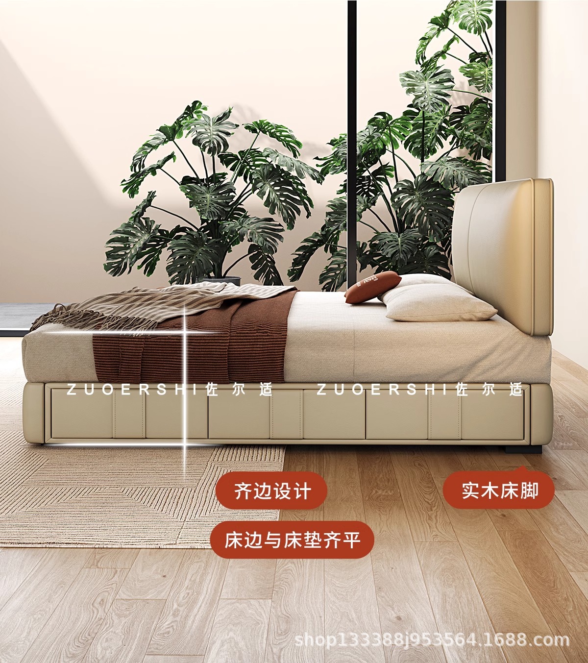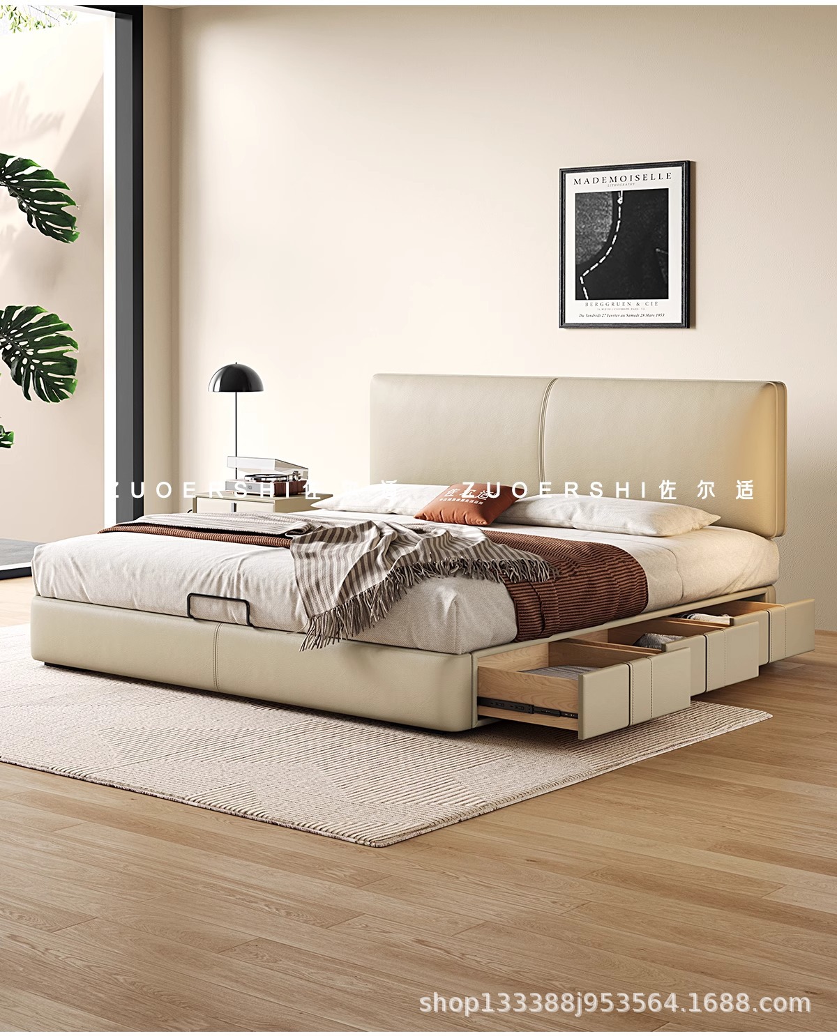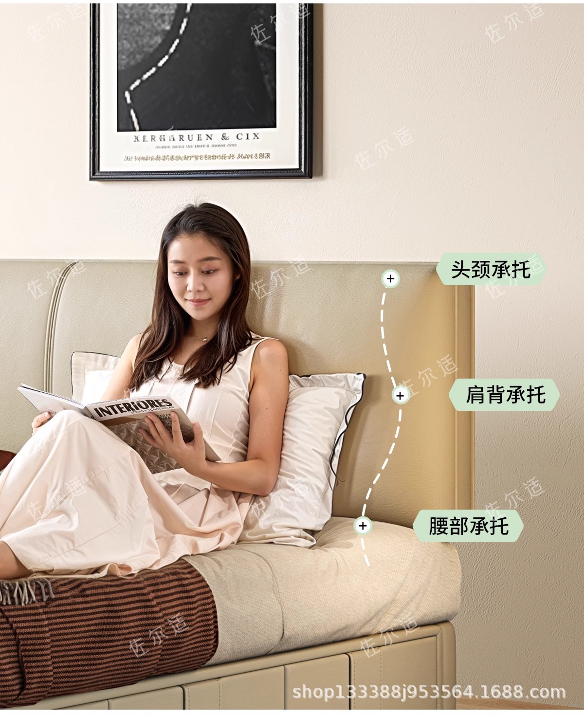 두부 블록 이탈리아 미니멀리스트 소형 가정용 조절식 리프팅 침대 옆 가죽 침대 중세 스타일 소형 가정용 수납 가죽 침대