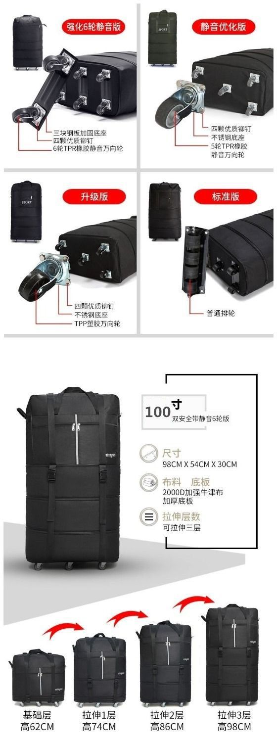 대용량 여행 가방, 여행 가방, 범용 바퀴, 이동식 접이식 수하물 가방, 단일 배치, 제조업체, 무료 배송, AliExpress스토어 가기