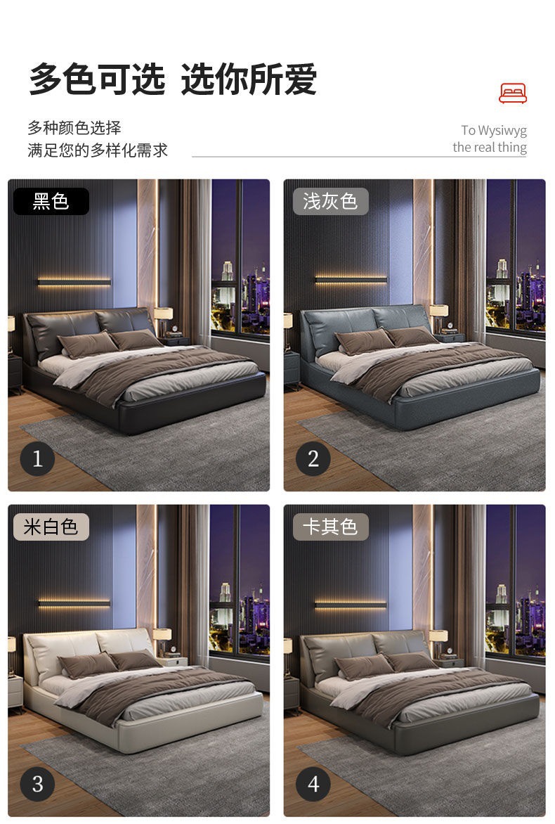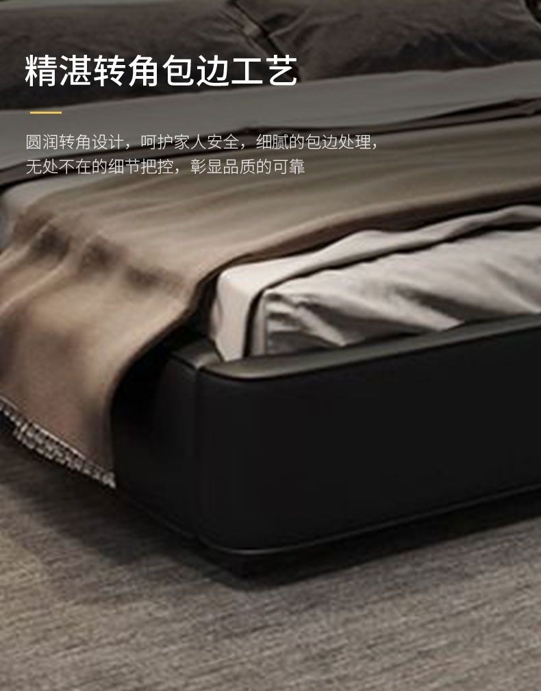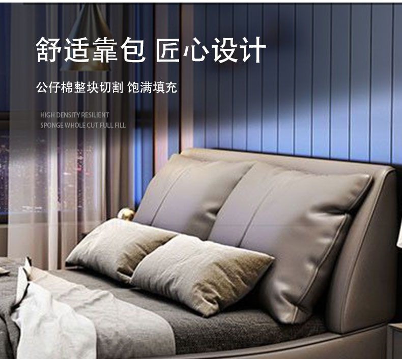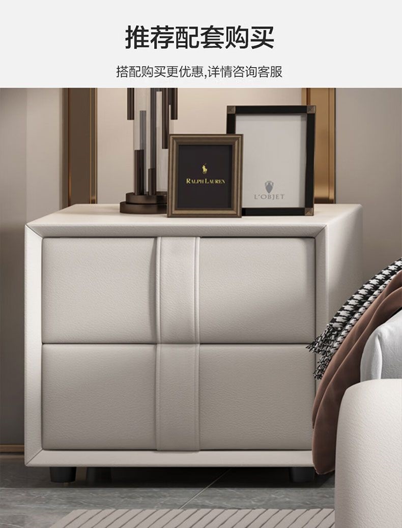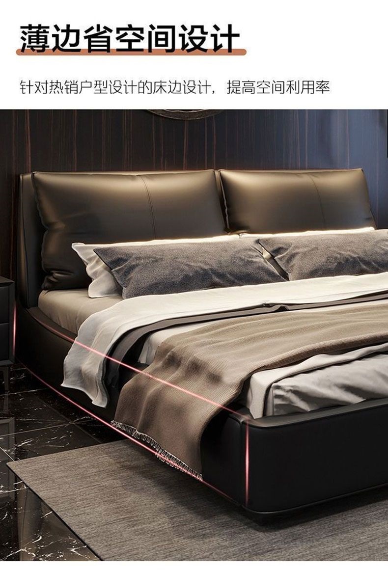 가벼운 고급 이탈리아 스타일의 귀 가죽 침대 미니멀리스트 현대 더블 단단한 나무 마스터 침실 수납 감각 웨딩 침대스토어 가기