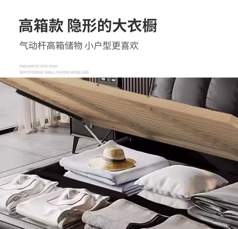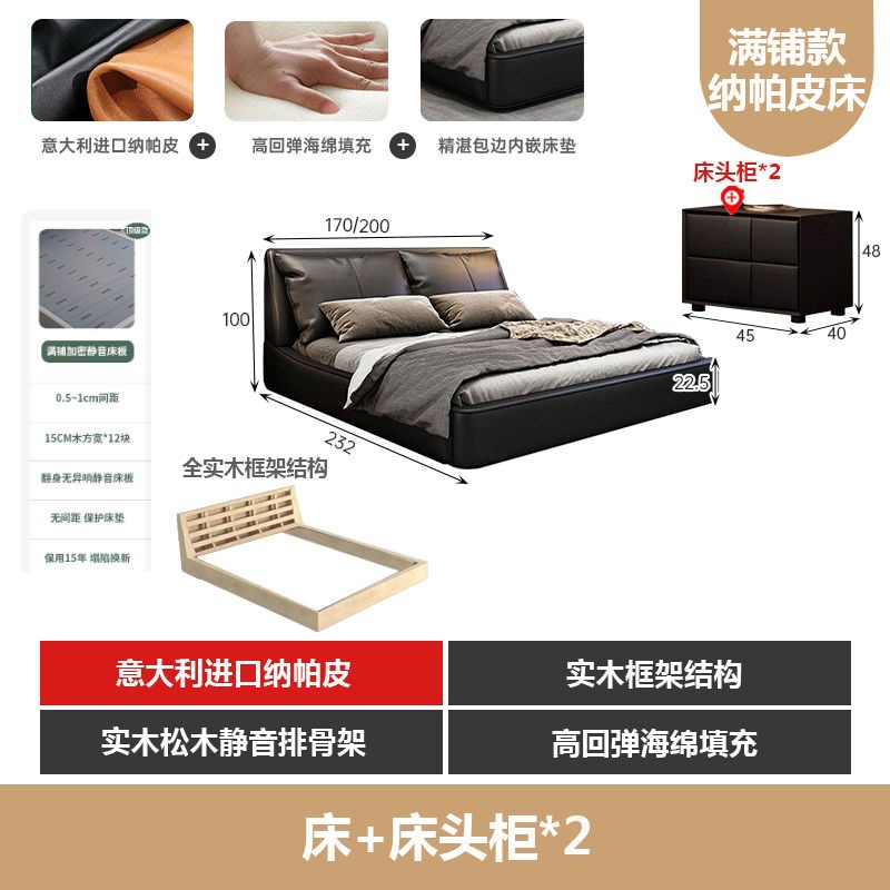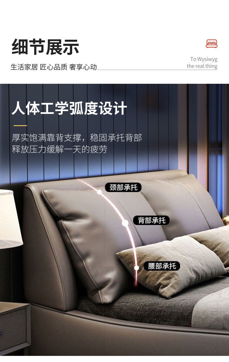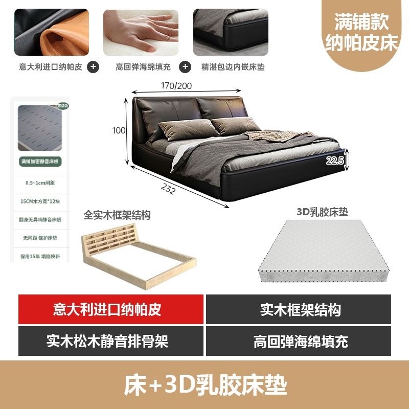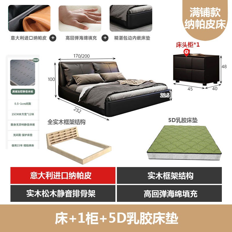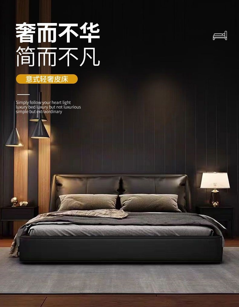 가벼운 고급 이탈리아 스타일의 귀 가죽 침대 미니멀리스트 현대 더블 단단한 나무 마스터 침실 수납 감각 웨딩 침대스토어 가기