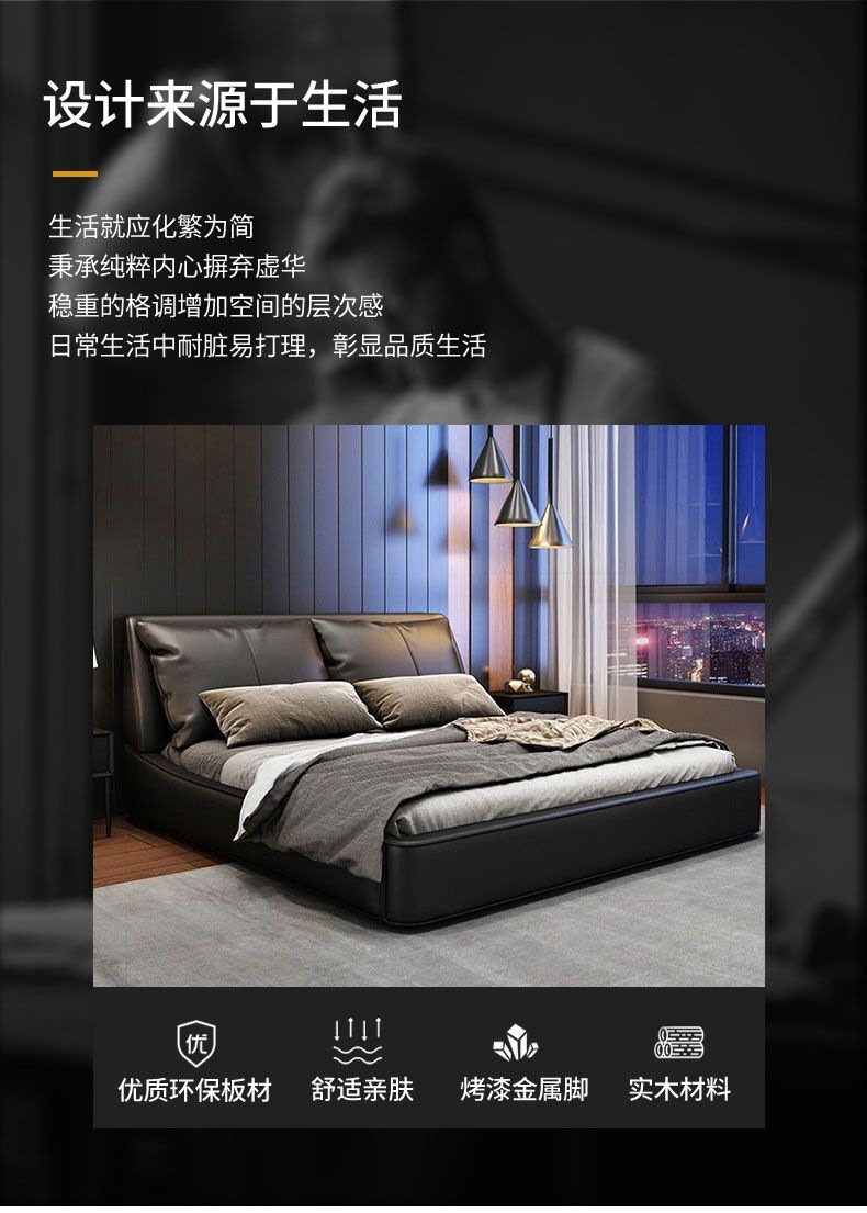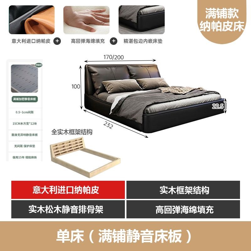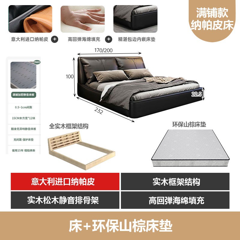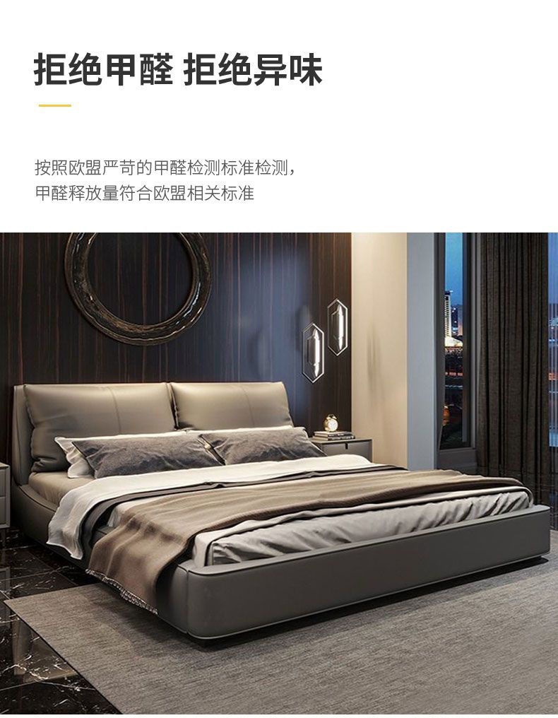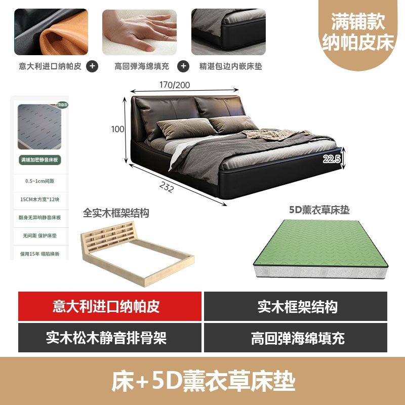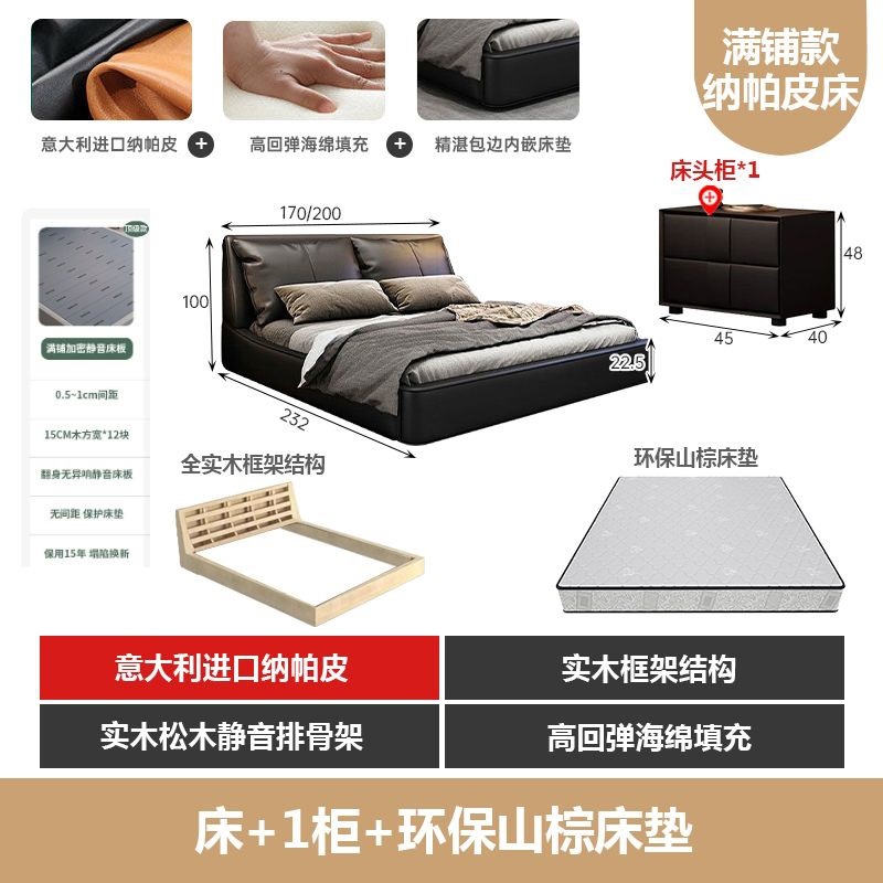 가벼운 고급 이탈리아 스타일의 귀 가죽 침대 미니멀리스트 현대 더블 단단한 나무 마스터 침실 수납 감각 웨딩 침대스토어 가기