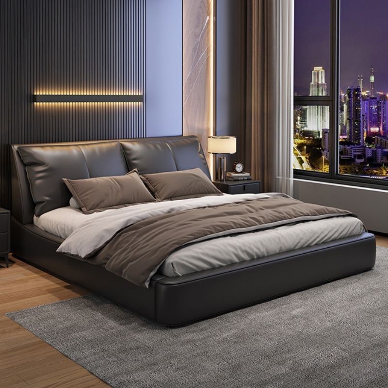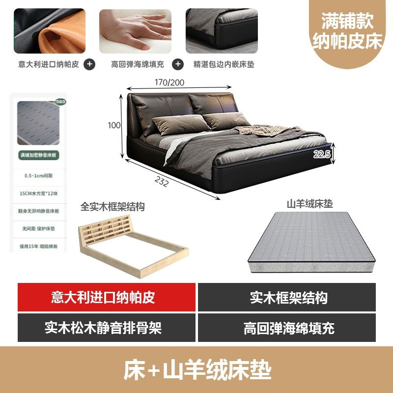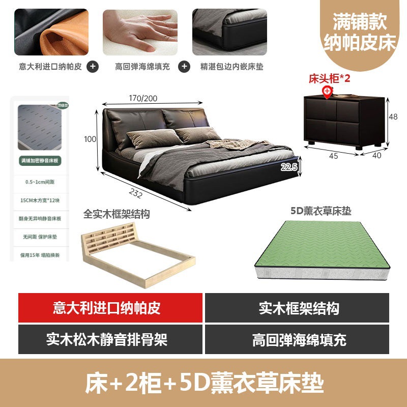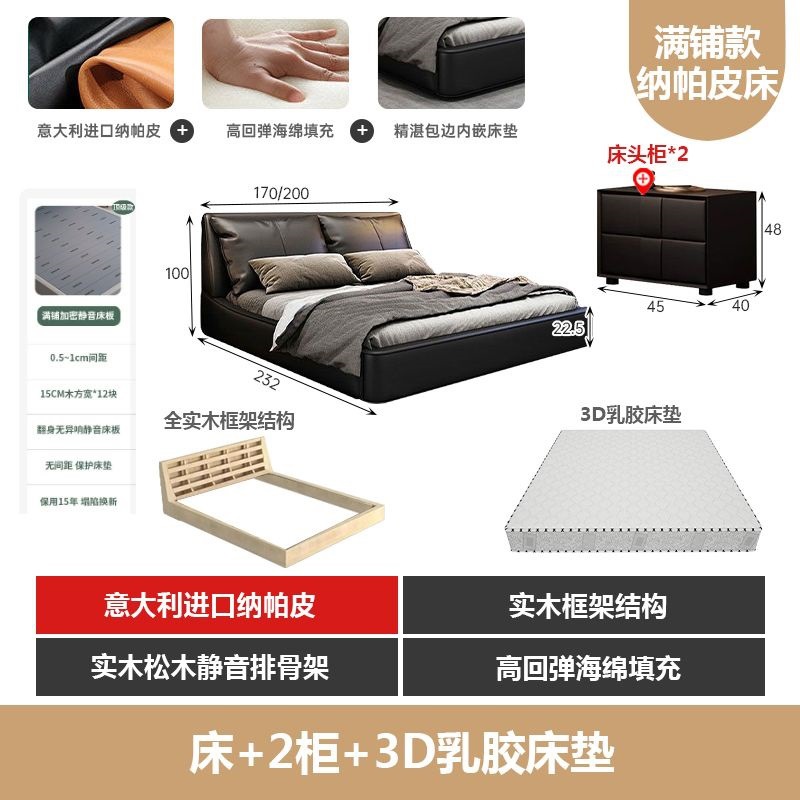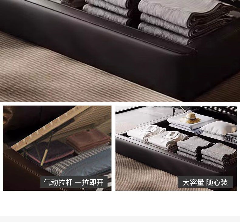 가벼운 고급 이탈리아 스타일의 귀 가죽 침대 미니멀리스트 현대 더블 단단한 나무 마스터 침실 수납 감각 웨딩 침대