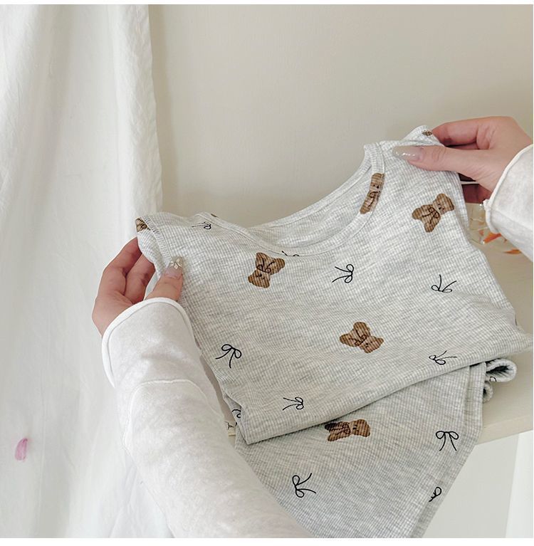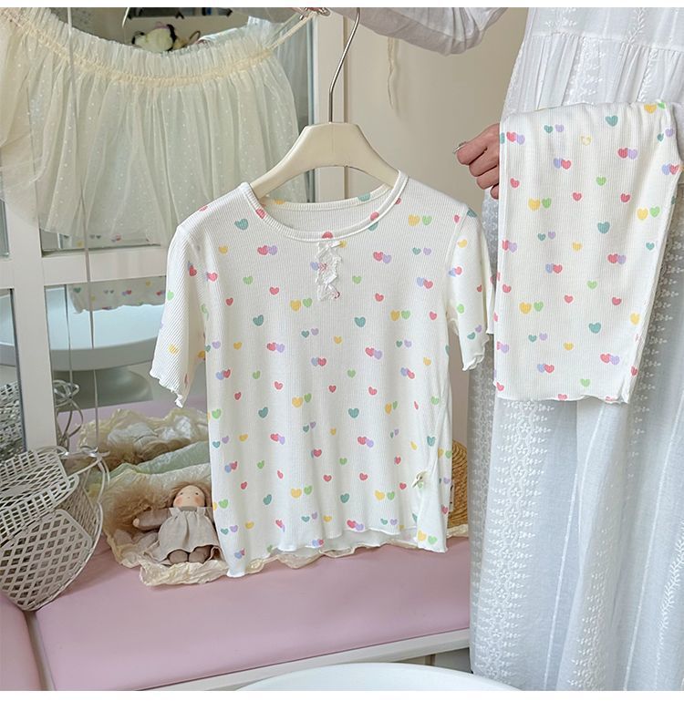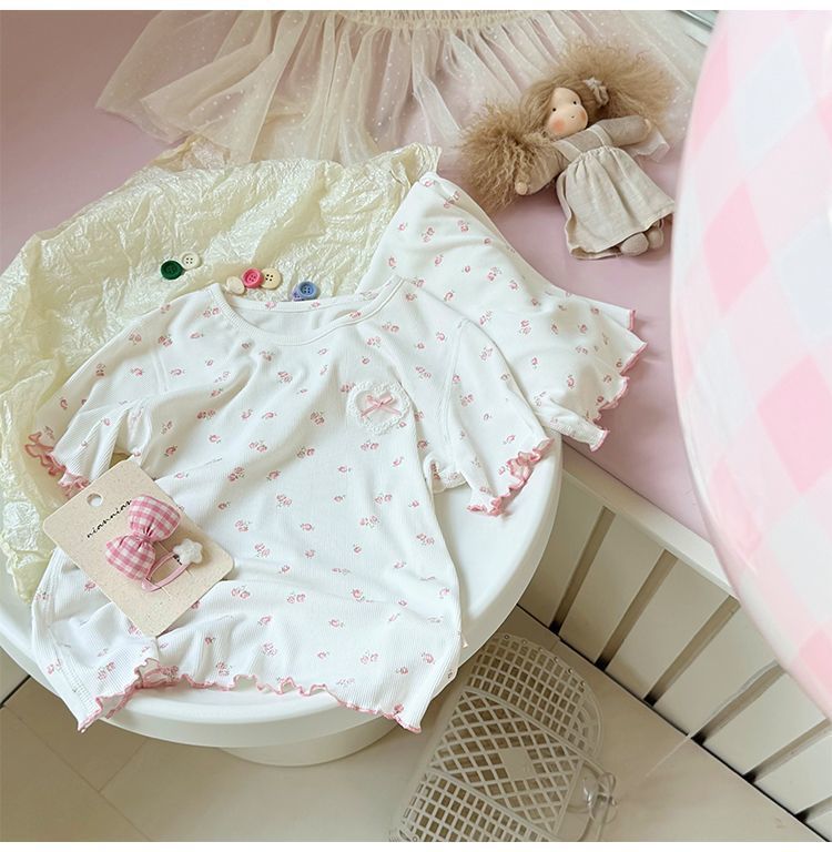여자 여름 얼음 실크 얇은 잠옷 어린이 반팔 바지 여름 에어컨 옷 달콤하고 귀여운 아기 가정 옷스토어 가기