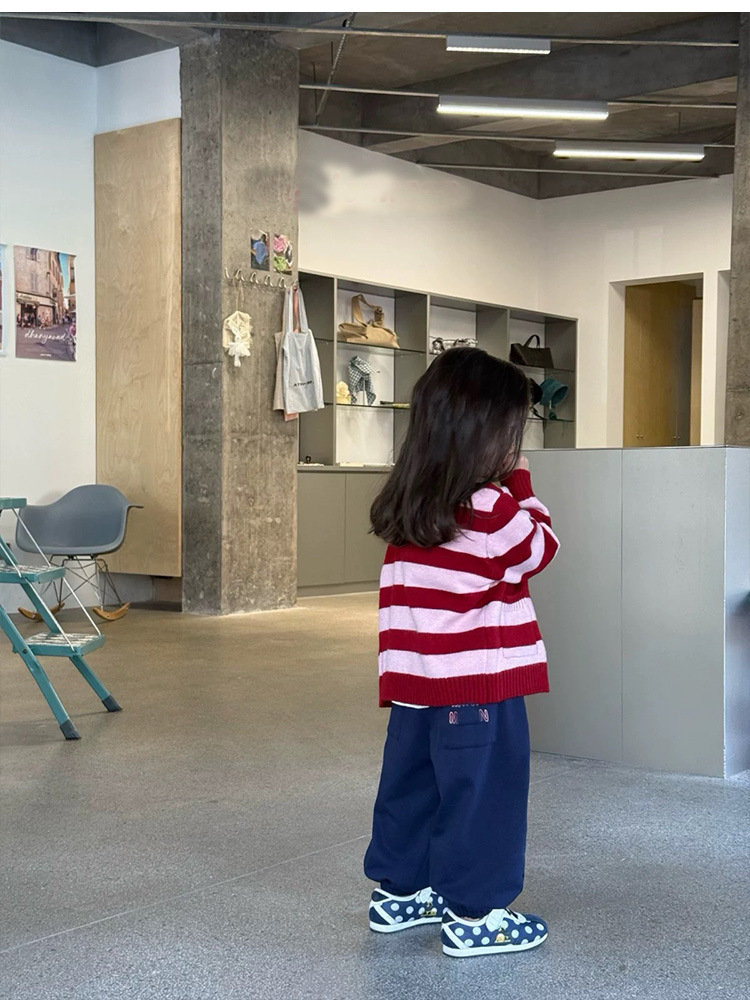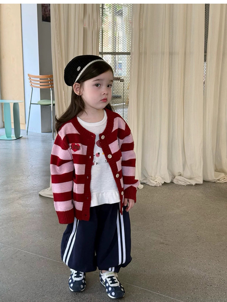 여자 니트 카디건 재킷 2025 가을 새 아기 귀여운 kt 고양이 만화 줄무늬 스웨터 루즈 탑스토어 가기