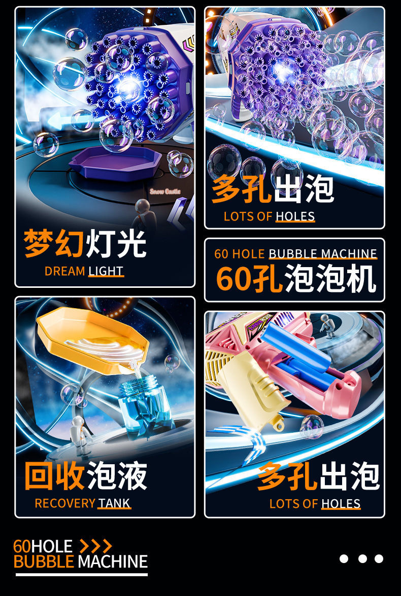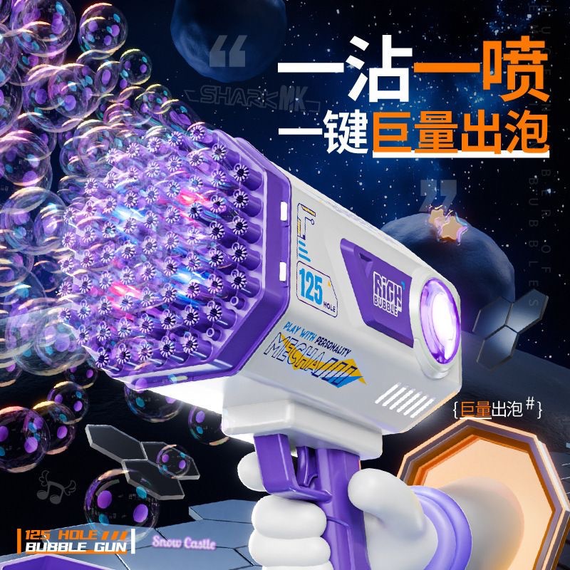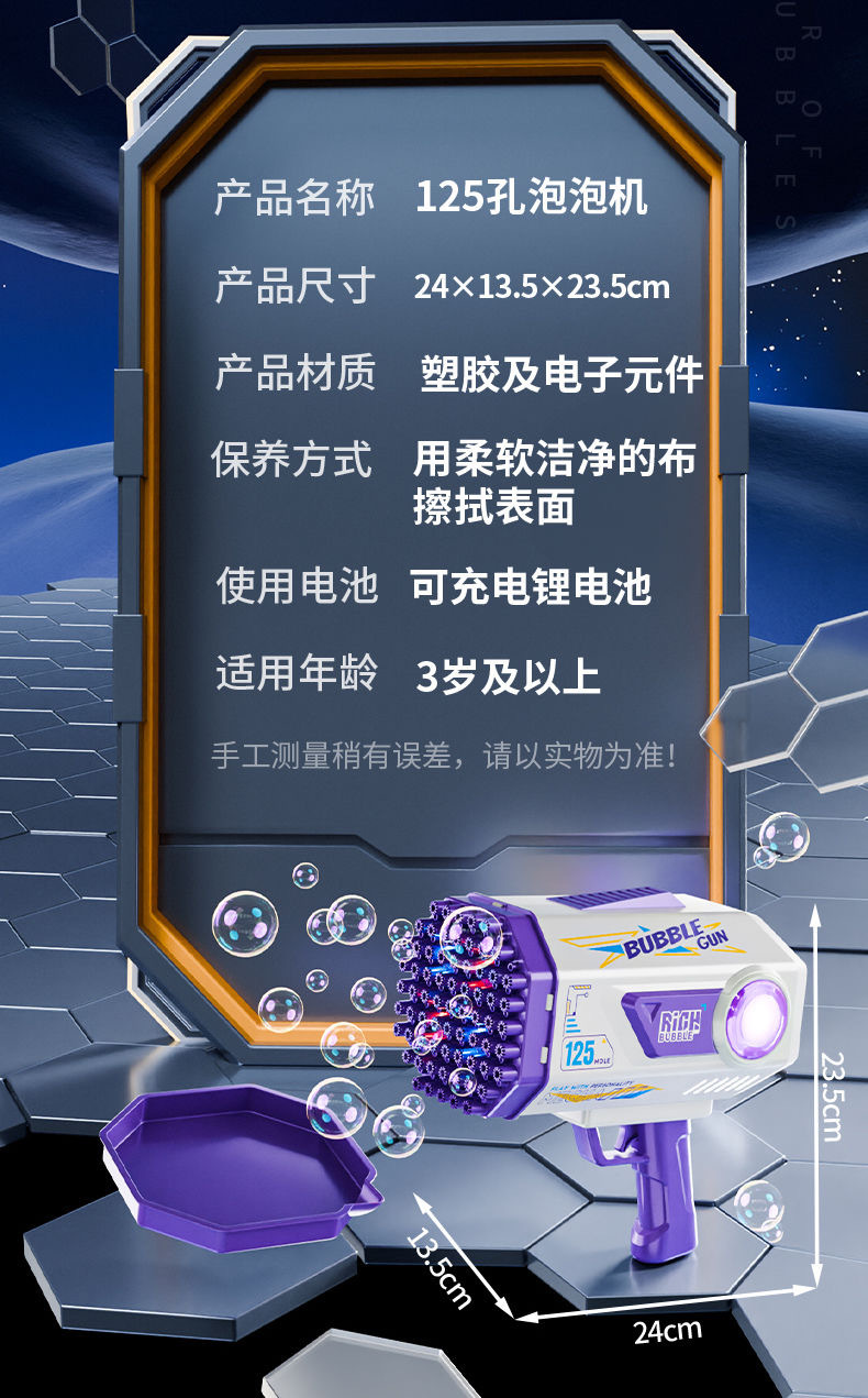 125 홀 버블 머신 새로운 인터넷 연예인 어린이 휴대용 인터넷 연예인 야외 전기 개틀링 방수 소녀 장난감