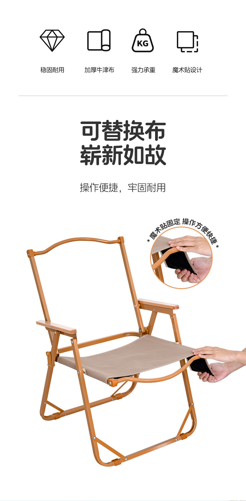 탈부착 가능한 시트 천, 휴대용 접이식 의자 커버 교체용 천, 내구성이 뛰어난 의자, 심플한 의자, 특대형 캠핑용 휴대용 의자스토어 가기