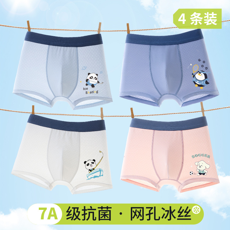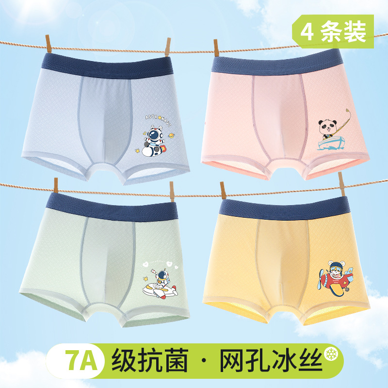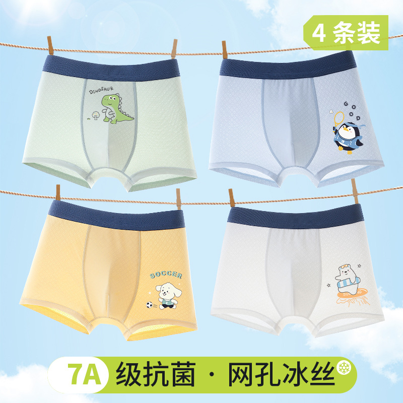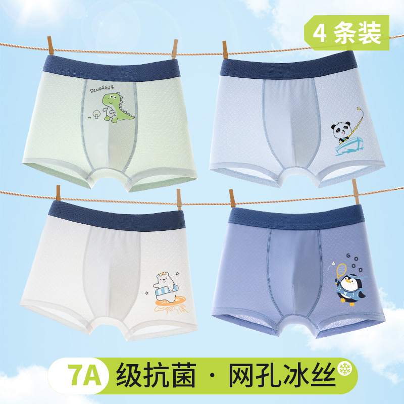 어린이 여름 새로운 멋진 속옷 소년 얼음 실크 메쉬 복서 팬티 소년 얇은 통기성 복서 팬티스토어 가기