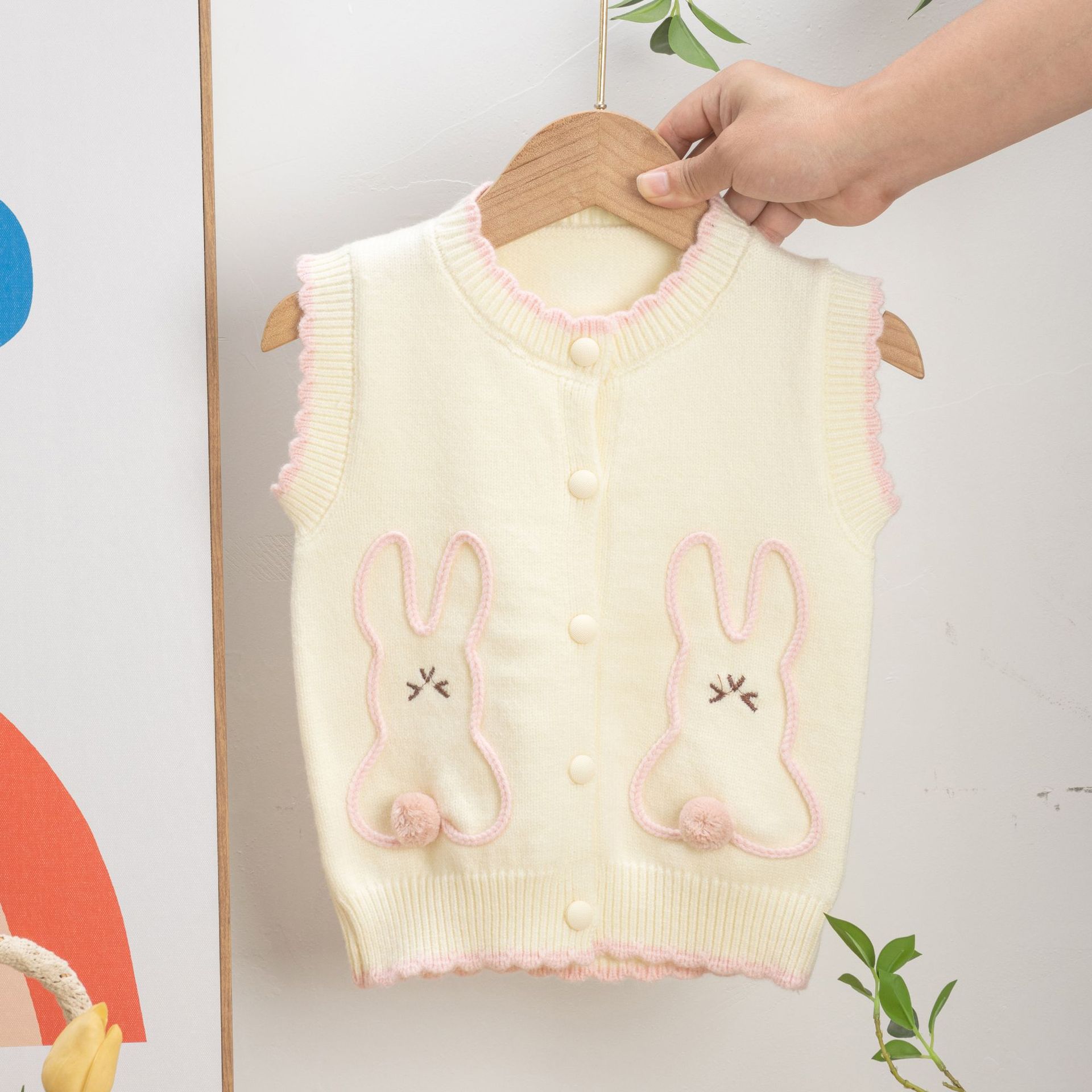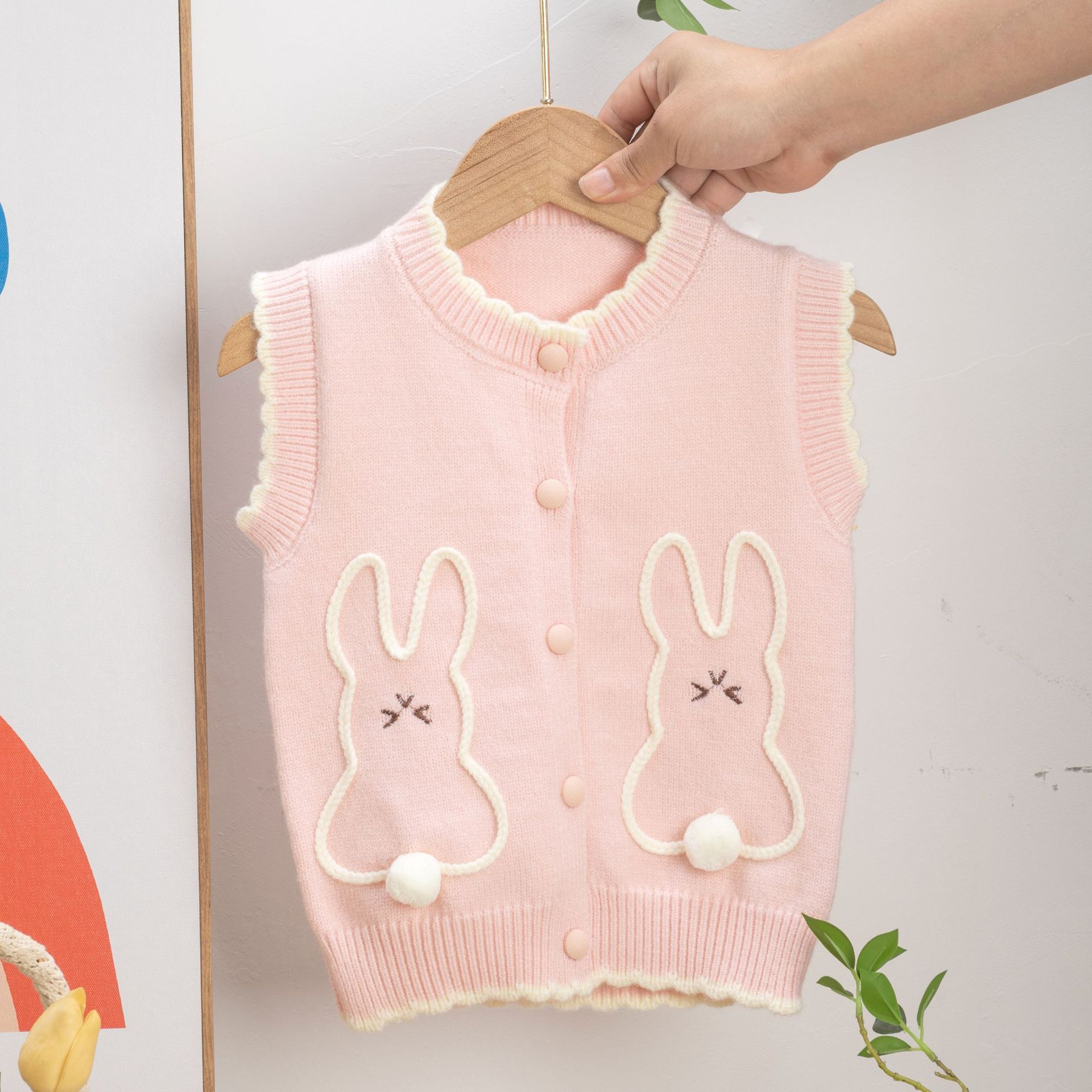 봄과 가을 소녀 2024 새로운 겉옷 조끼 유행 아기 양복 조끼 어린이 니트 카디건 조끼 스웨터 아기스토어 가기