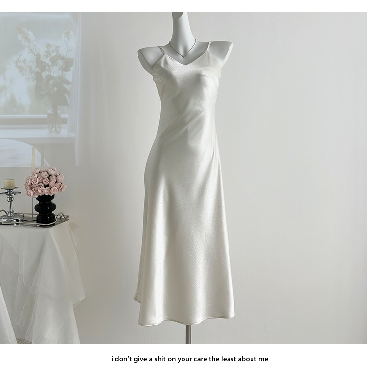 여성을위한 새로운 스타일 보라색 새틴 새틴 새로운 중국 스타일 드레스 여름 레이어링 긴 중국 스타일 서스펜더 스커트 유럽과 미국