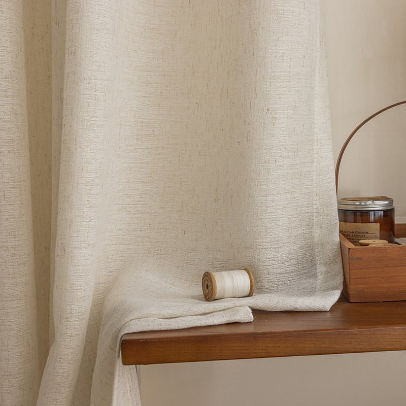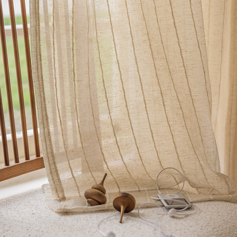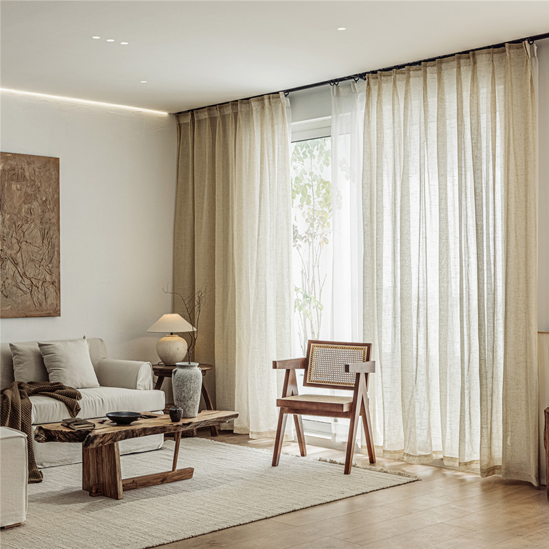 거실, 일본식 린넨 창문, 베이지색 린넨 거즈 커튼, 면과 린넨 선(禪) 찻집스토어 가기
