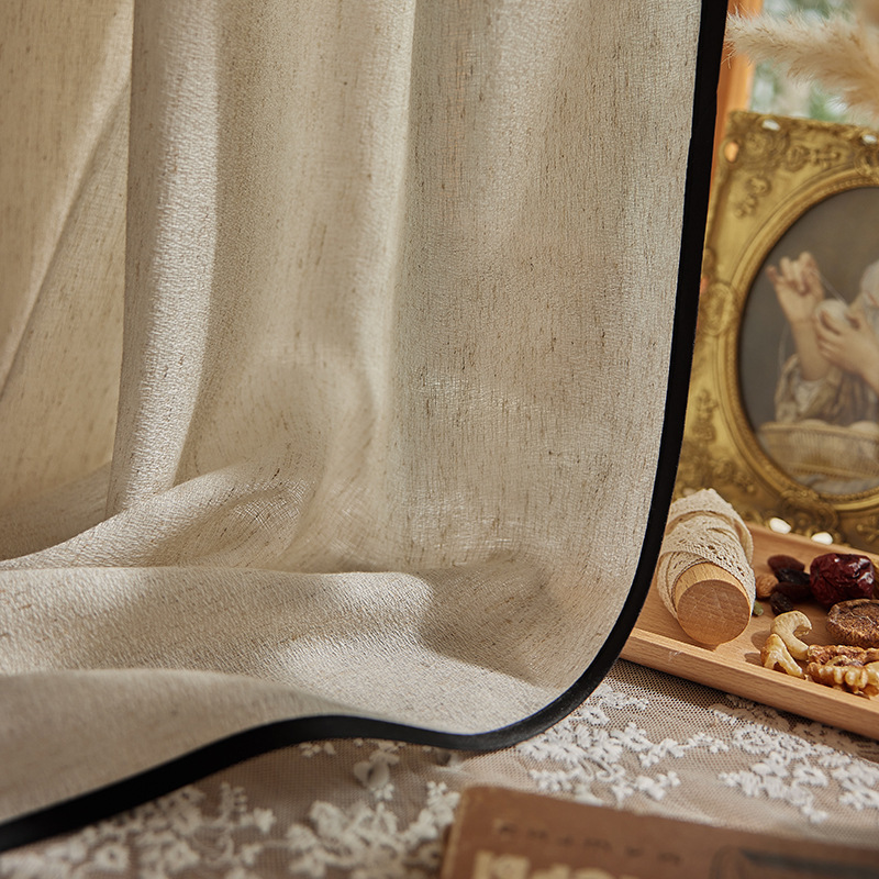 거실, 일본식 린넨 창문, 베이지색 린넨 거즈 커튼, 면과 린넨 선(禪) 찻집