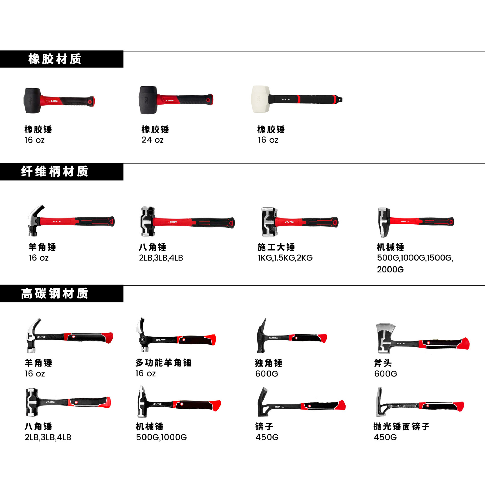 제조업체는 다양한 설치용 망치, 고무 망치, 유리 섬유 손잡이, 플라스틱 코팅 손잡이, 충격 방지 및 반동 방지 제품을 공급합니다.